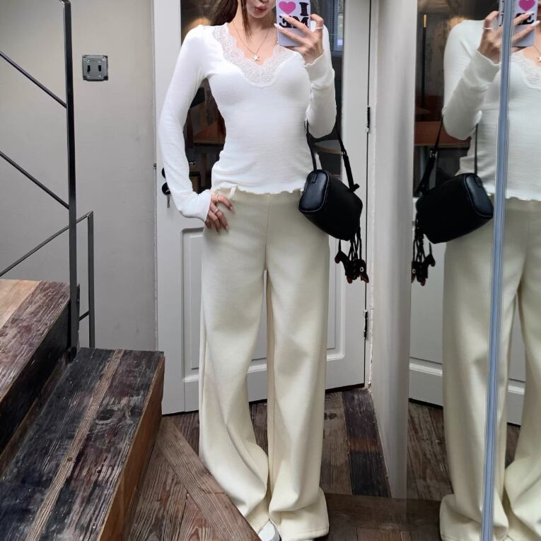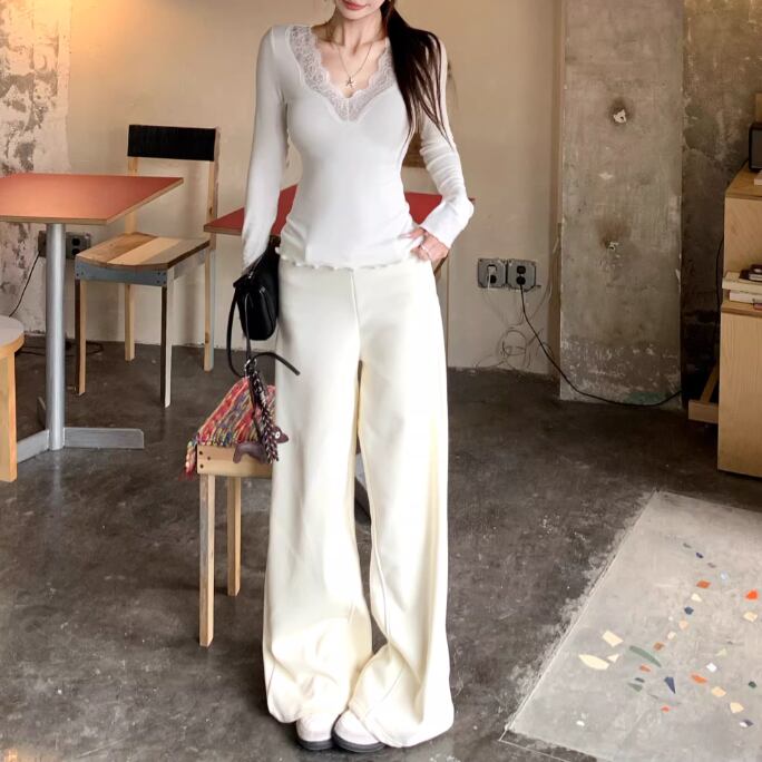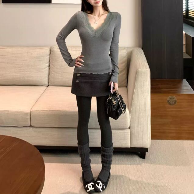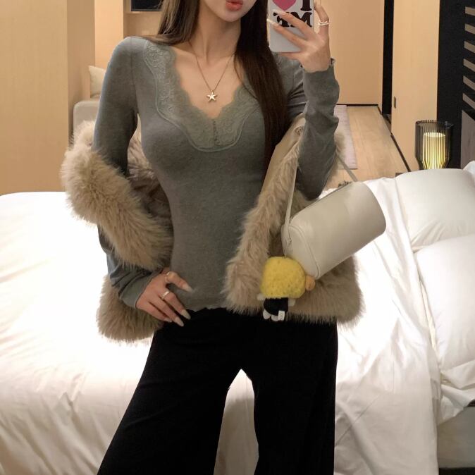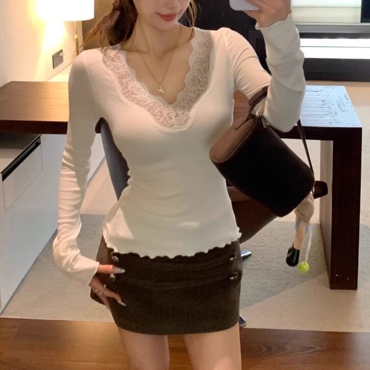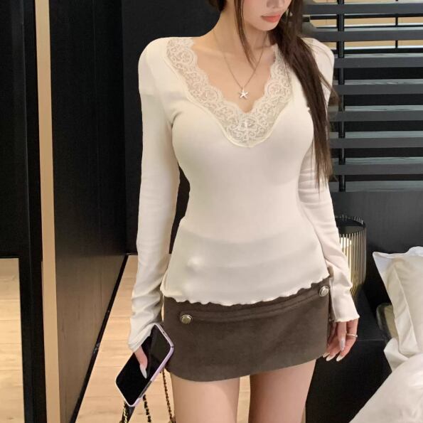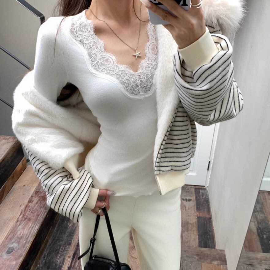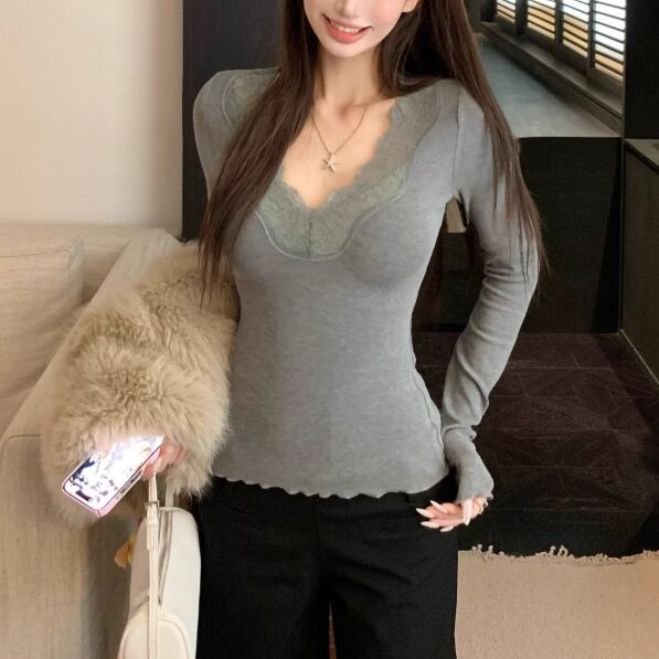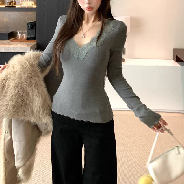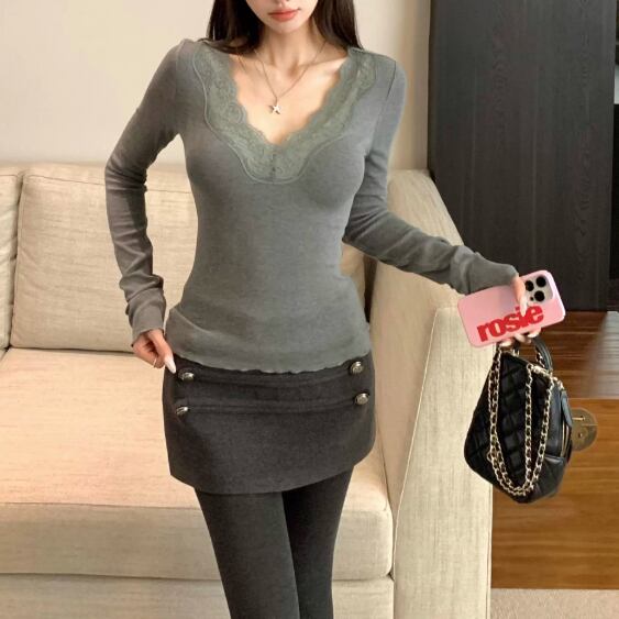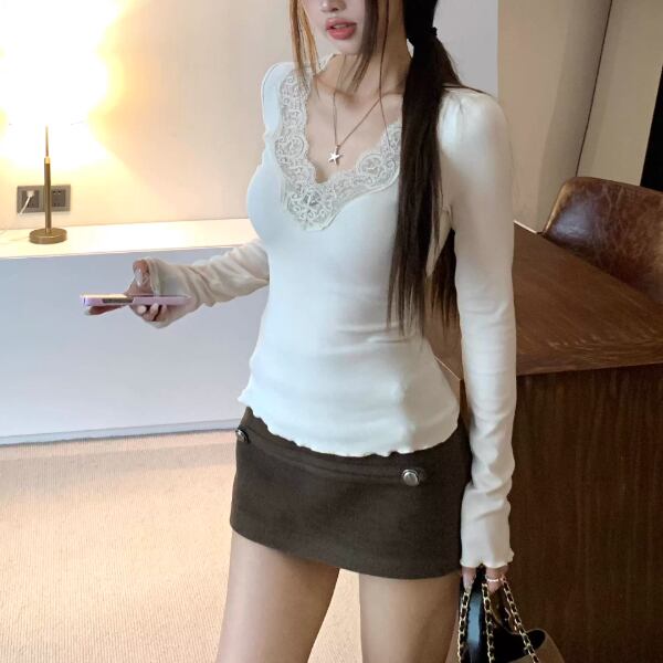レースカラーアシメボタンドッキングトップス ・71106