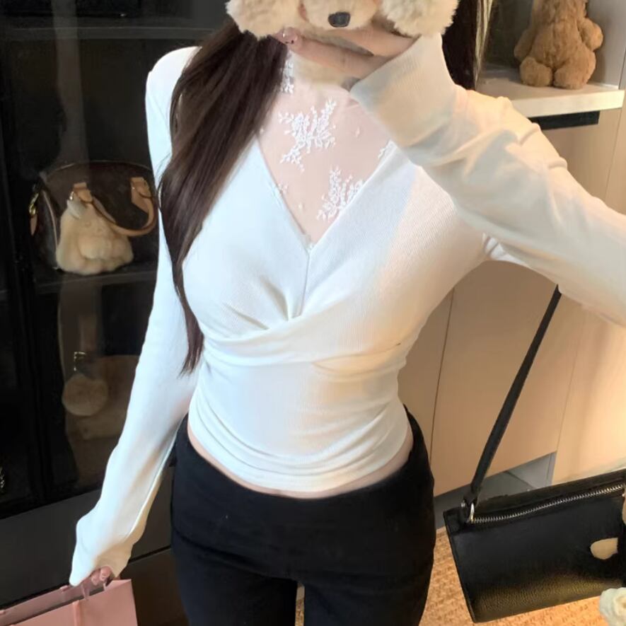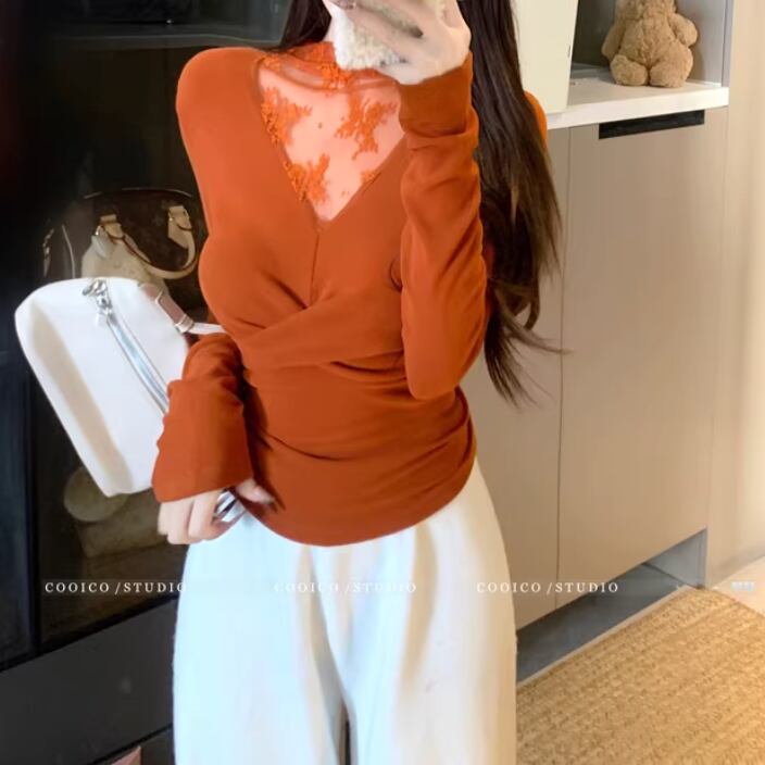 2色/フェイクレイヤードフーデッドニットトップス ・75335
