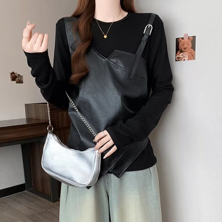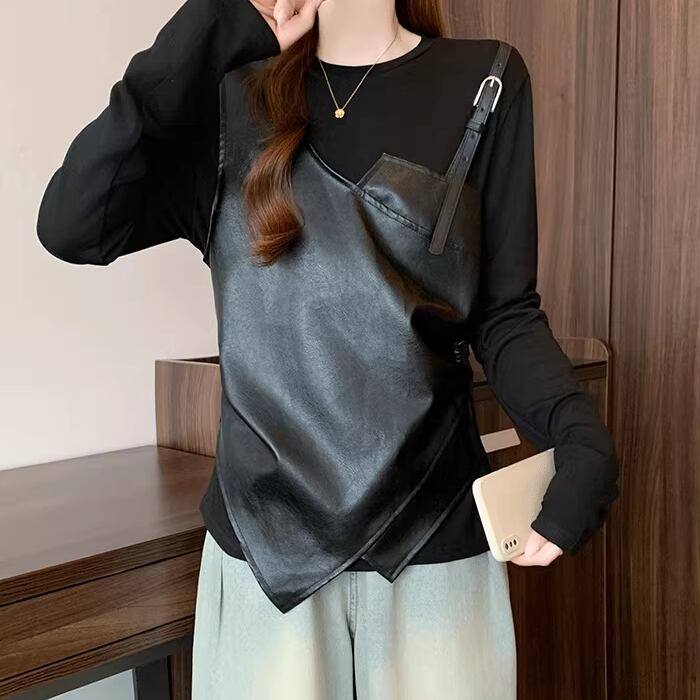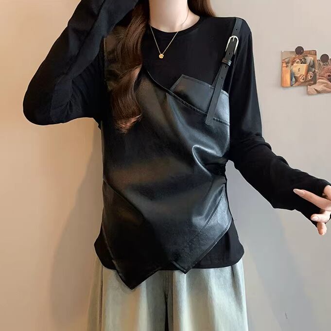 4色/アシメデザインサイドギャザーカットソー ・75506