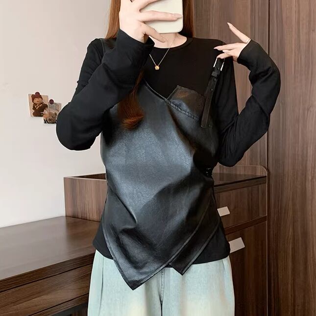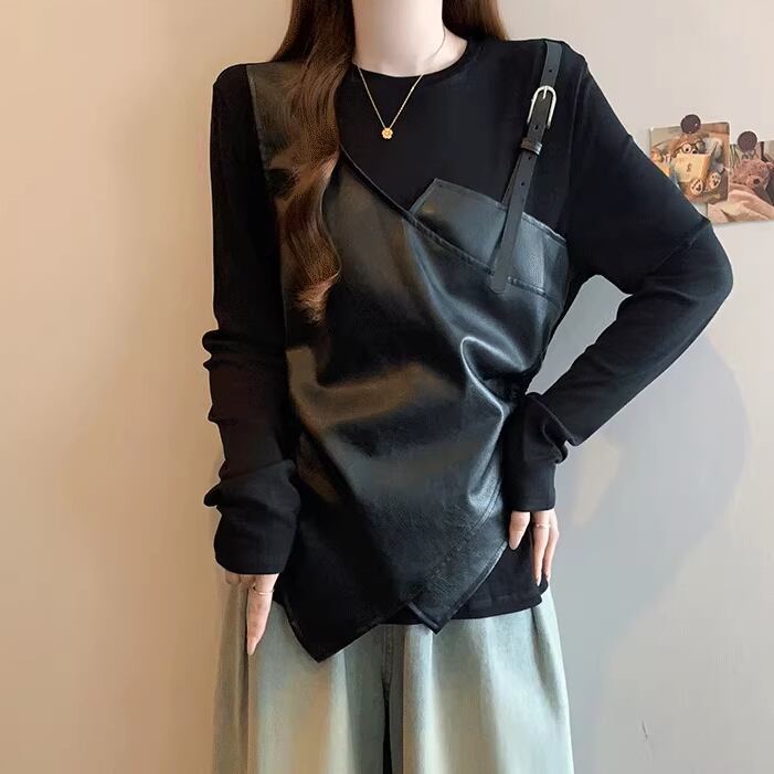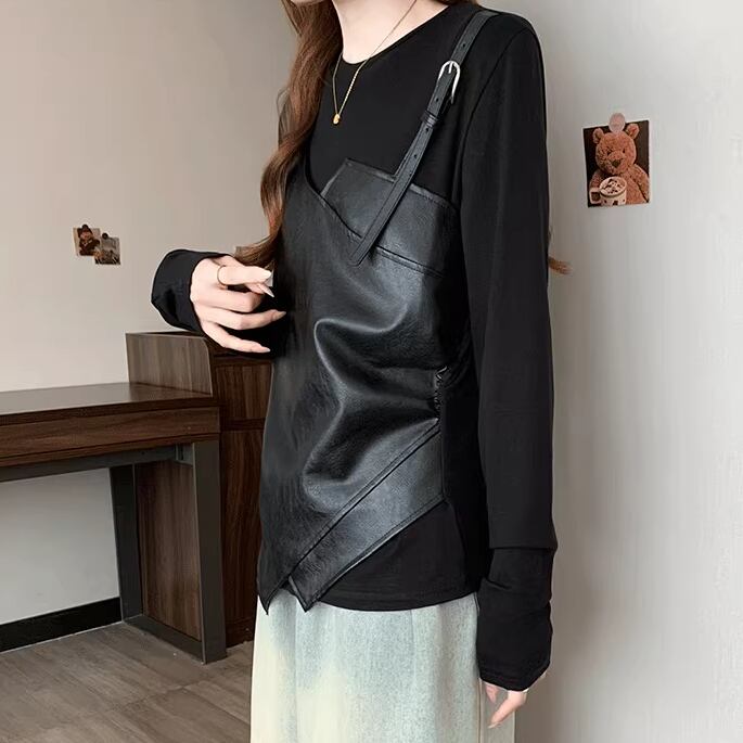 レースカラーアシメボタンドッキングトップス ・71106