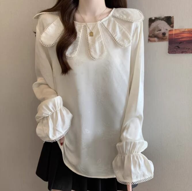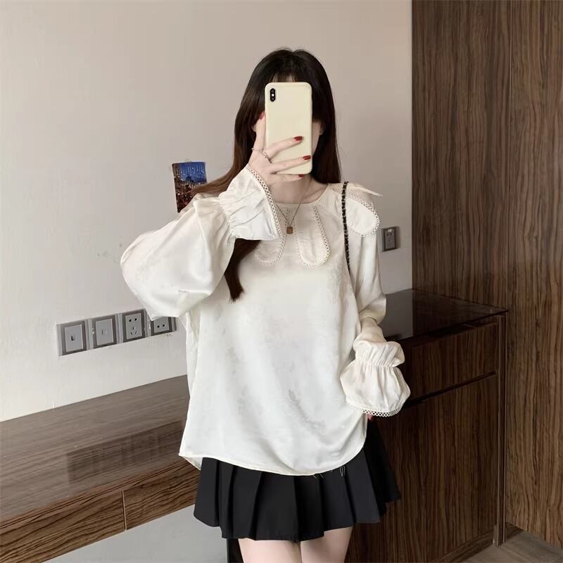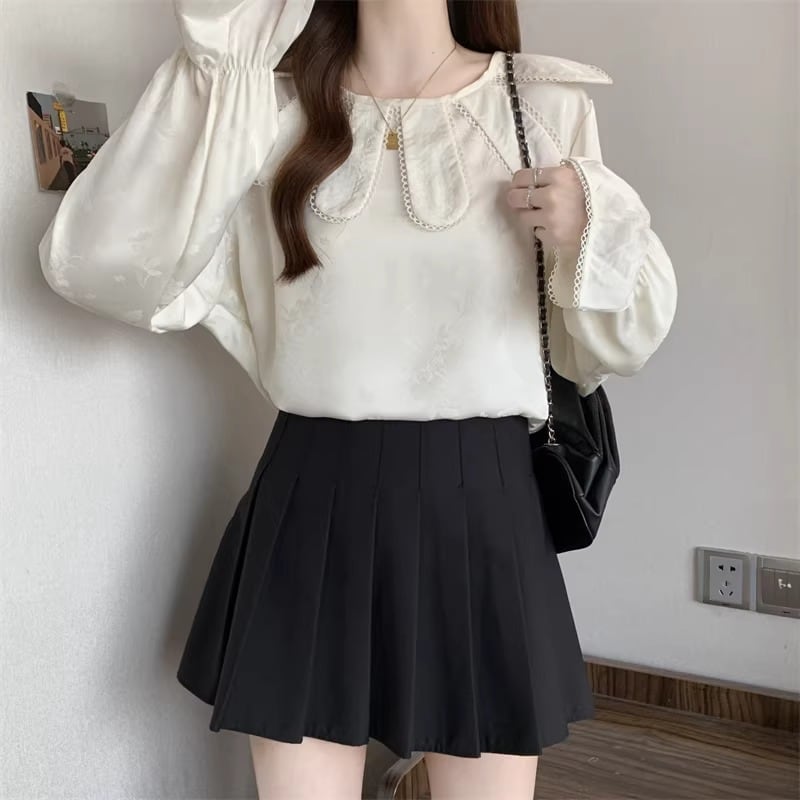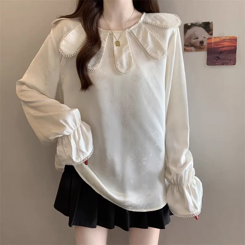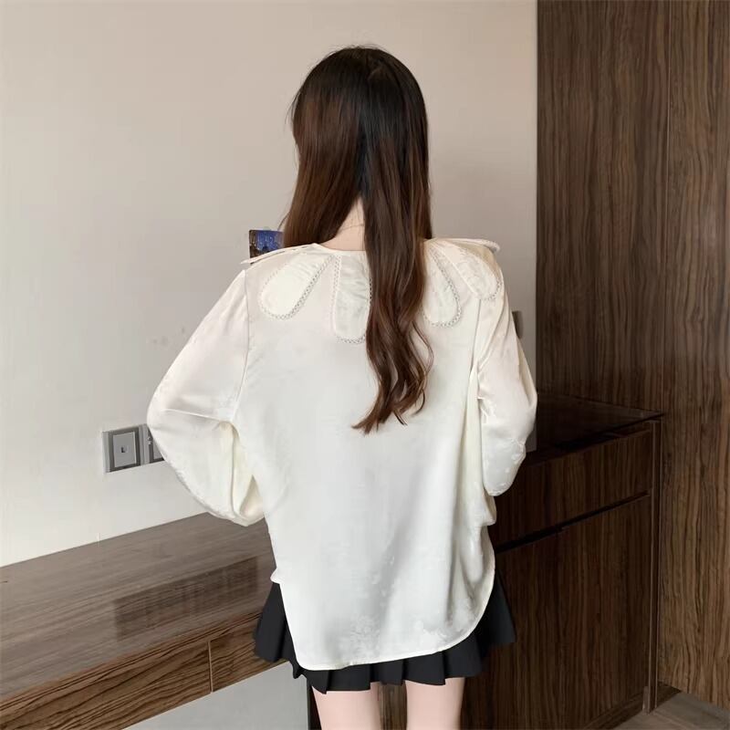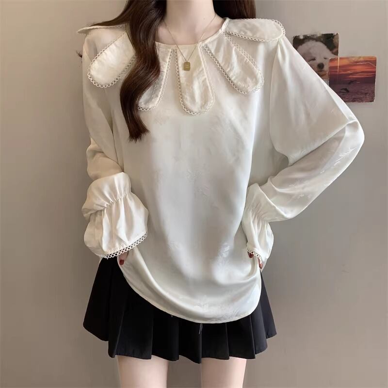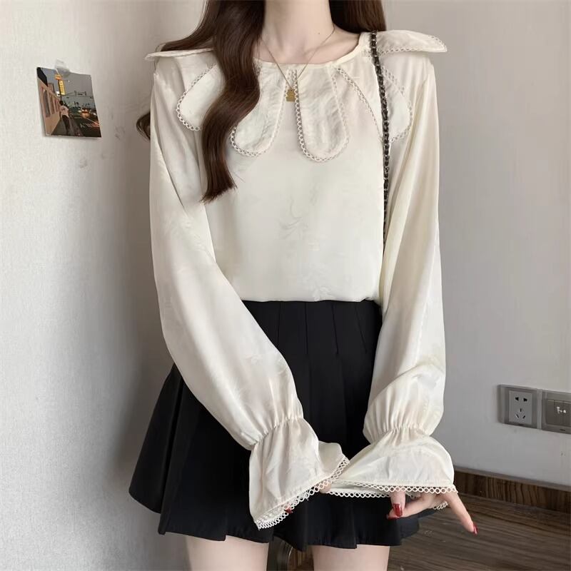 レースカラーアシメボタンドッキングトップス ・71106