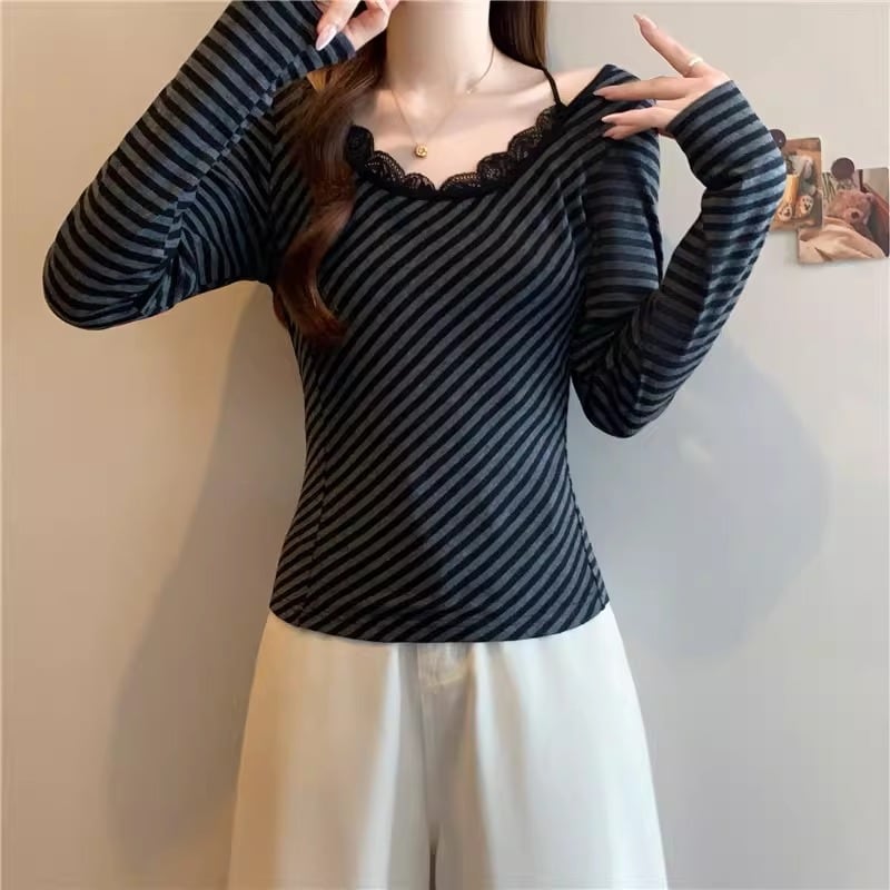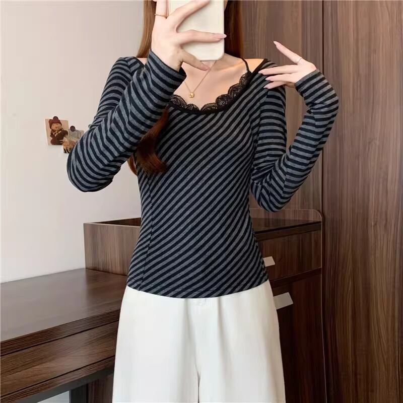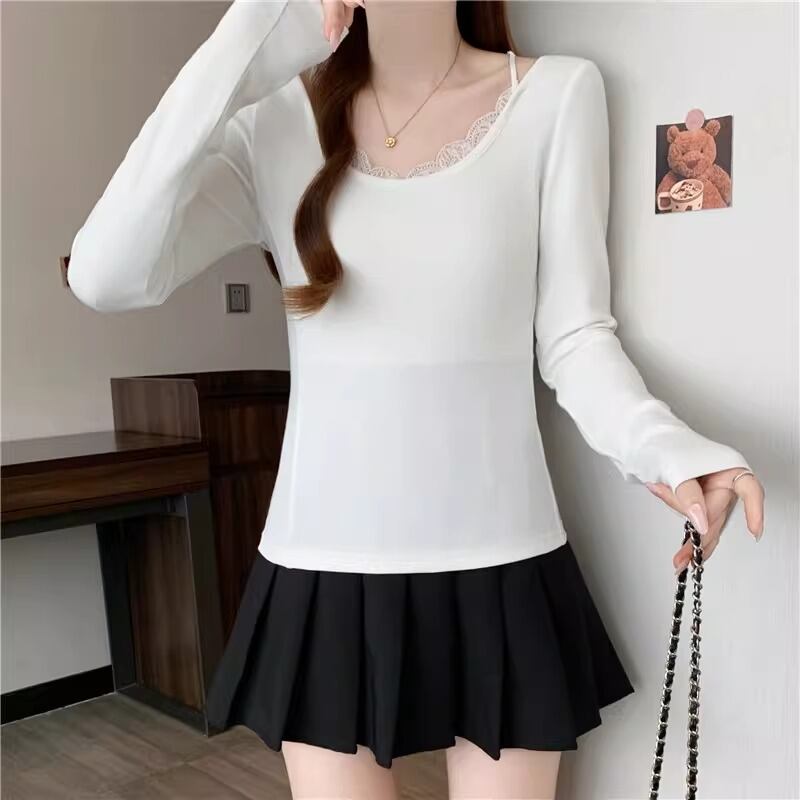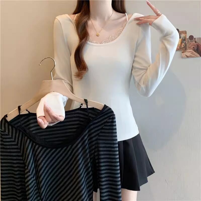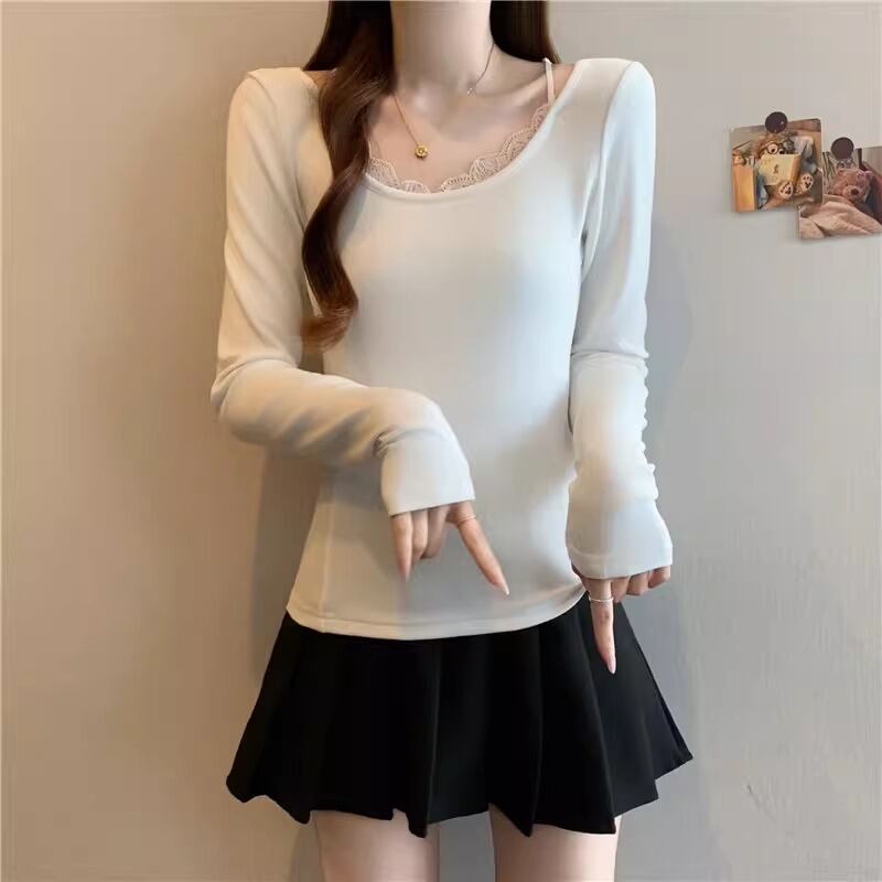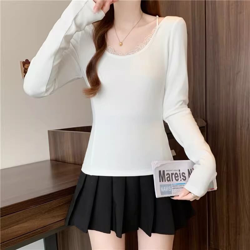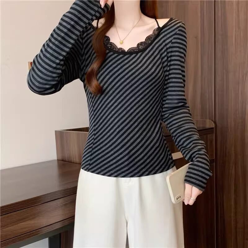 レースカラーアシメボタンドッキングトップス ・71106