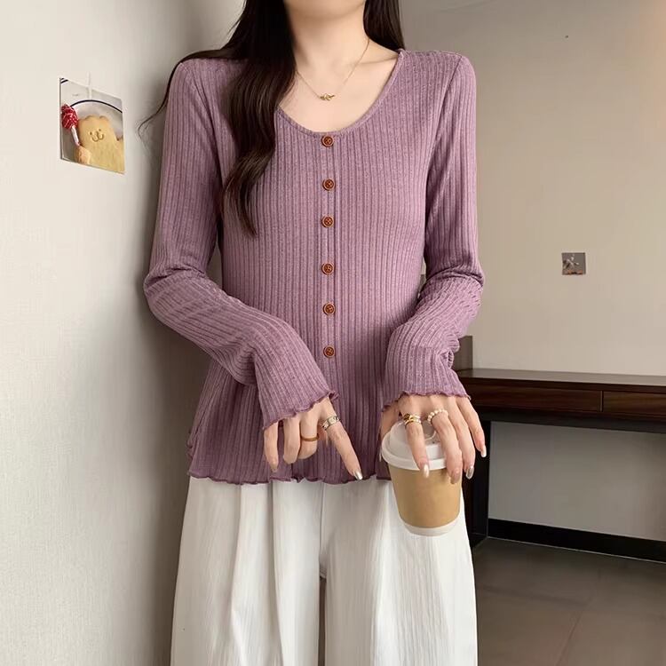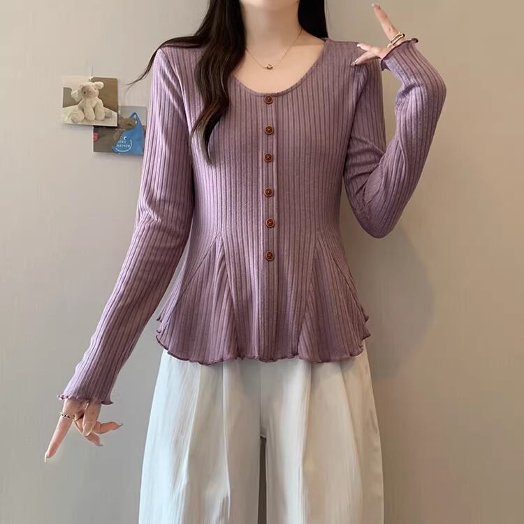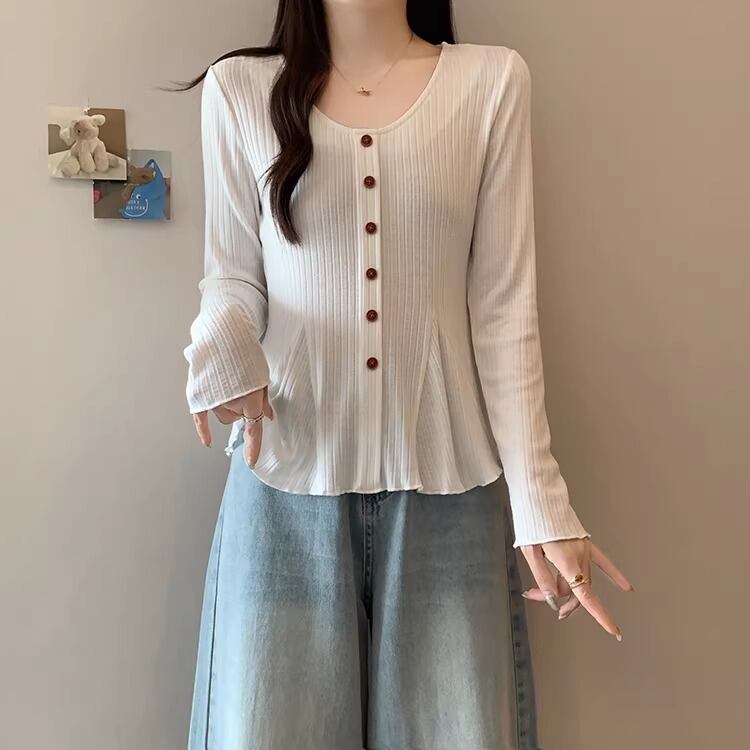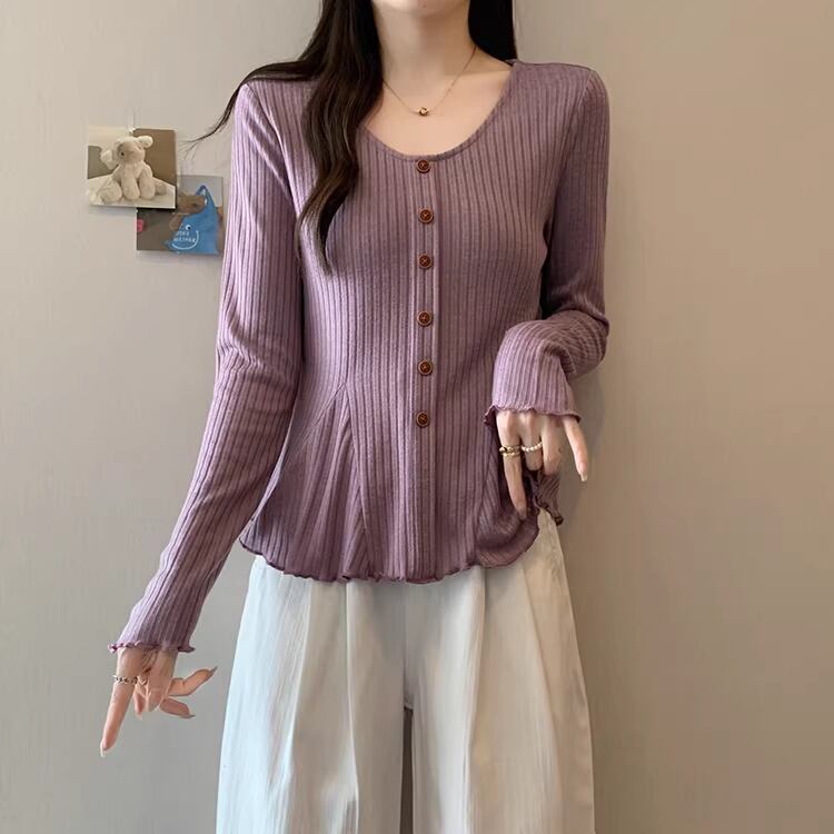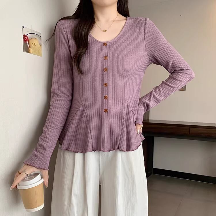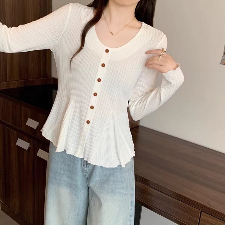 レースカラーアシメボタンドッキングトップス ・71106