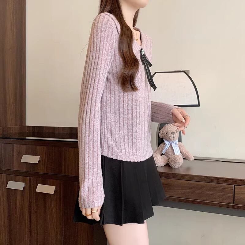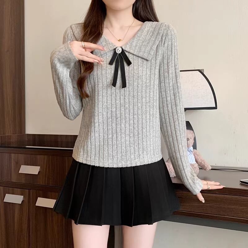 レースカラーアシメボタンドッキングトップス ・71106