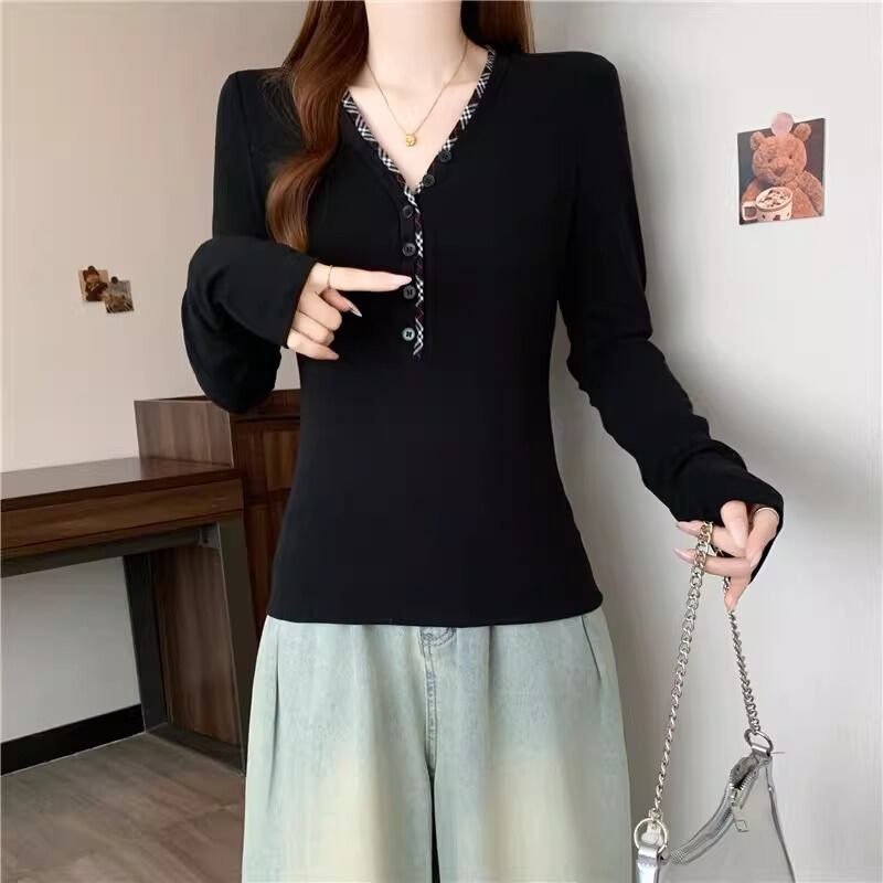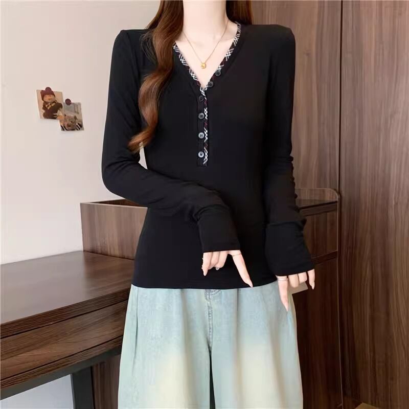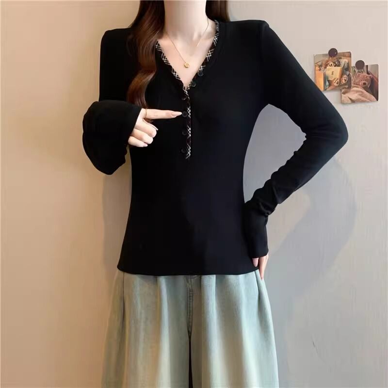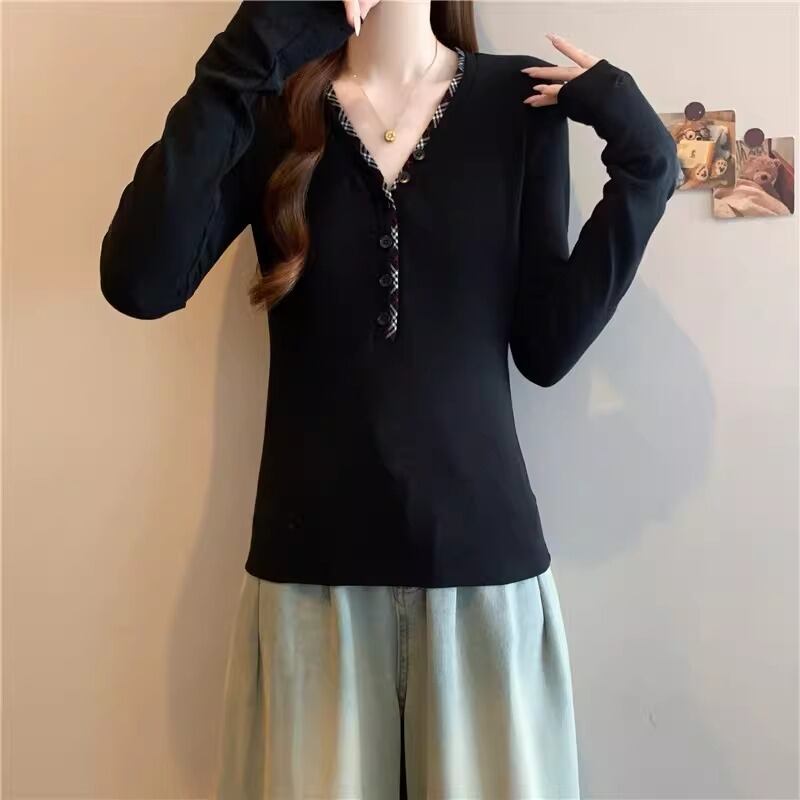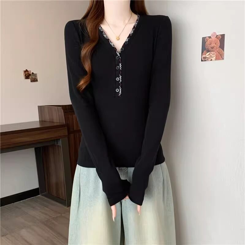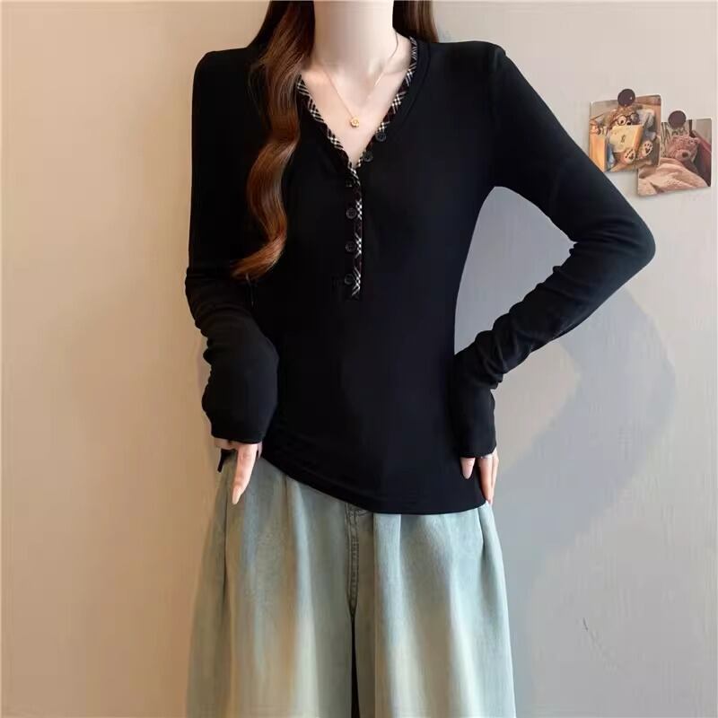 レースカラーアシメボタンドッキングトップス ・71106