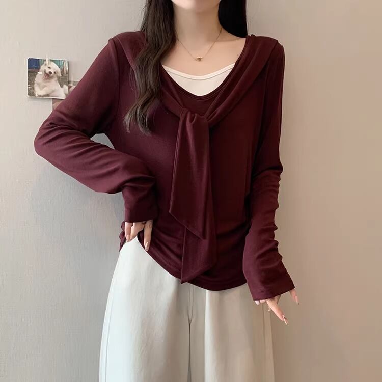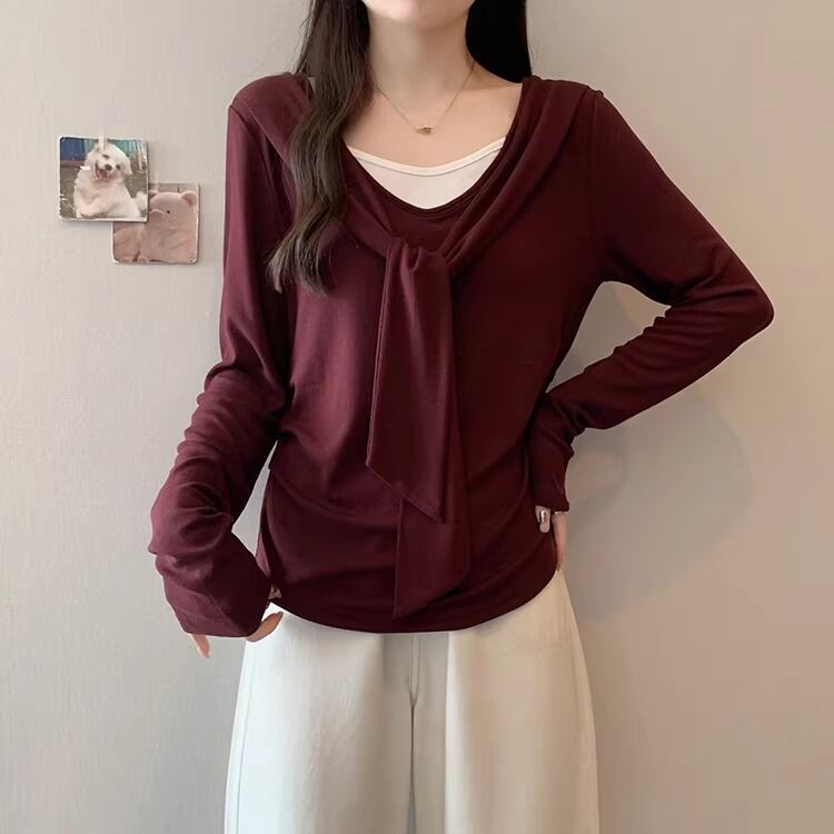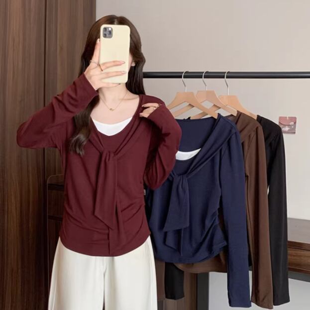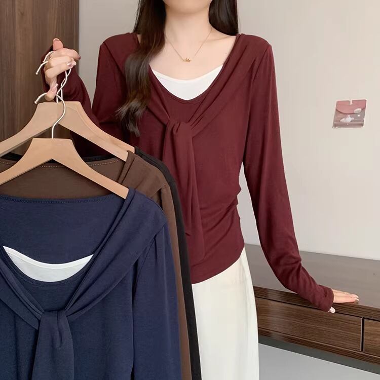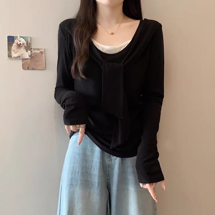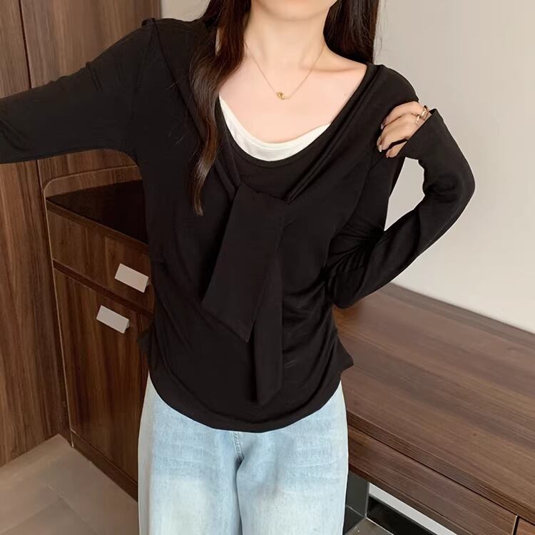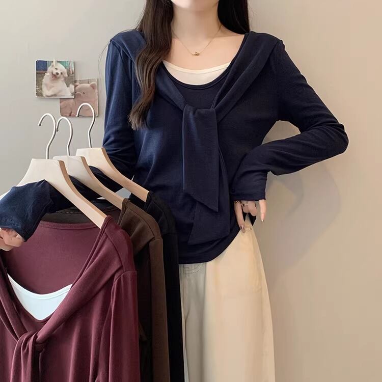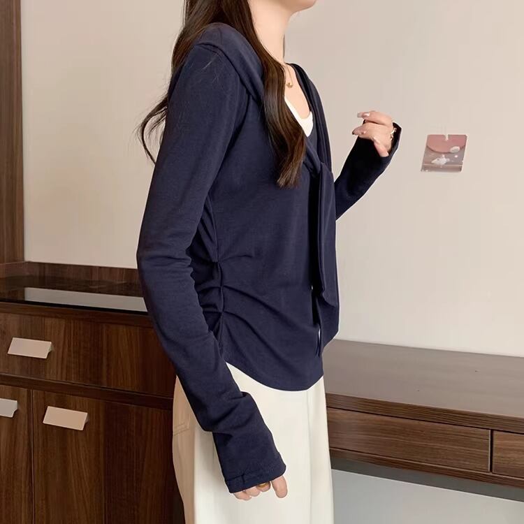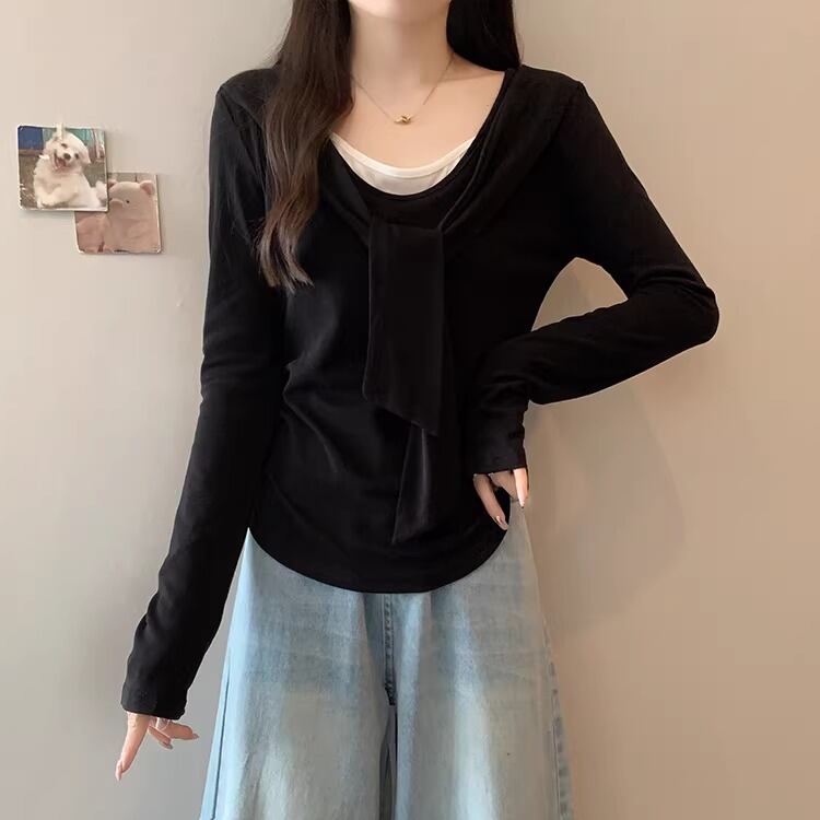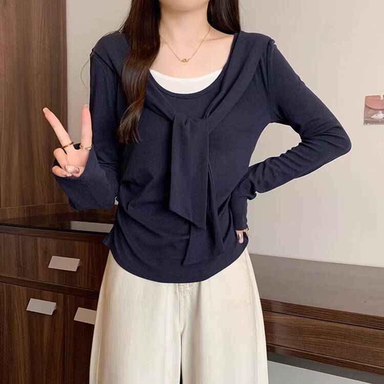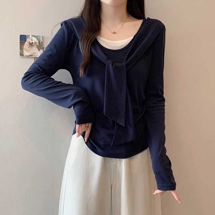 レースカラーアシメボタンドッキングトップス ・71106