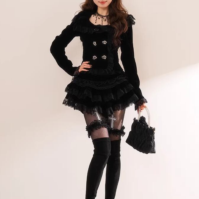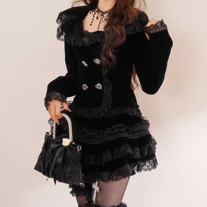 ▽Instagram「新作情報配信中」 フォローお願いいたします。 https://www.instagram.com/sucrier_closet/ ▼カラー ブラック ▼サイズ [ Sサイズ ] トップス:着丈49cm バスト92cm ウエスト69cm スカート:着丈33.5cm ウエスト60cm [ Mサイズ ] トップス:着丈50cm バスト96cm ウエスト73cm スカート:着丈34cm ウエスト64cm [ Lサイズ ] トップス:着丈51cm バスト100cm ウエスト77cm スカート:着丈34.5cm ウエスト68cm [ XLサイズ ] トップス:着丈52cm バスト104cm ウエスト81cm スカート:着丈35cm ウエスト72cm ※1-3cm程度の誤差がある場合がございます。予めご了承ください。 ▼シーズン 秋,冬 ▼同じカテゴリの商品はこちら https://www.sucrier.jp/categories/1737171 ▽お支払い方法 ・クレジットカード決済 ・キャリア決済 (docomo/au/Softbank/Y!mobile) ・後払い決済 (商品お届け後コンビニ払いなど) ▽注意点 ※こちらの商品は決済から10日-3週間前後でのお届けとなります。 ※配送日時指定等に関しては、ご指定できないことご了承くださいませ。 ※できる限り早くお届けできるように手配させて頂きます。 ※検品はしておりますが、もし届いた商品に不備がありましたら、誠実に対応させていただきます。 商品ID:SC075442