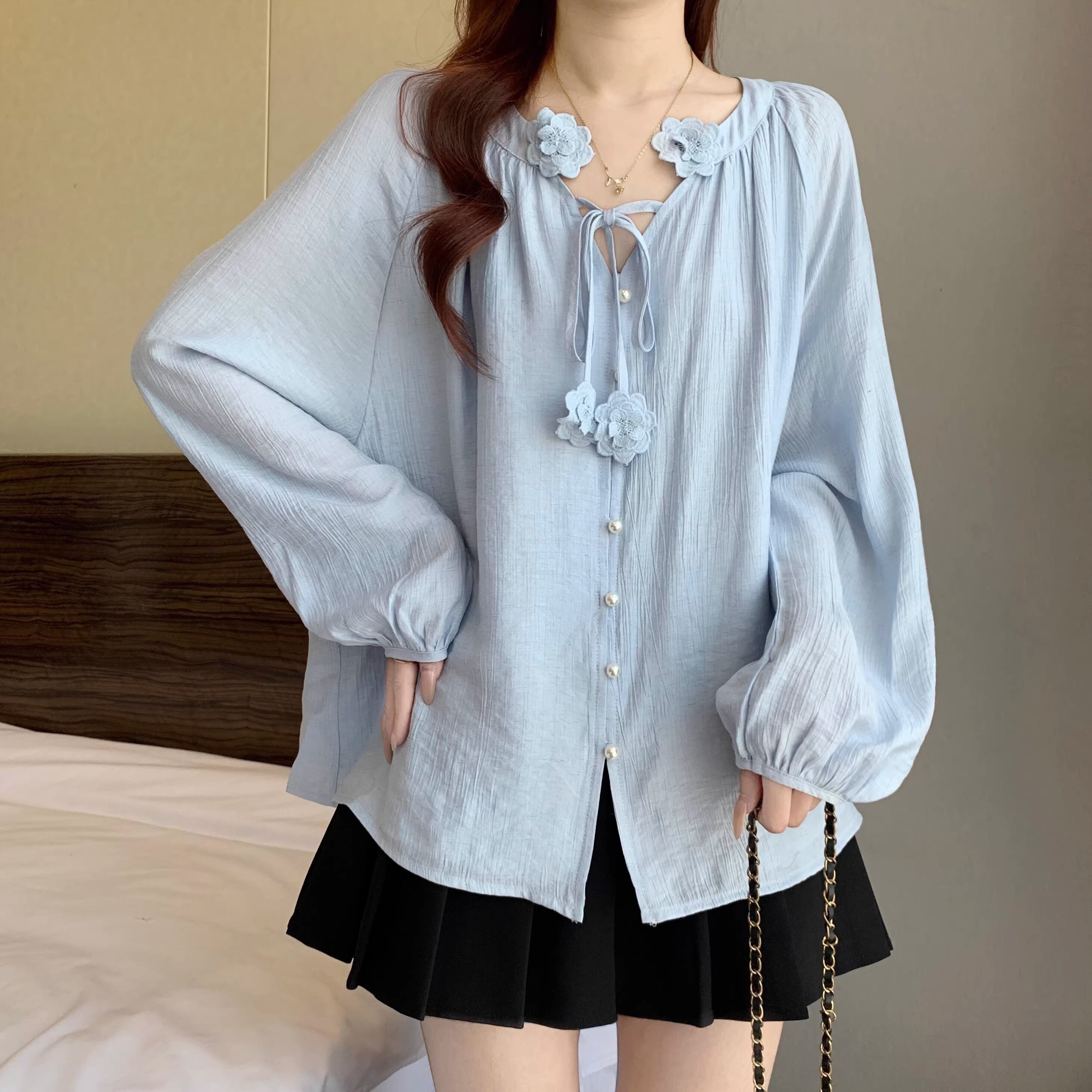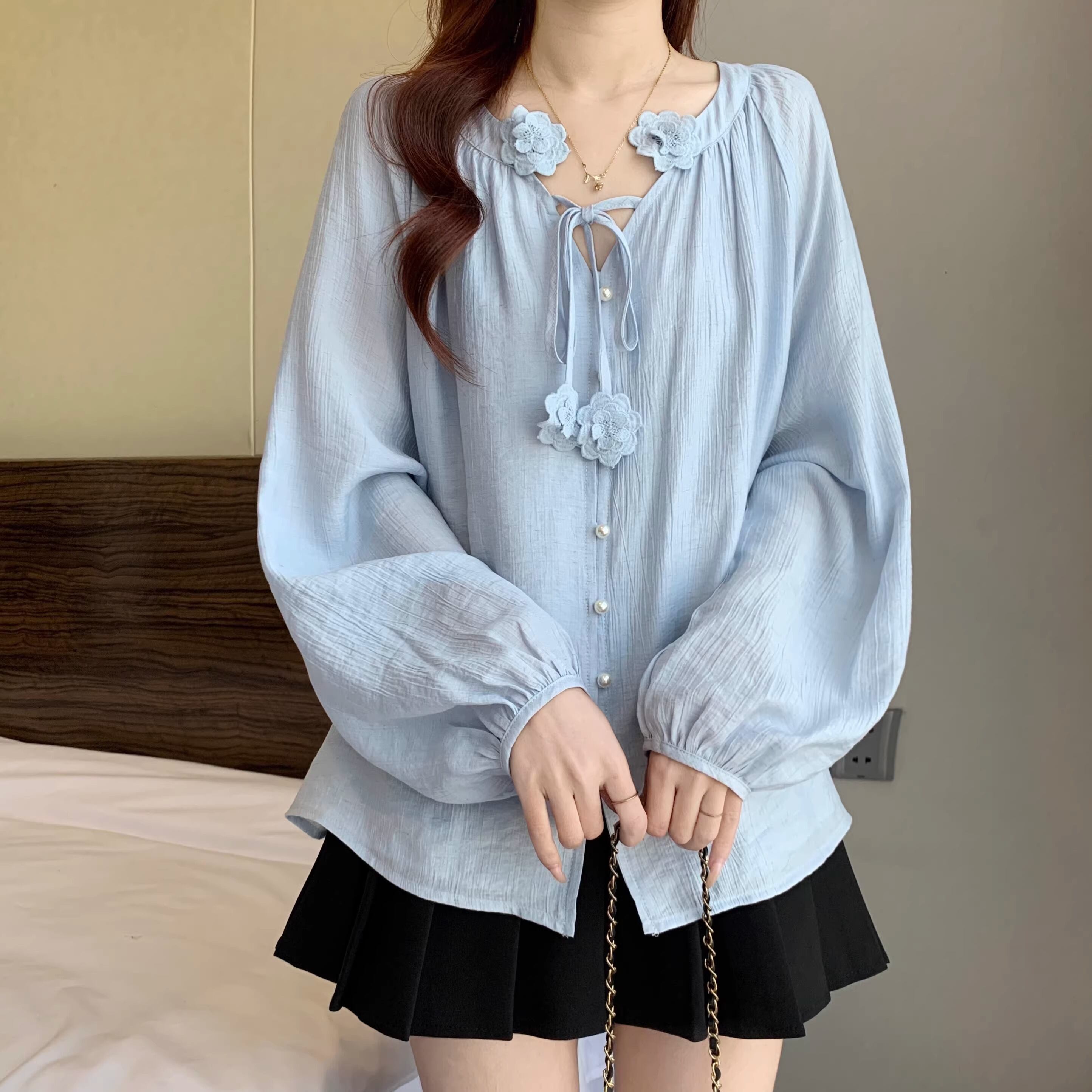 2色/フリルネックティアードギャザーブラウス ・75504
