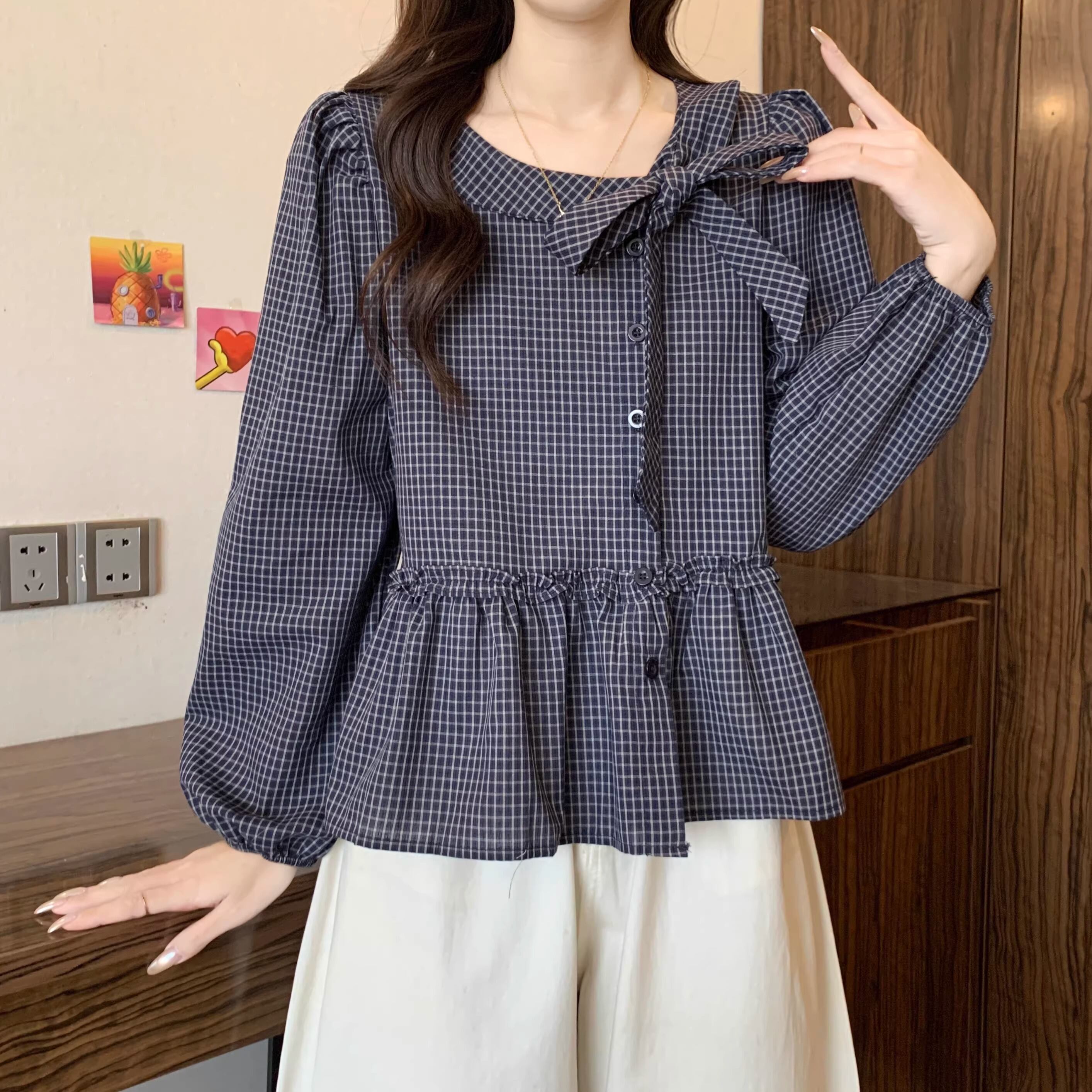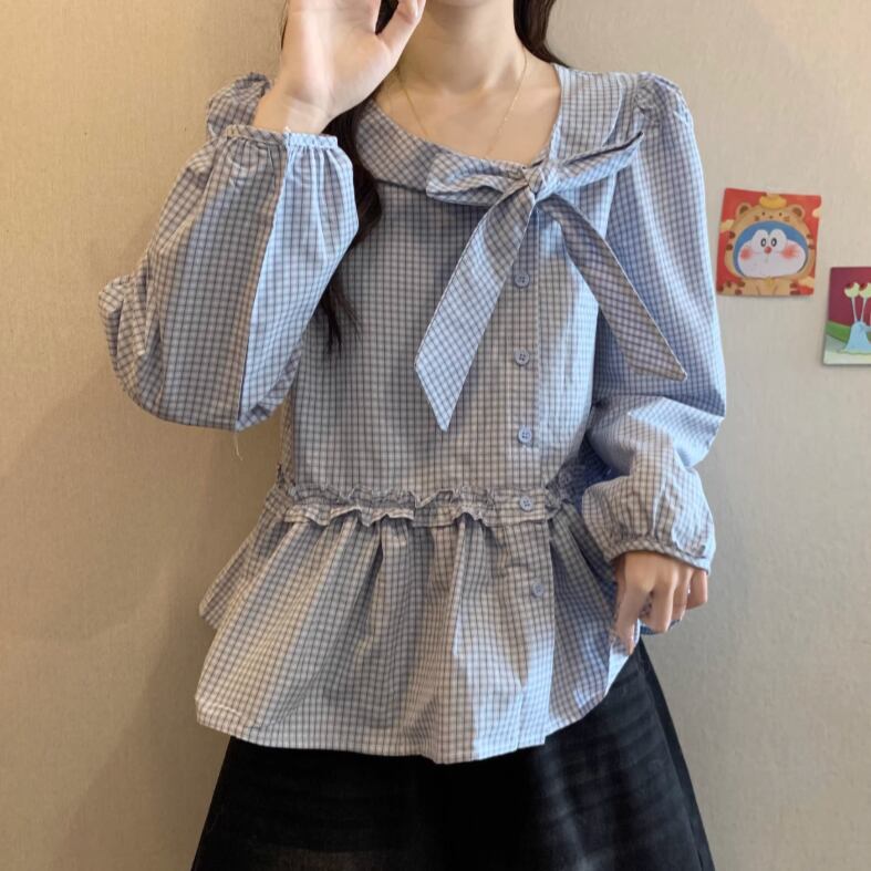 レースカラーアシメボタンドッキングトップス ・71106