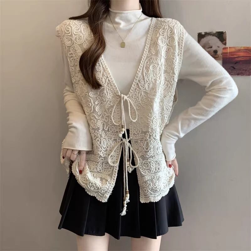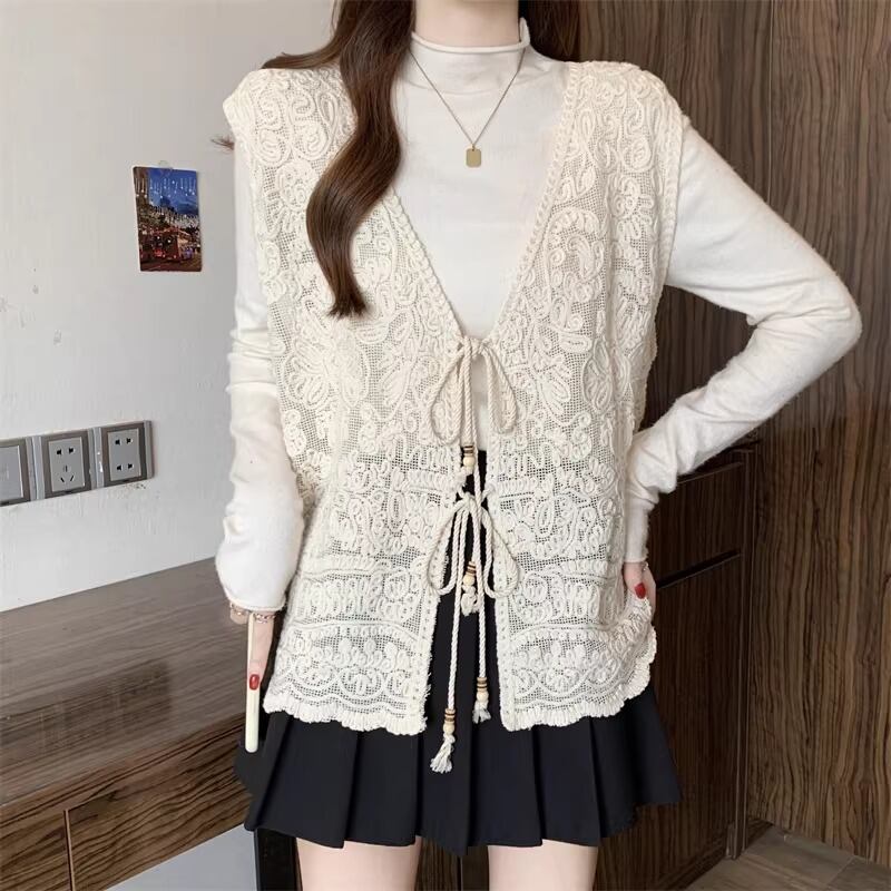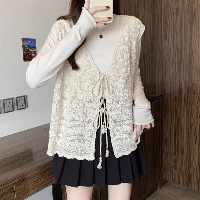 3色/リボンハニカムニットカーデ ・20306
