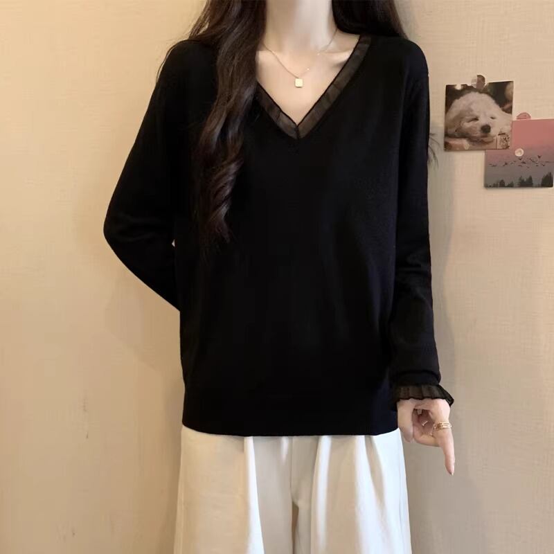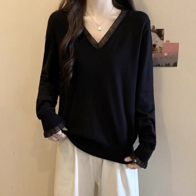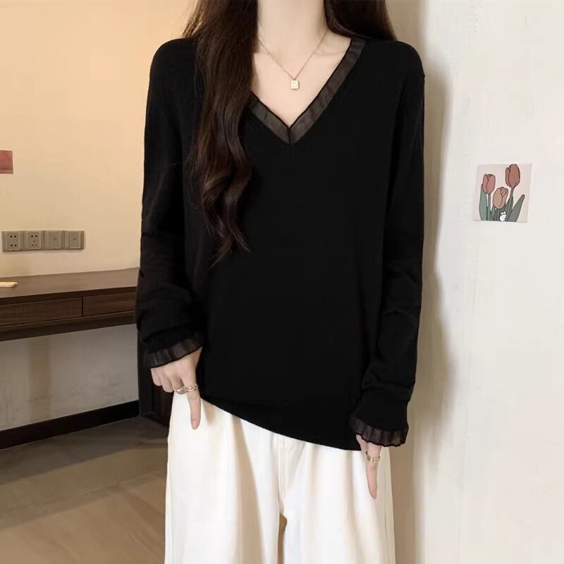 エンブロイダリーVネックシアーレーストップス ・75509