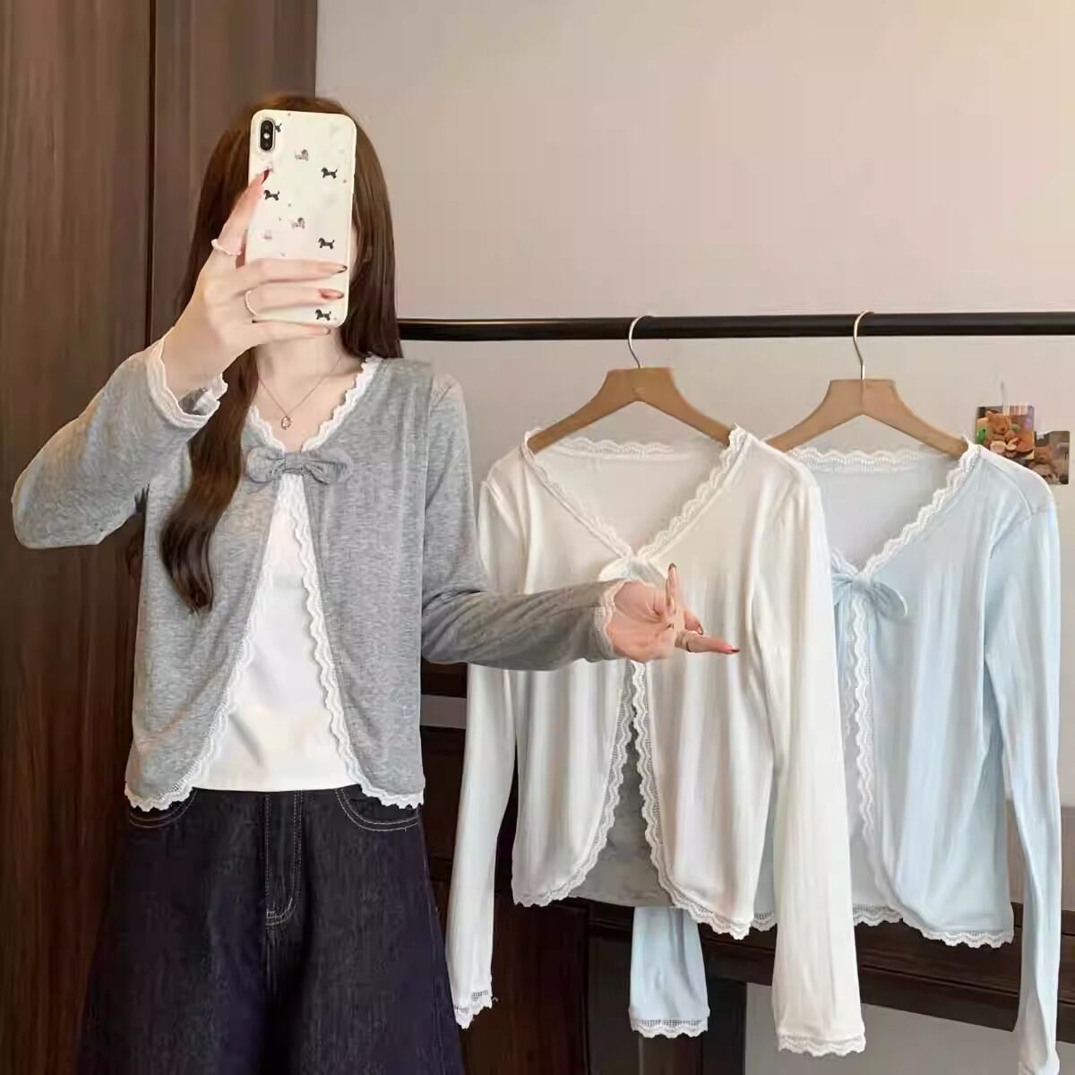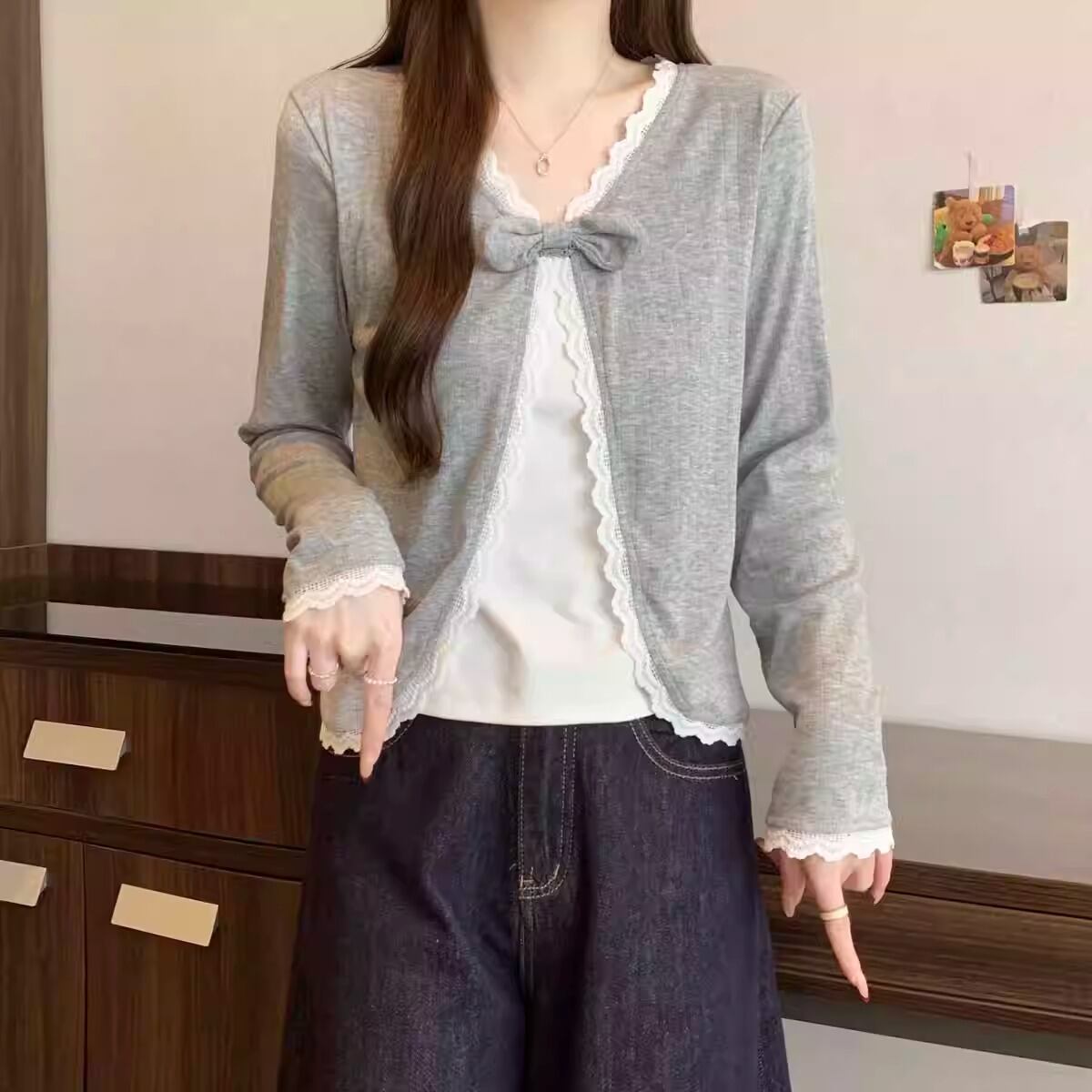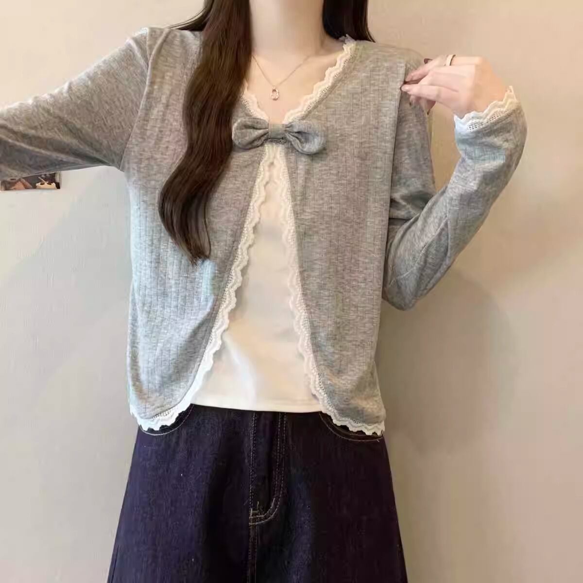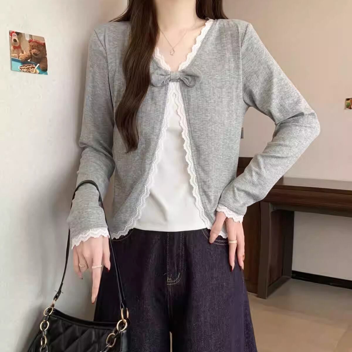 レースカラーアシメボタンドッキングトップス ・71106