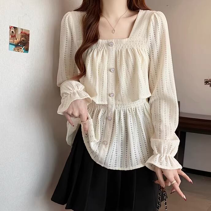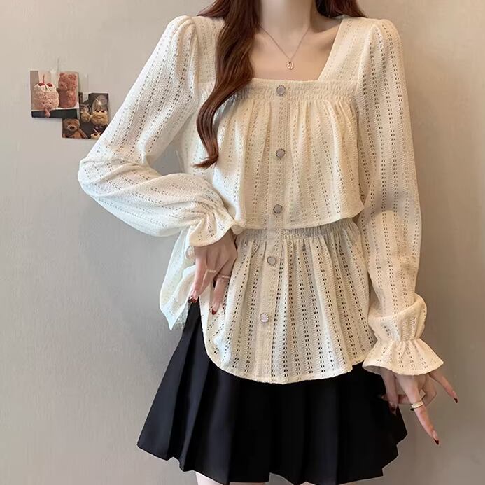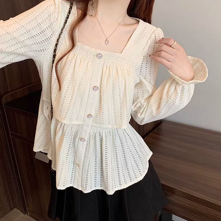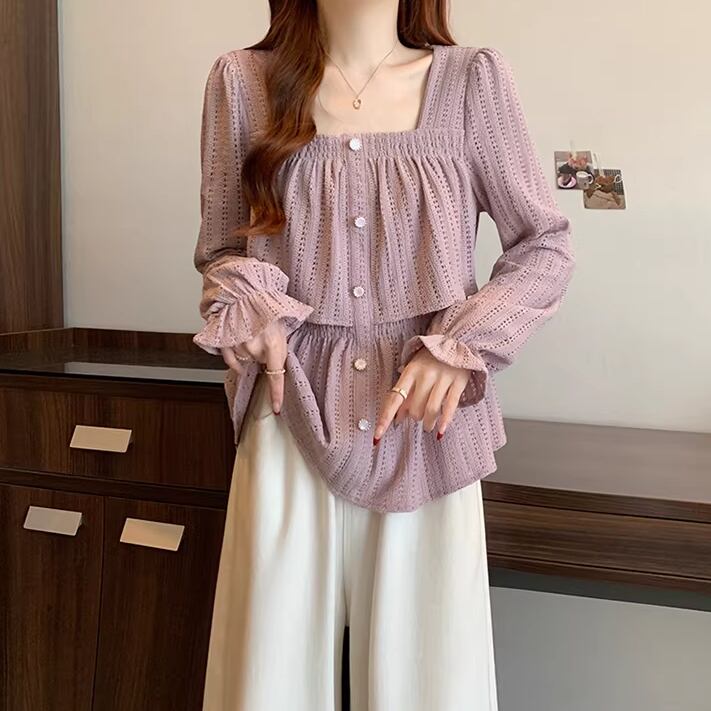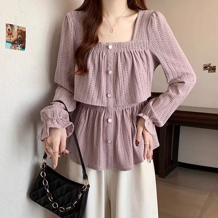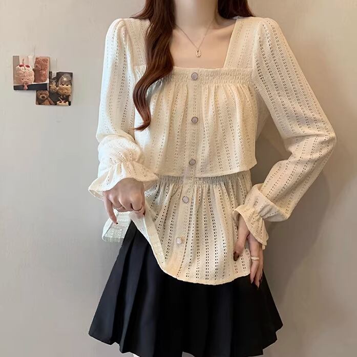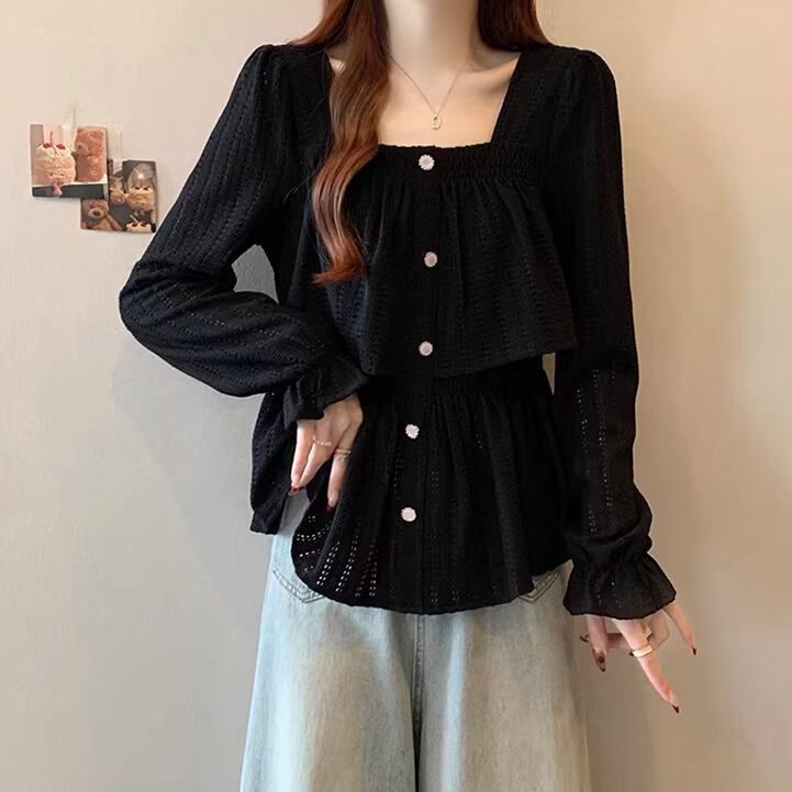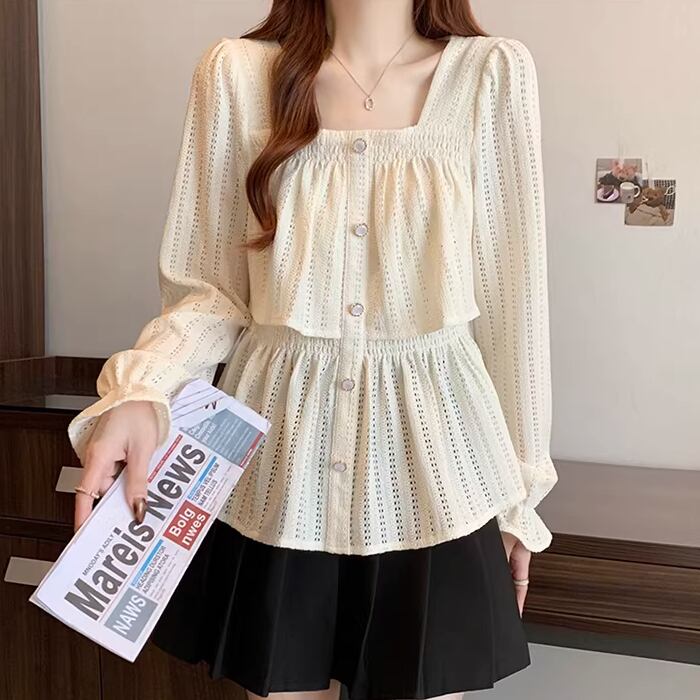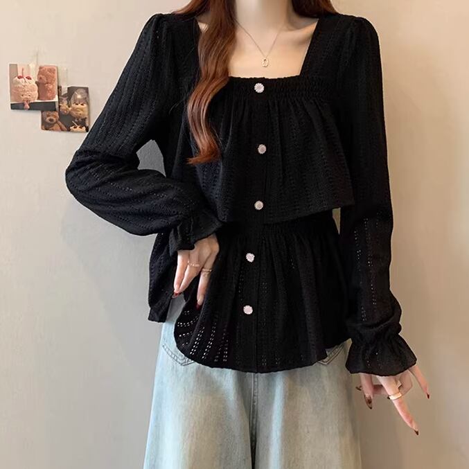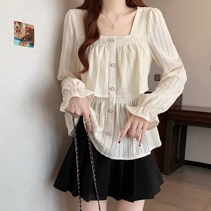 レースカラーアシメボタンドッキングトップス ・71106