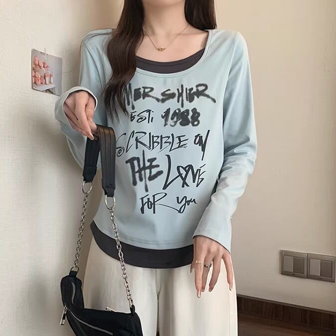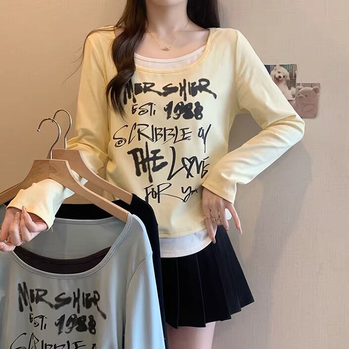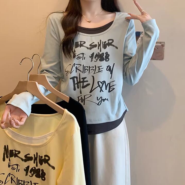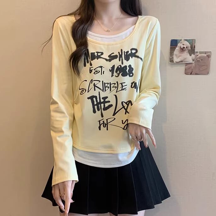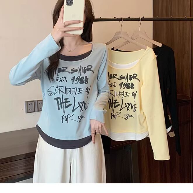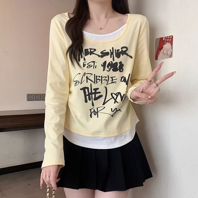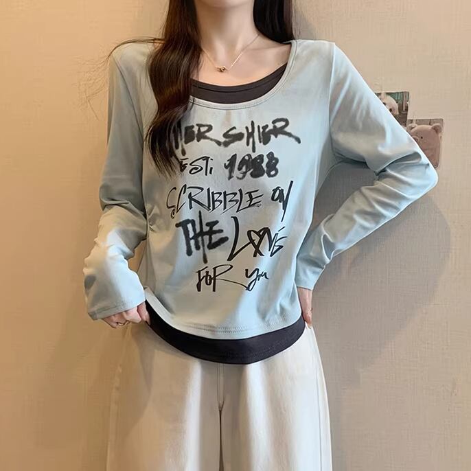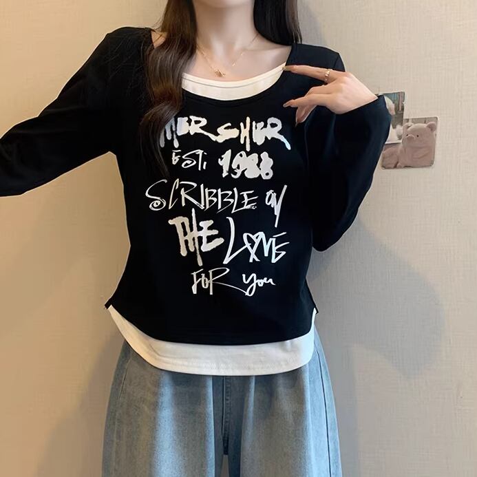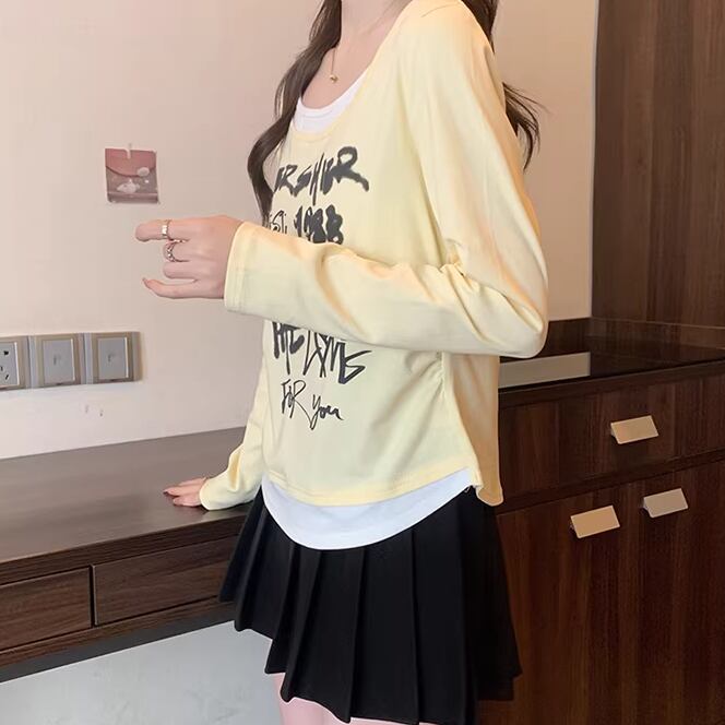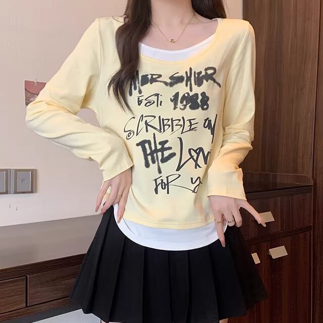 レースカラーアシメボタンドッキングトップス ・71106