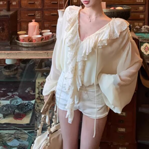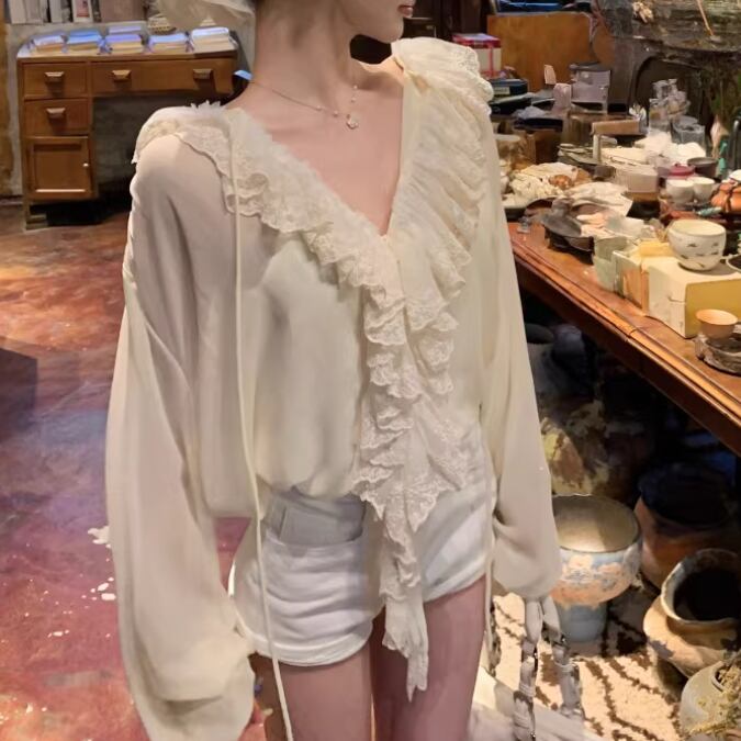 2色/フリルネックティアードギャザーブラウス ・75504