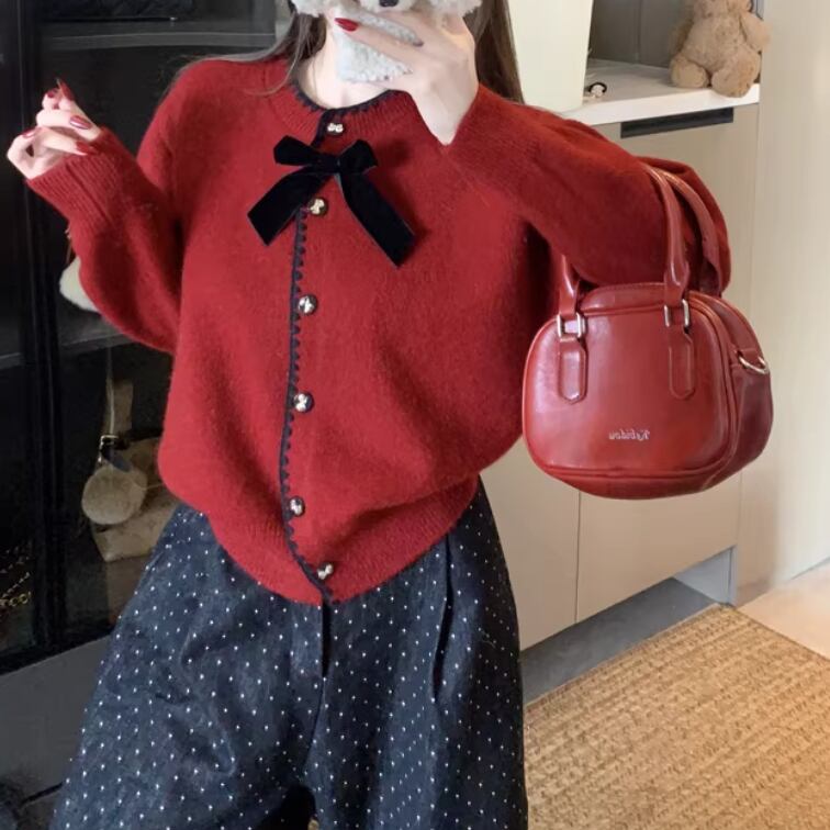 3色/リボンハニカムニットカーデ ・20306