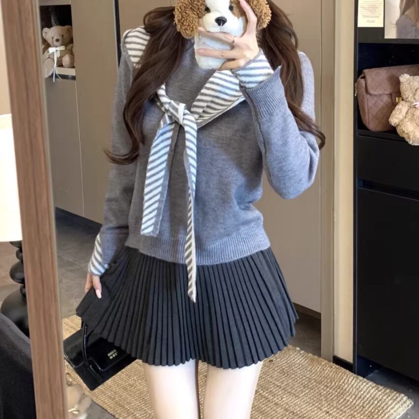 【2点セット】レイヤード風ツイードジャケット+プリーツスカート ・65693