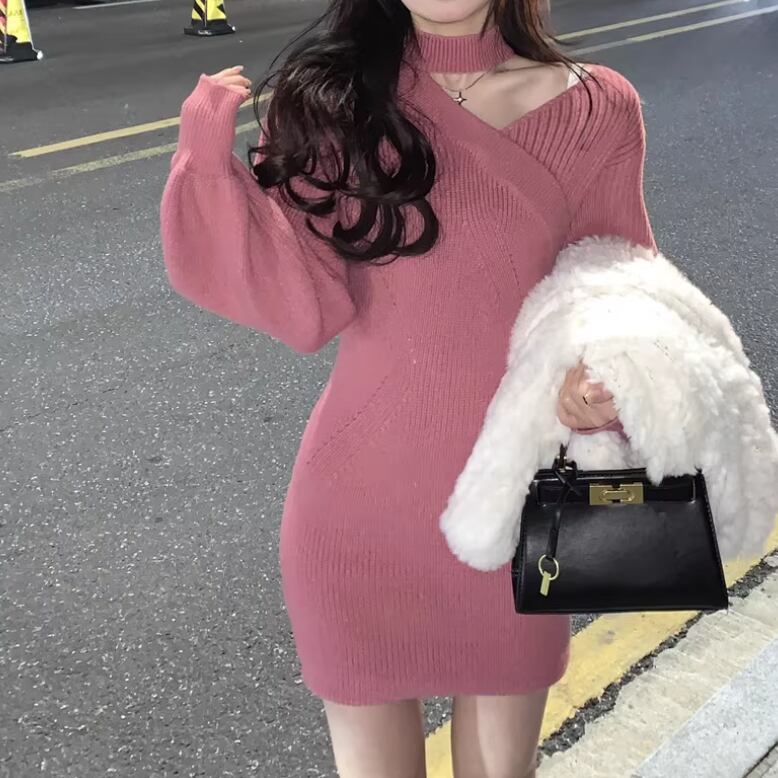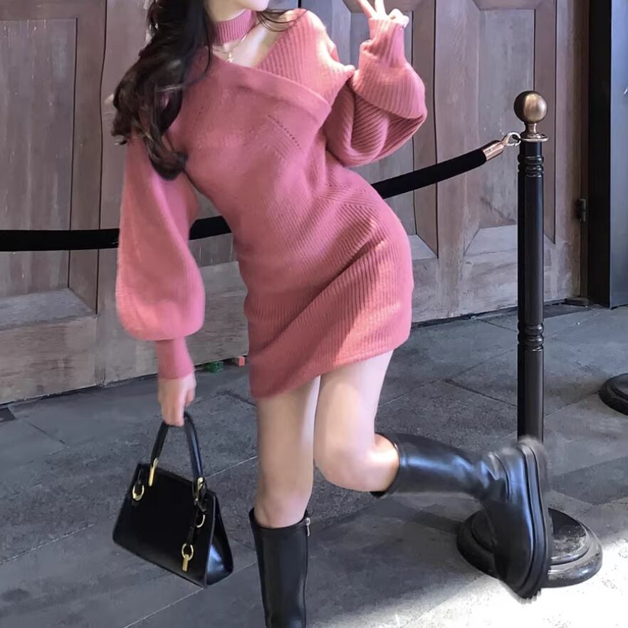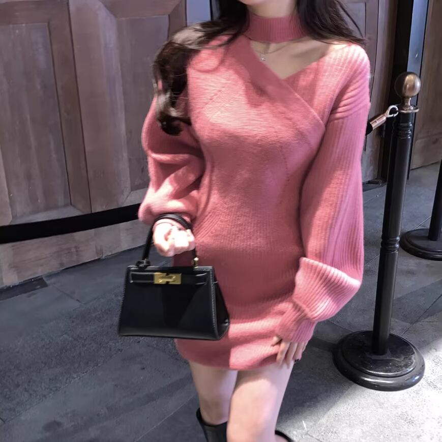 ポロカラーアーガイルニットワンピース ・72278