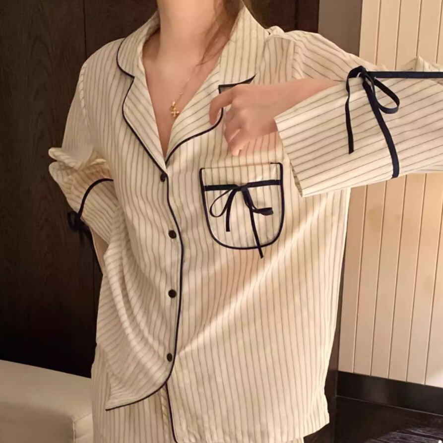 3色/チェックフリルトリムリボンルームウェア ・74345