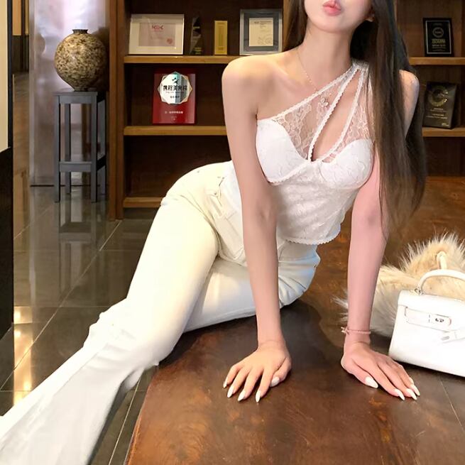 3色/カップ付きレースリボンベアトップ ・75258