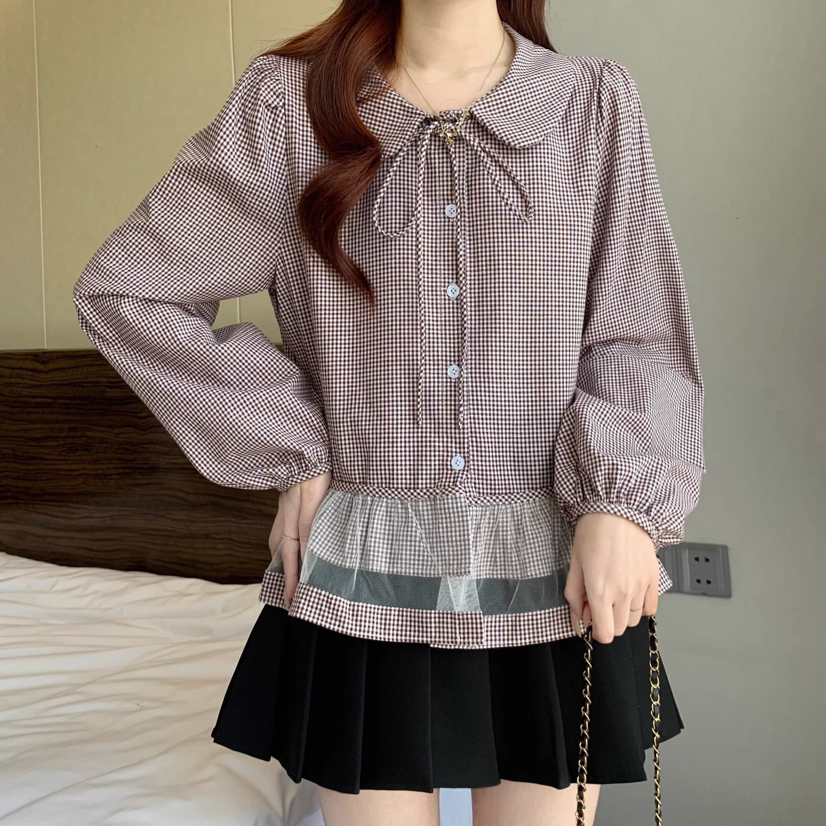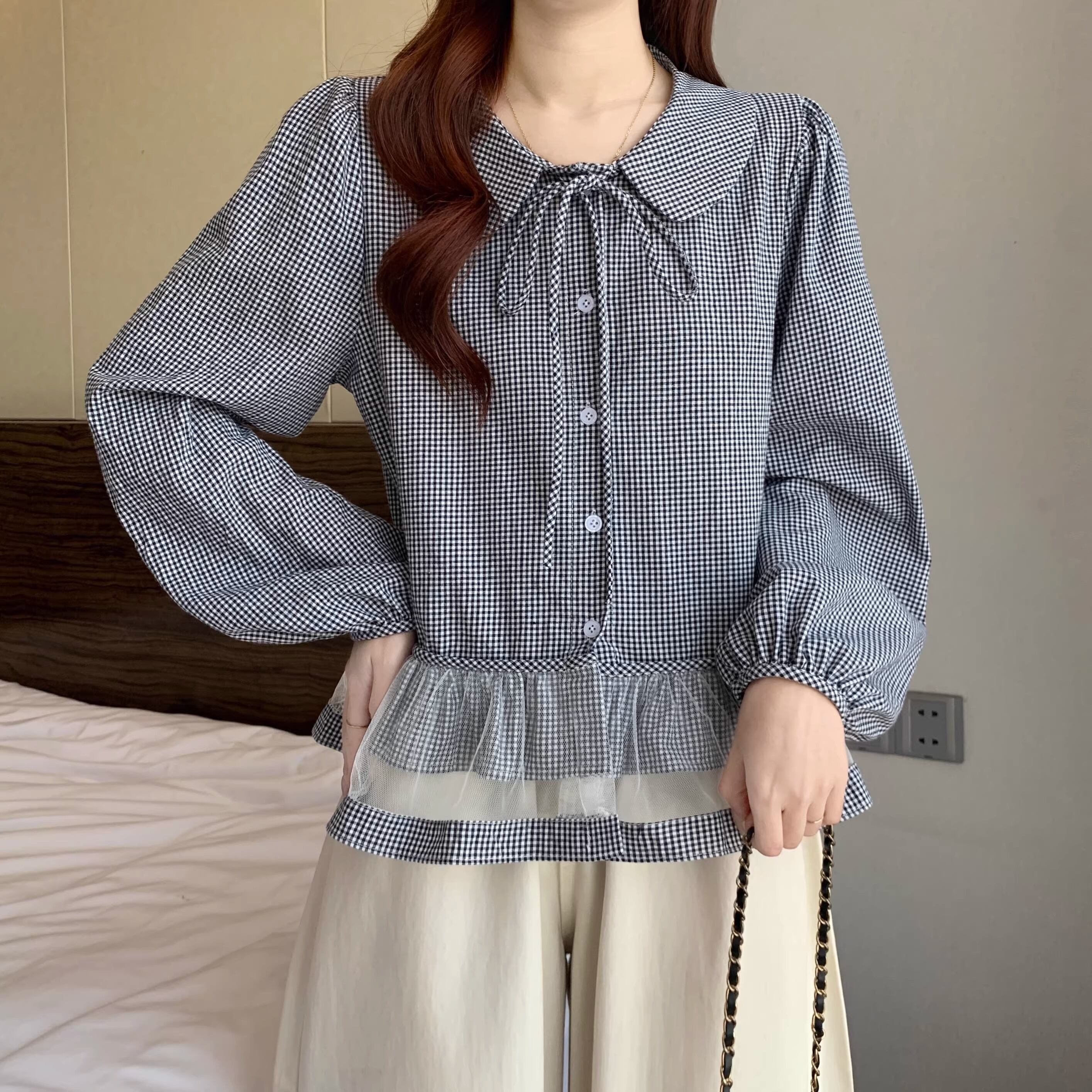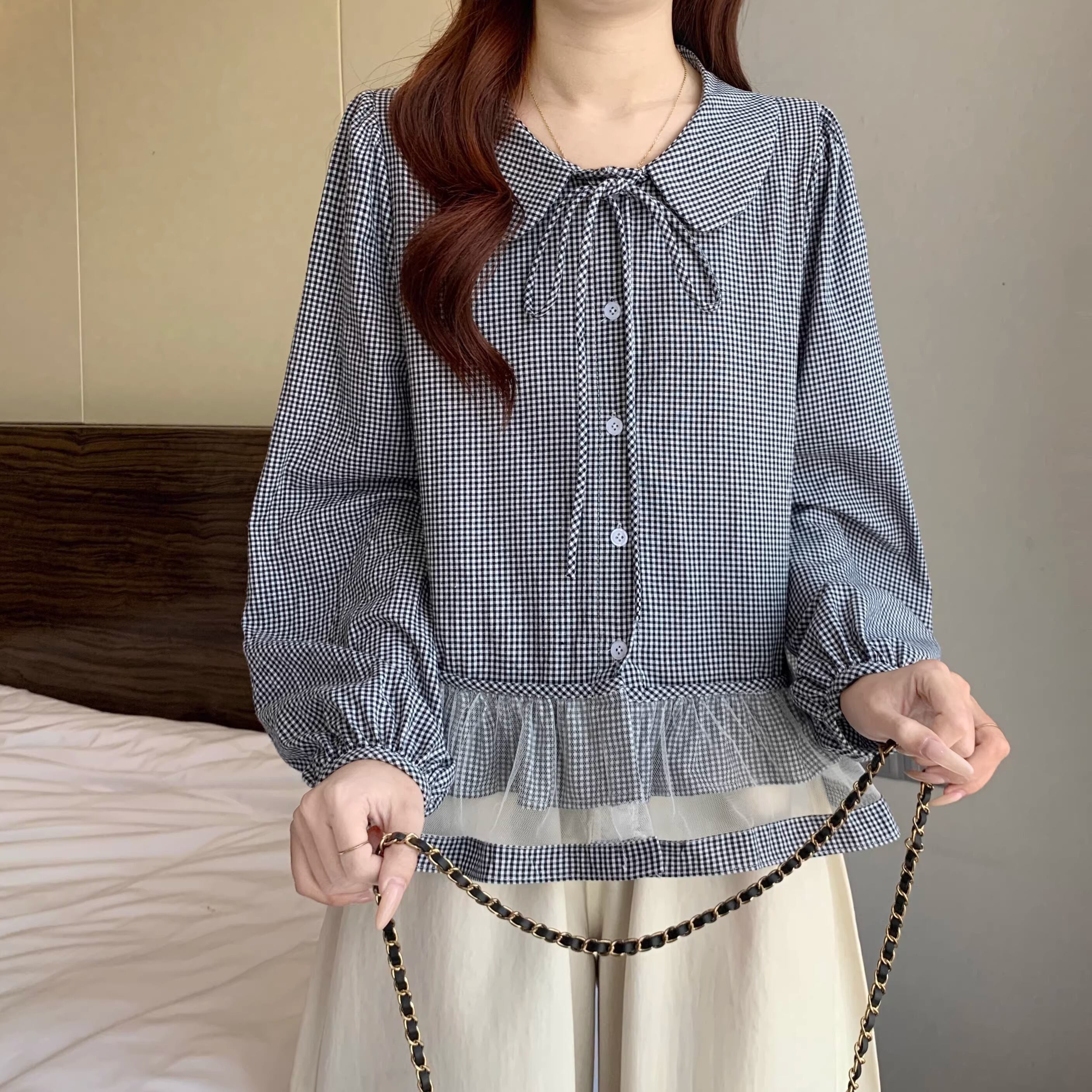 チェックキャミドッキングレースヘムトップス ・75630