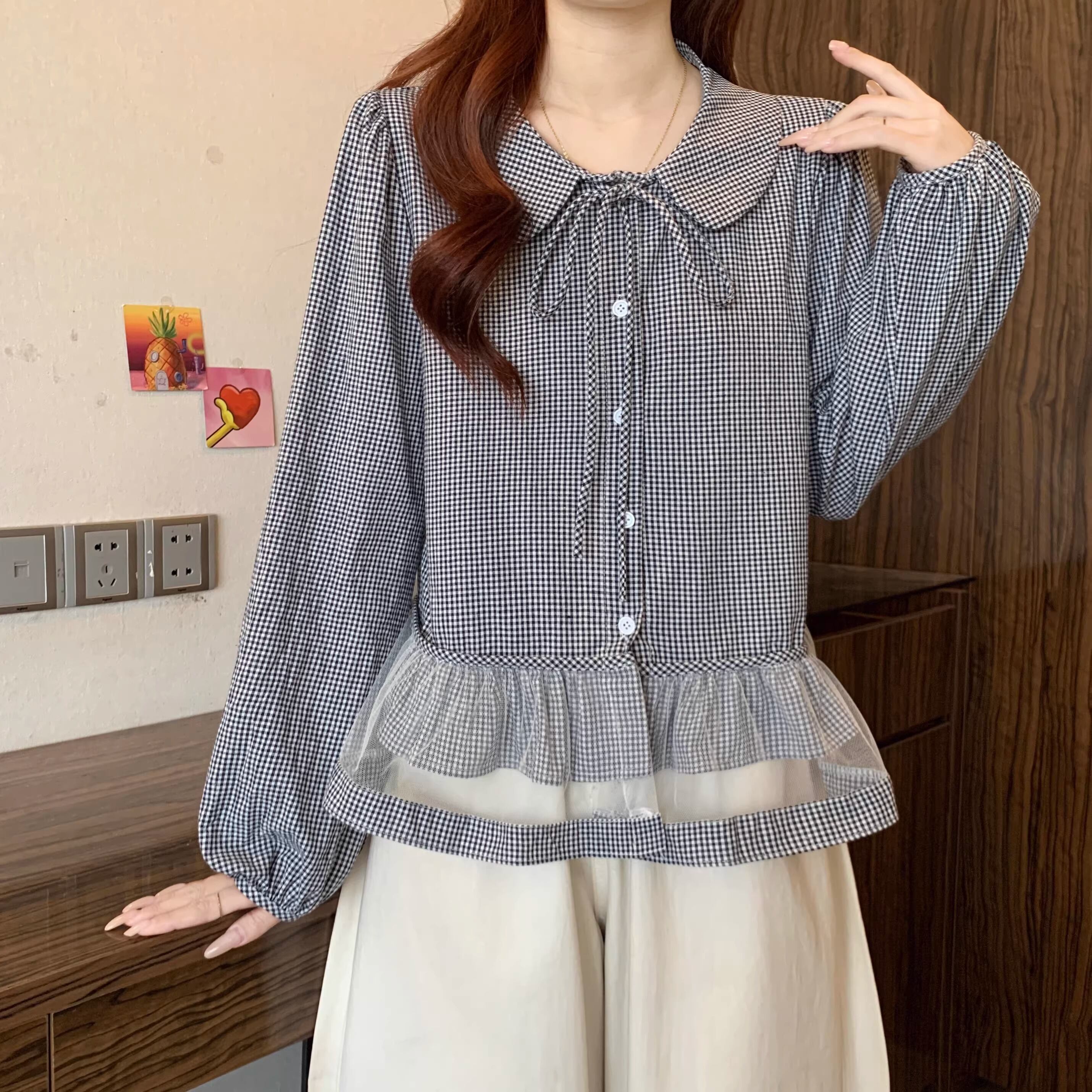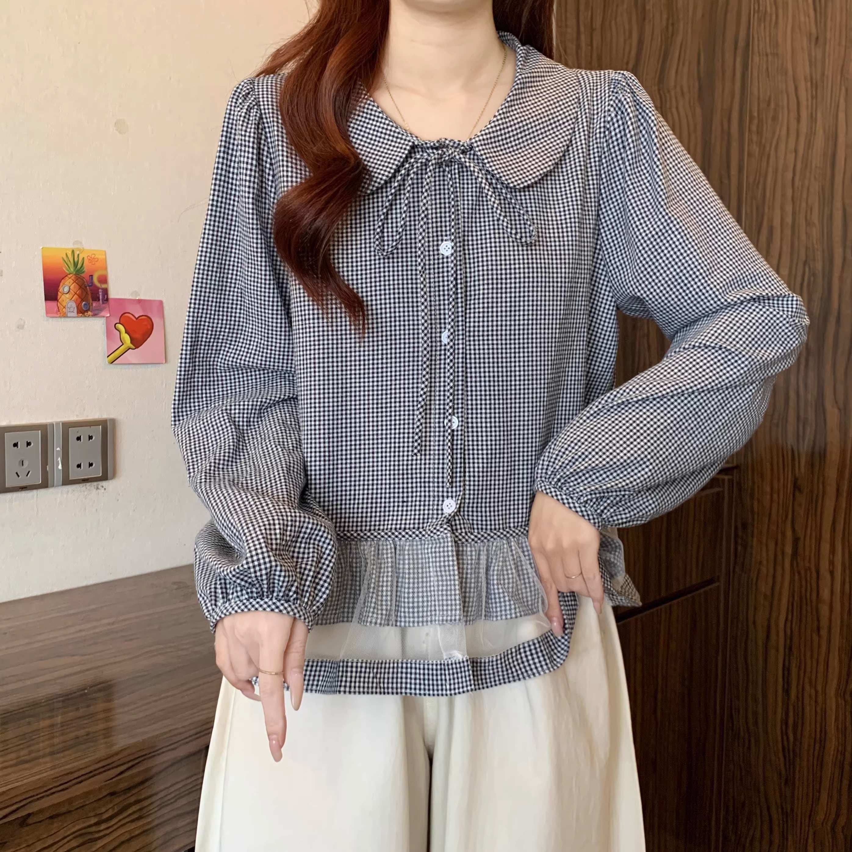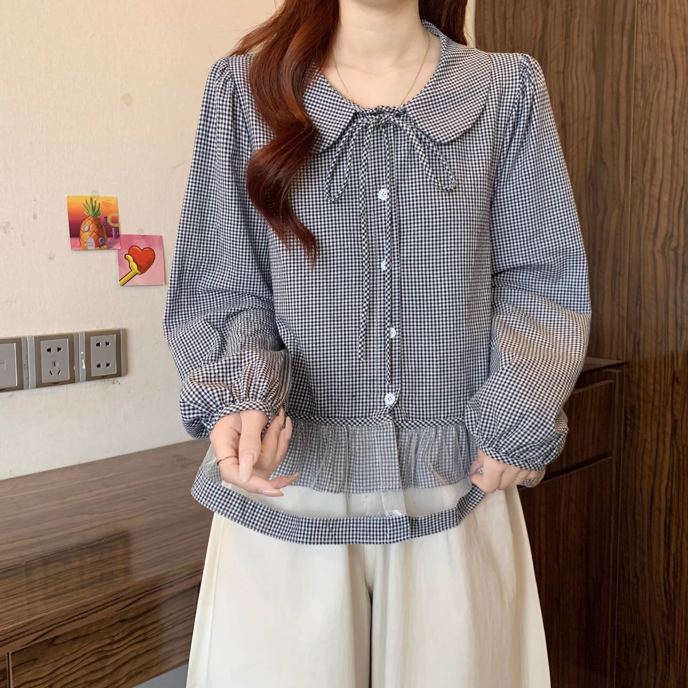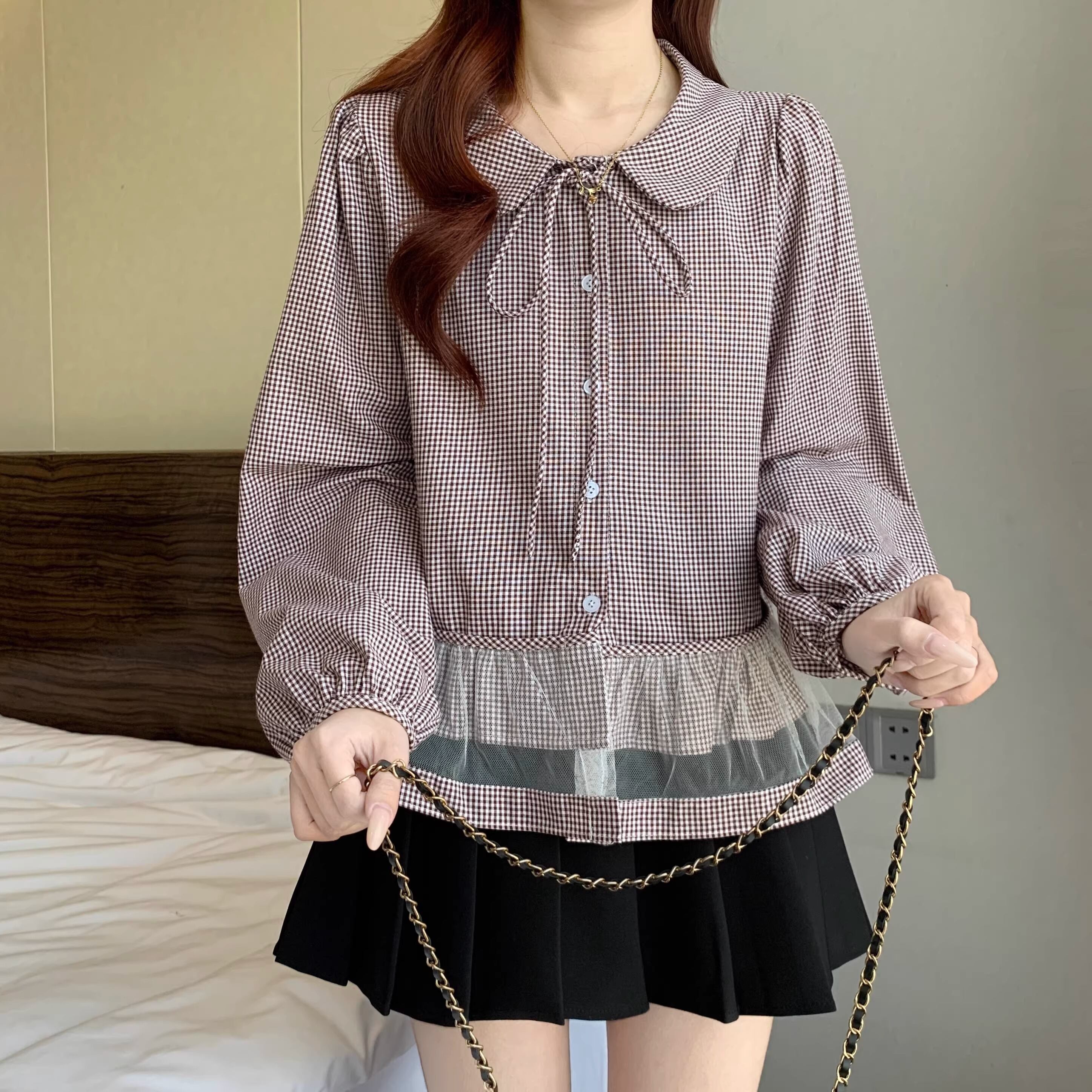 チェックキャミドッキングレースヘムトップス ・75630