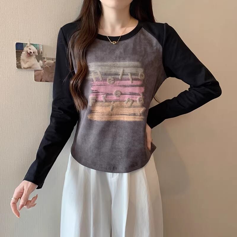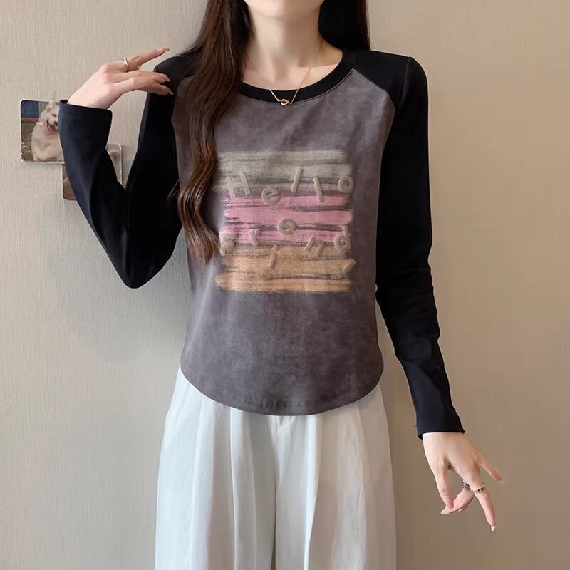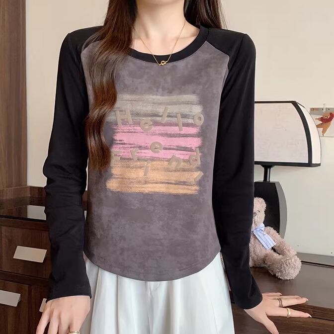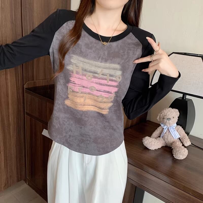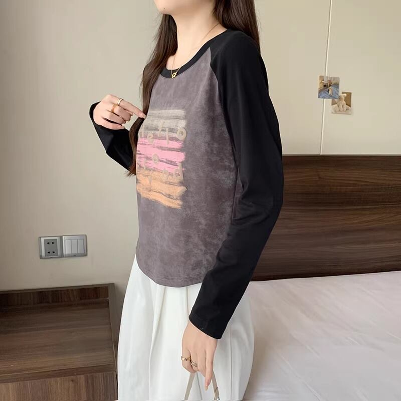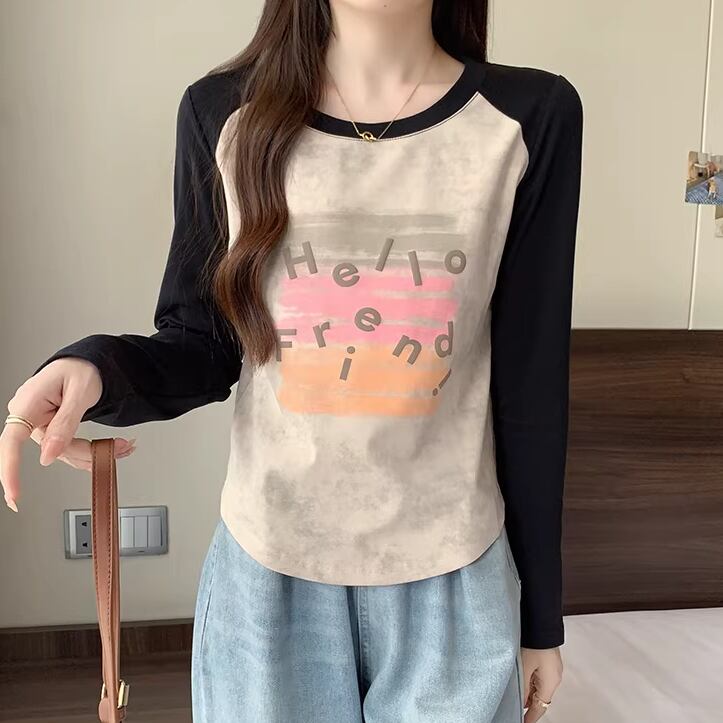 3色/配色カラーカレッジロゴプリントトップス ・75615