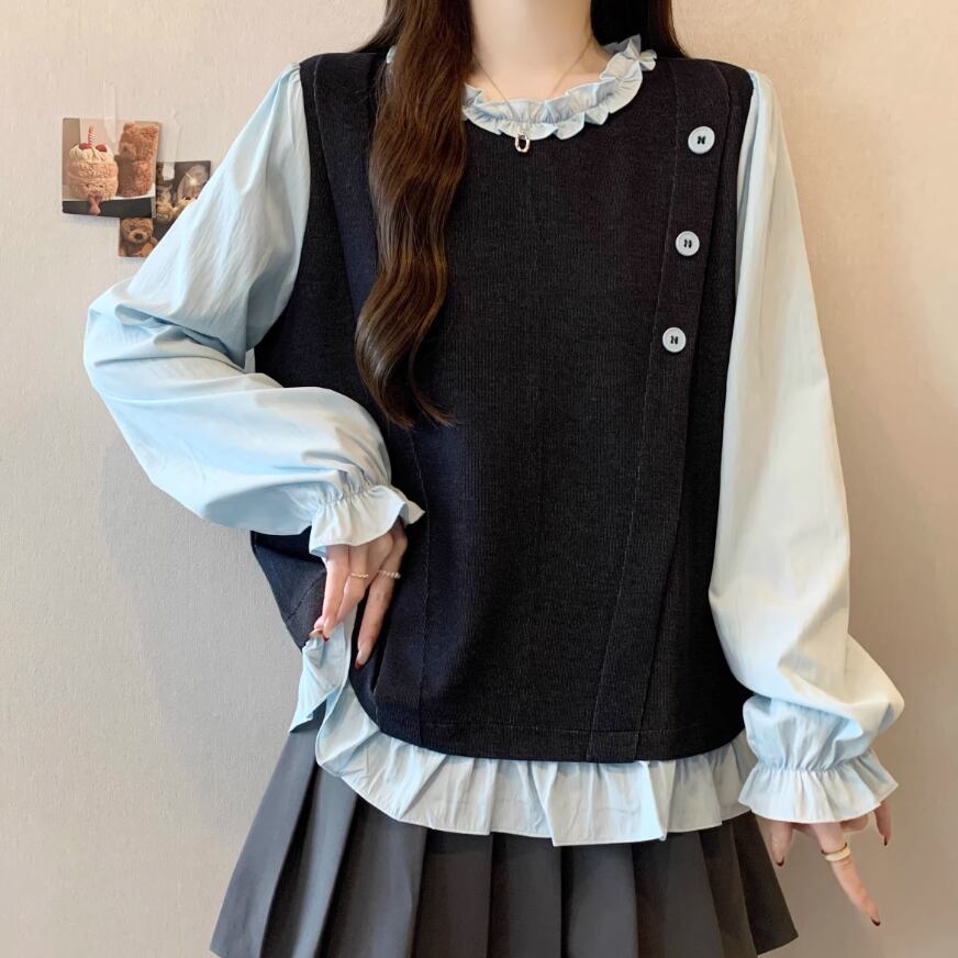 2色/アシメフリルスウェットプルオーバー ・75609