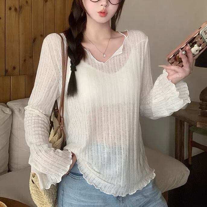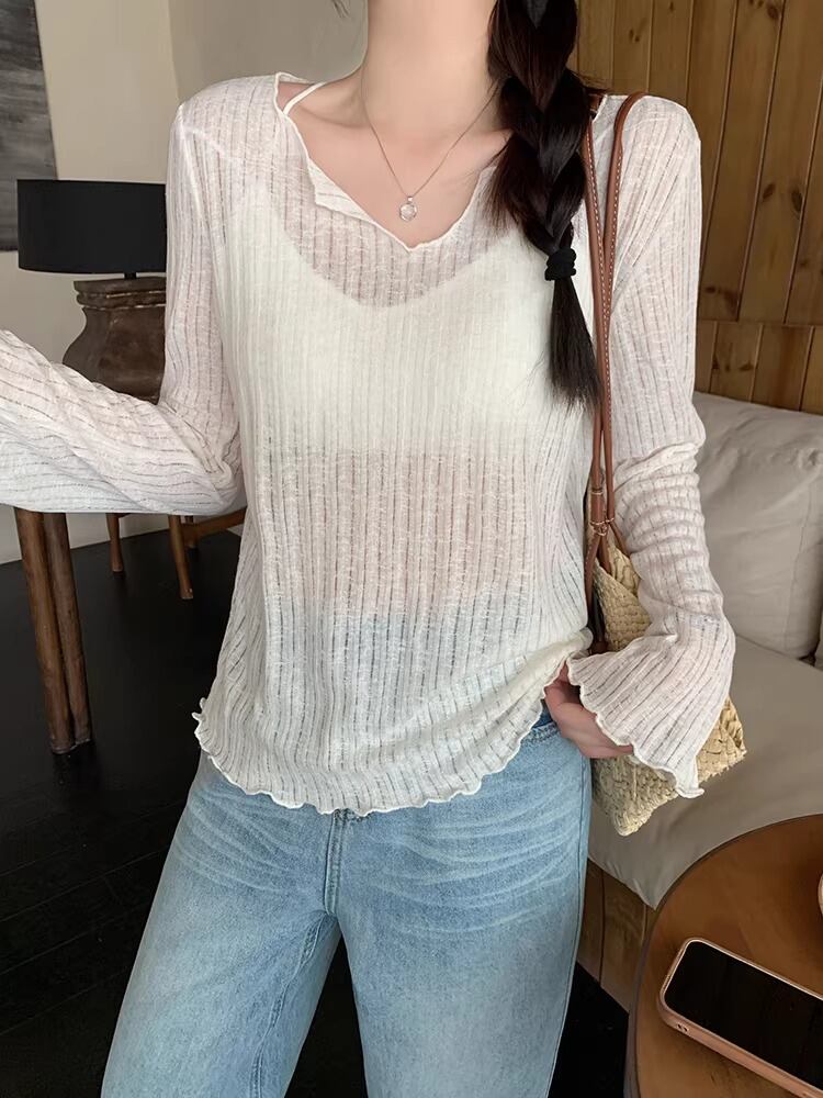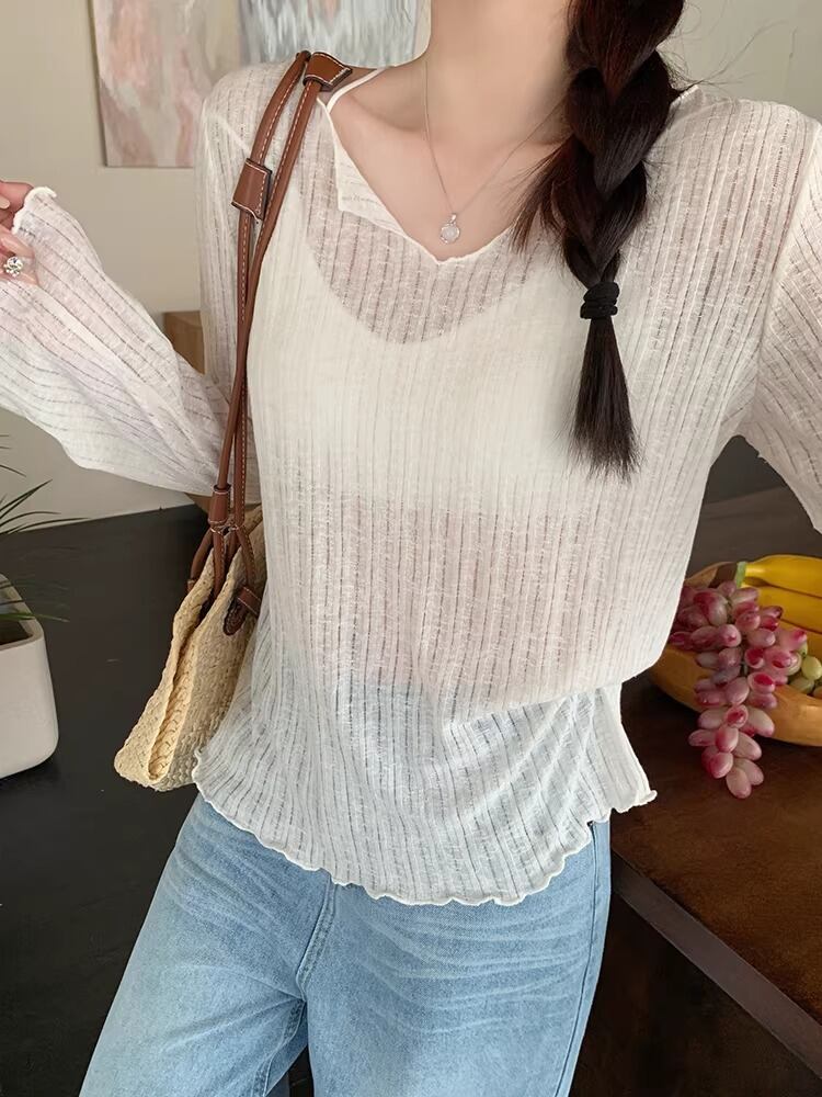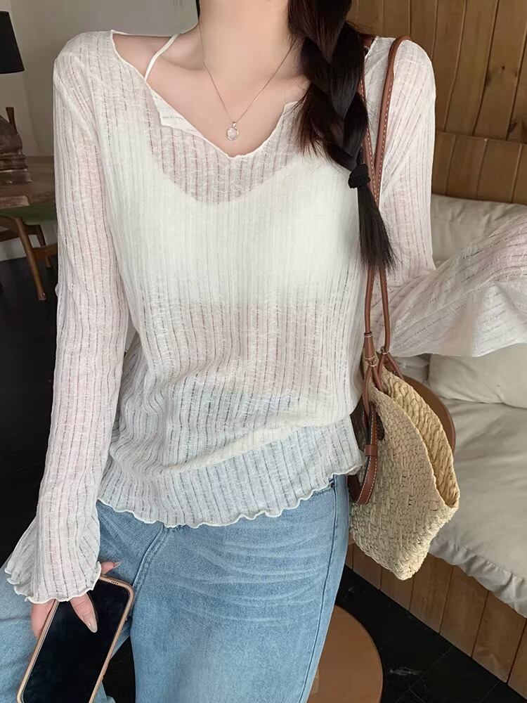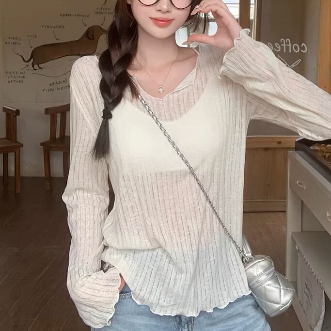 4色/レイヤード風リボンラウンドネックトップス ・75600
