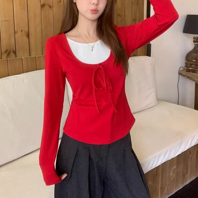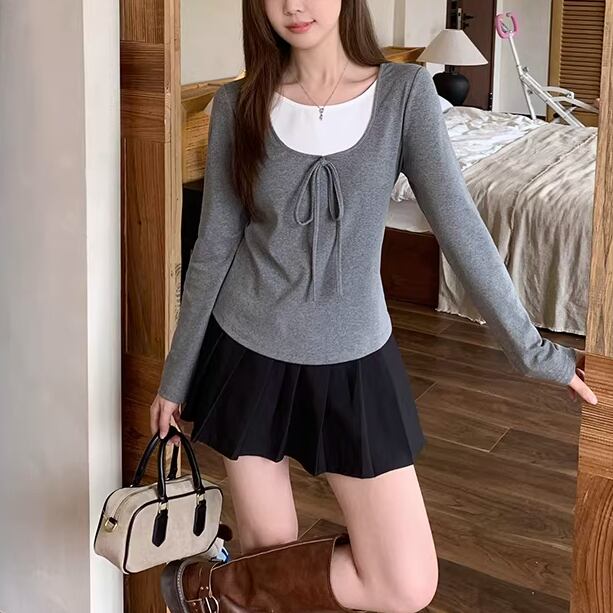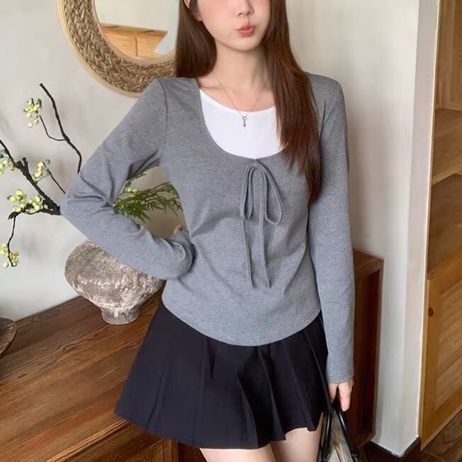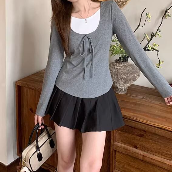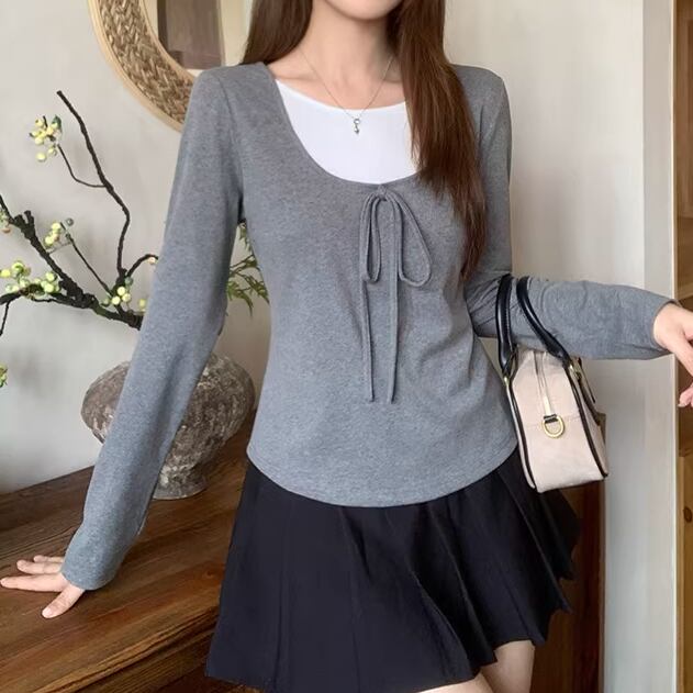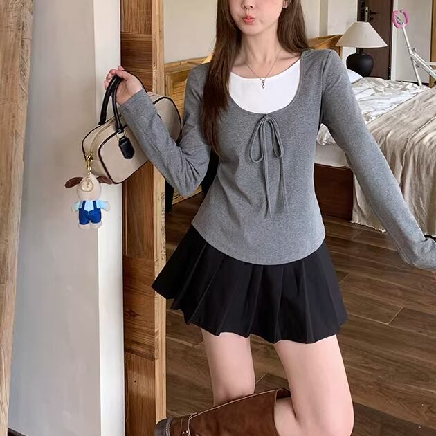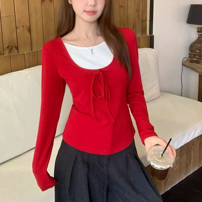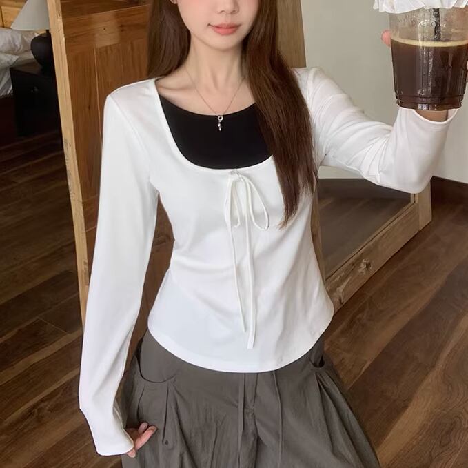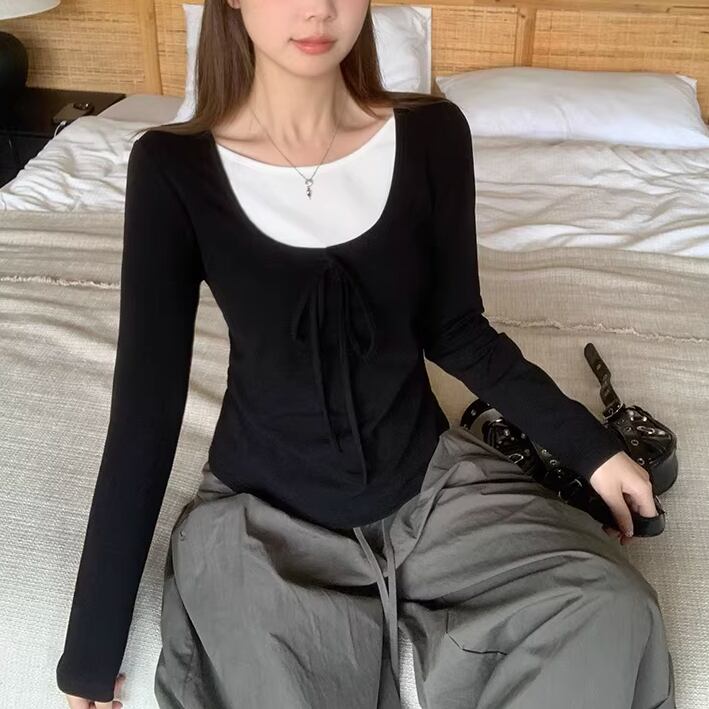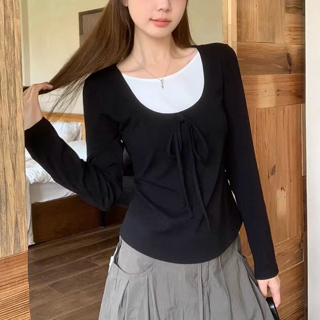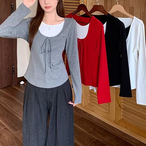 2色/レースディテールハイネックトップス ・75598