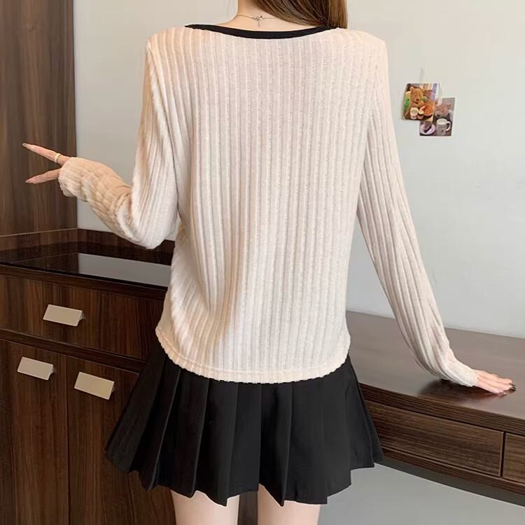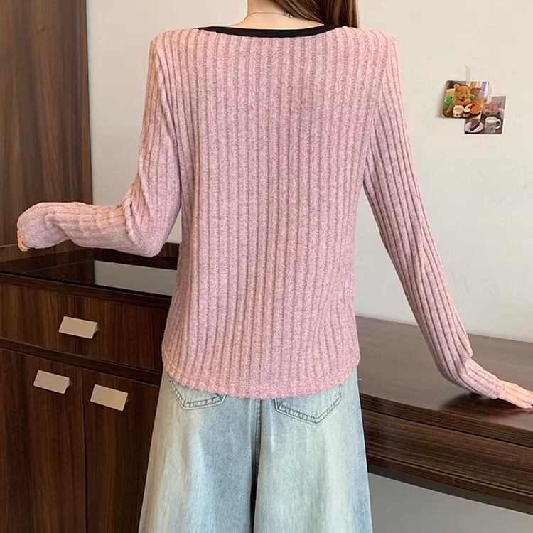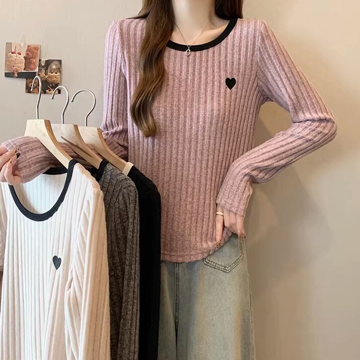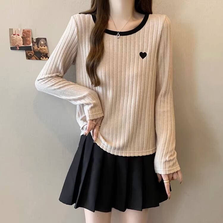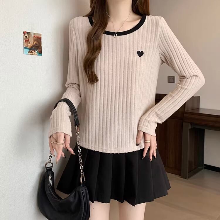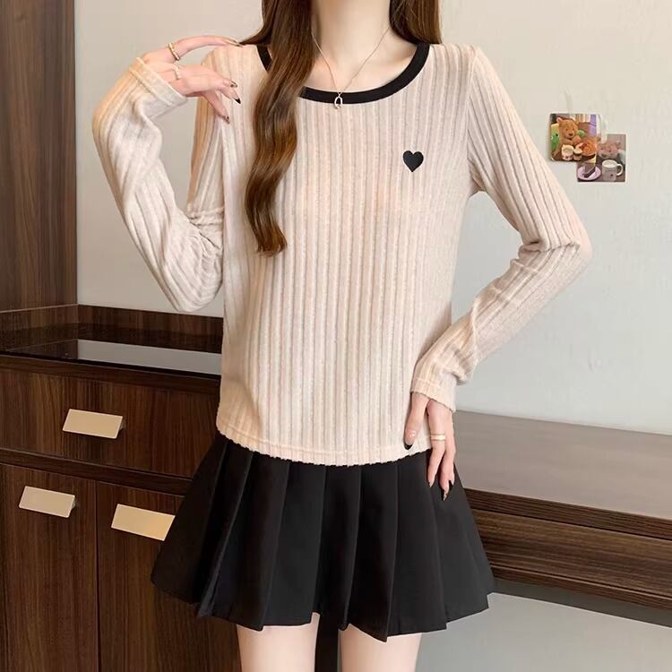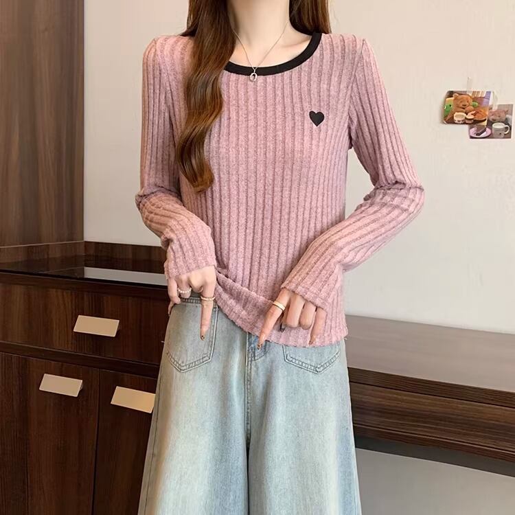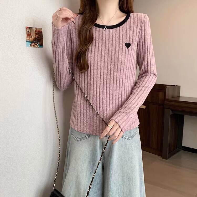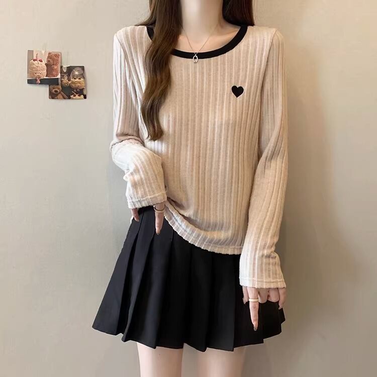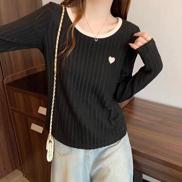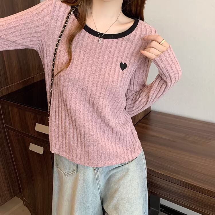 2色/ハート刺繍ボーダーニットプルオーバー ・75570