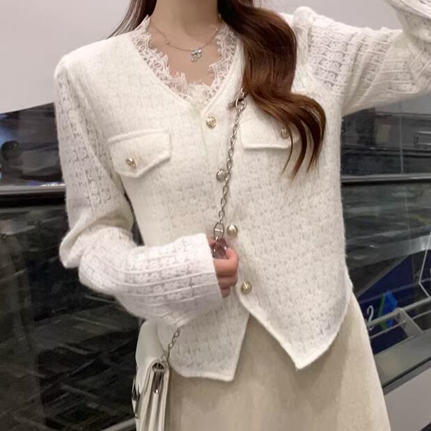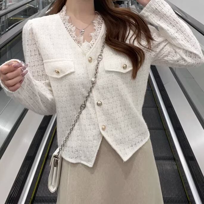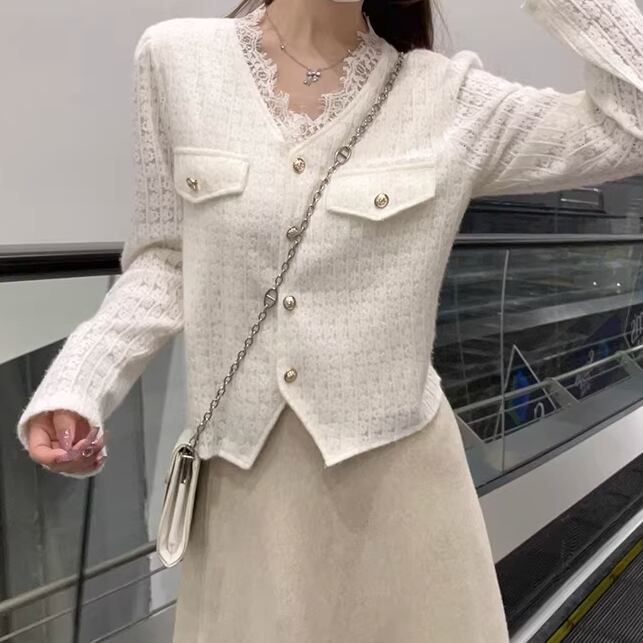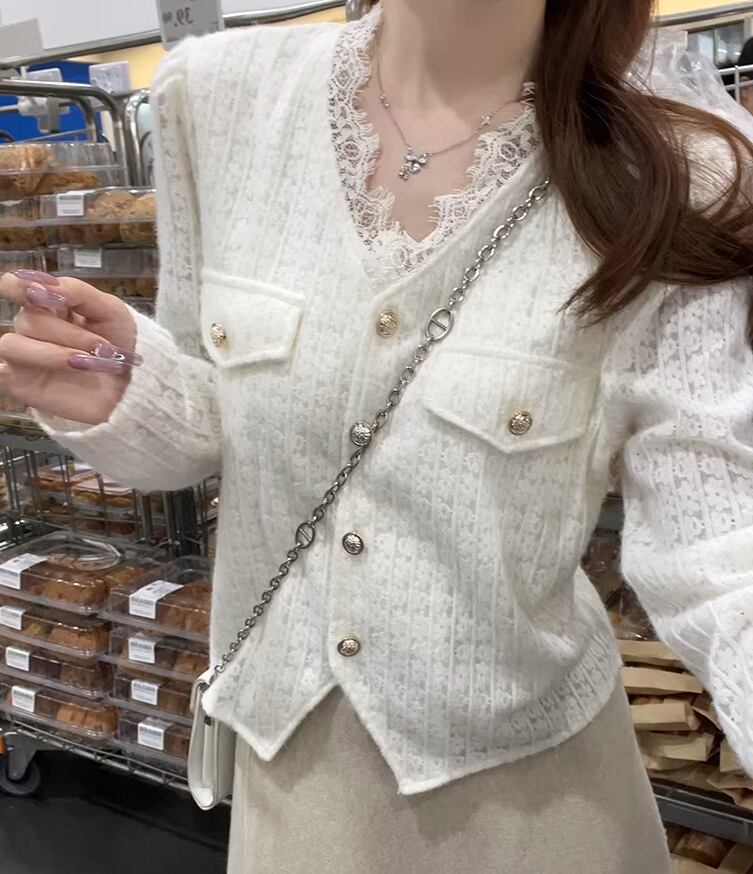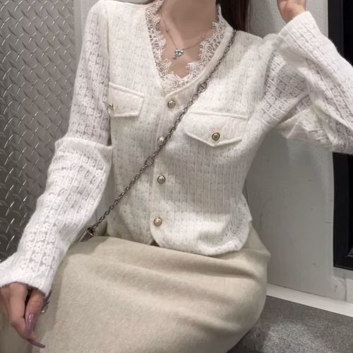 3色/レースVネックスリットスリーブニット ・75542