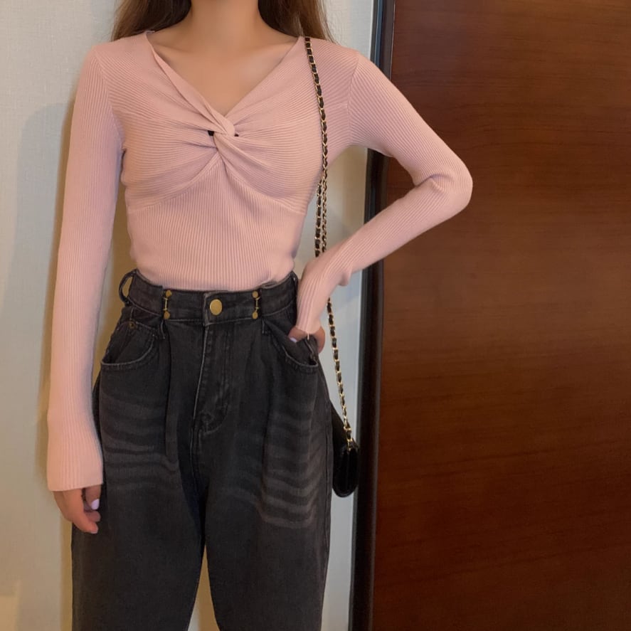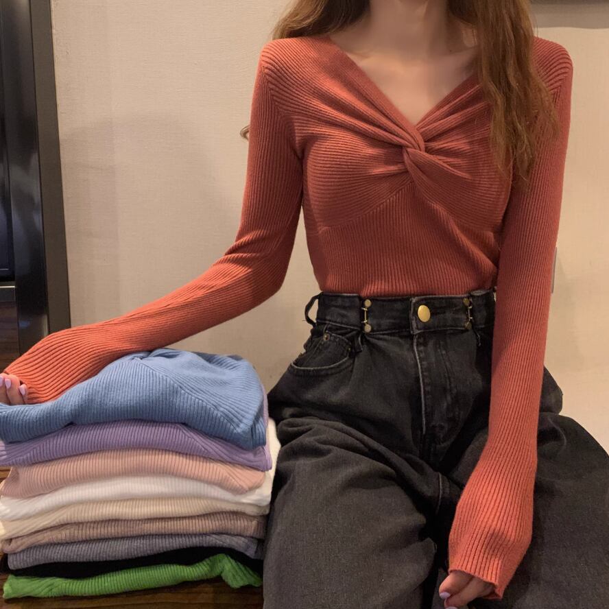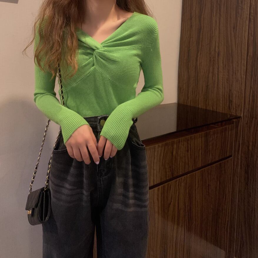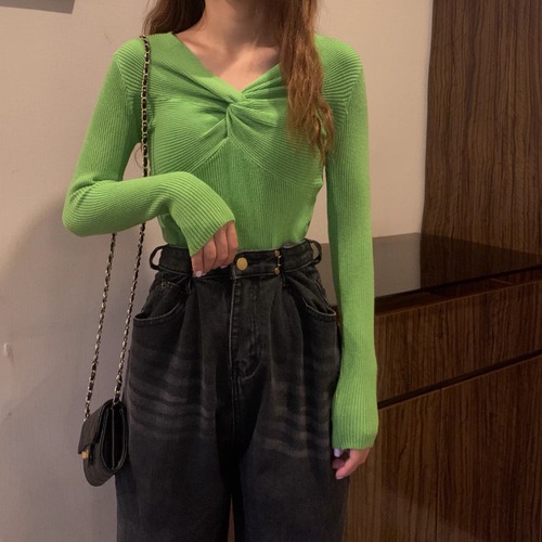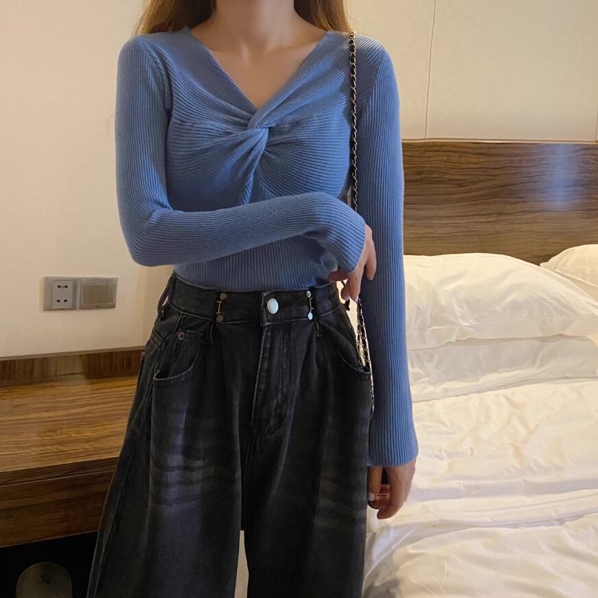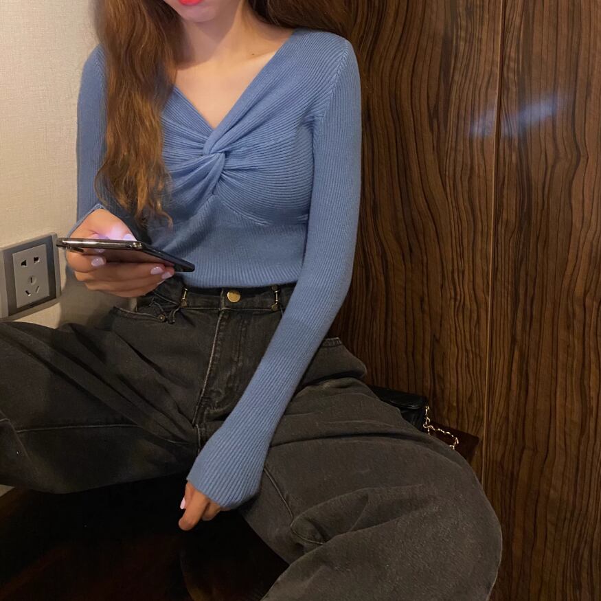 【2点セット】5色/ロングスリーブクロップドTシャツ+ホルターネックトップス ・75516