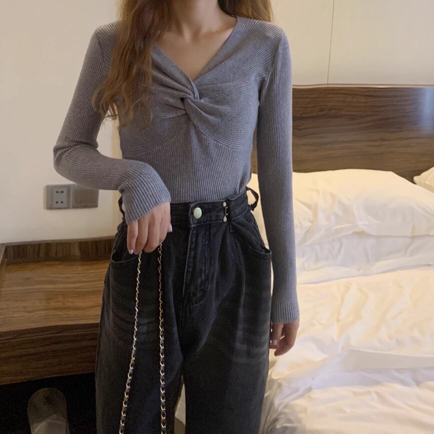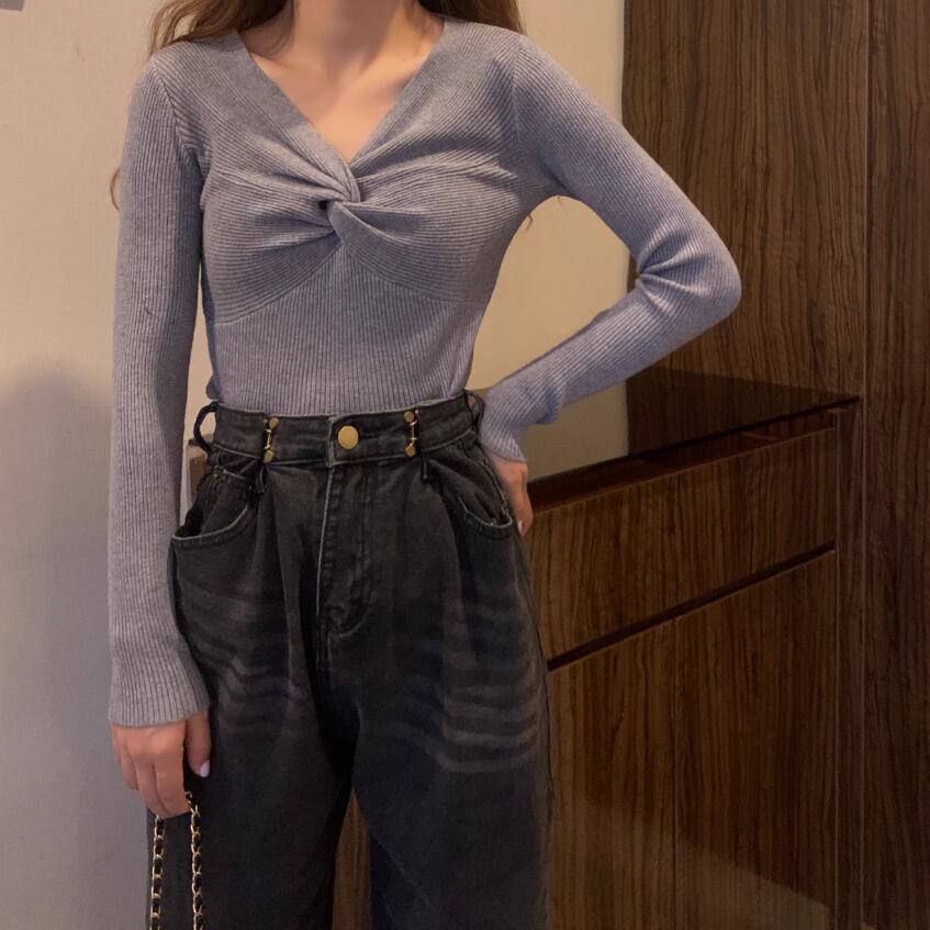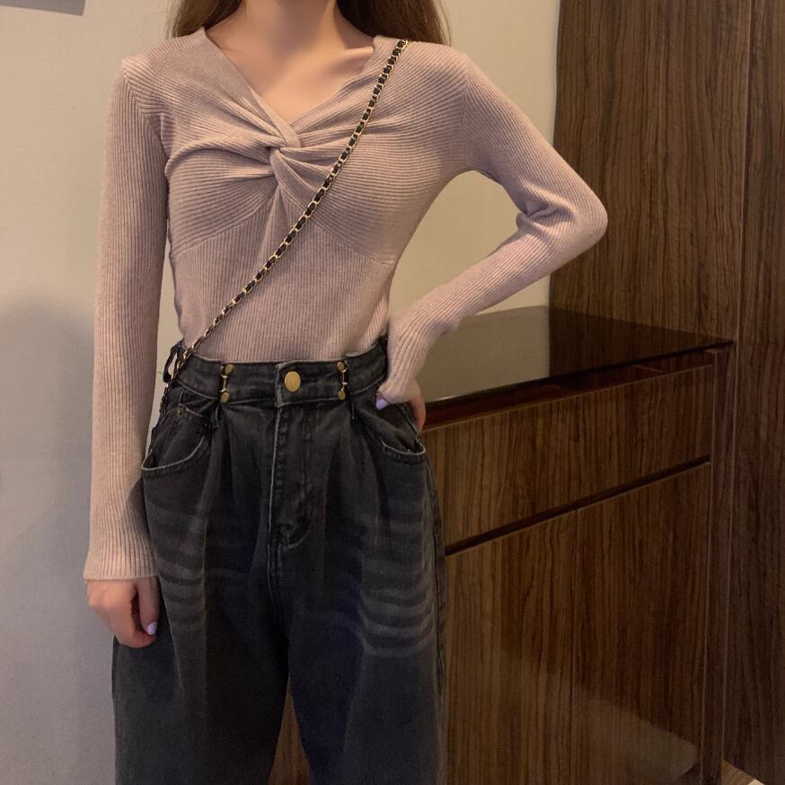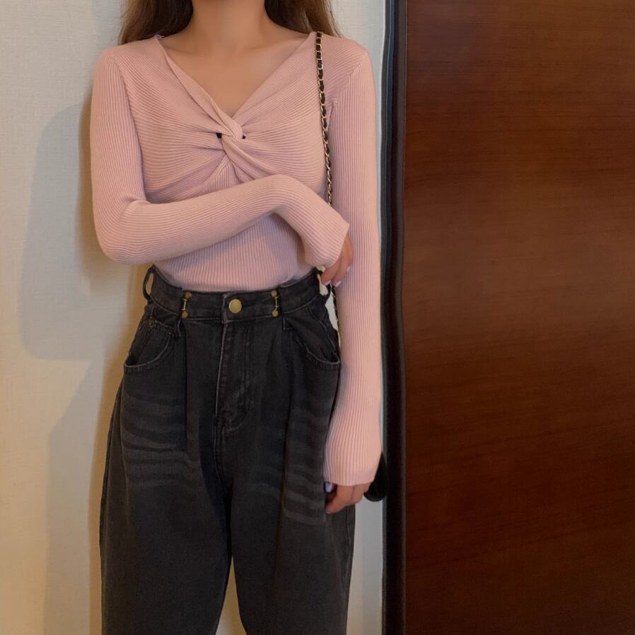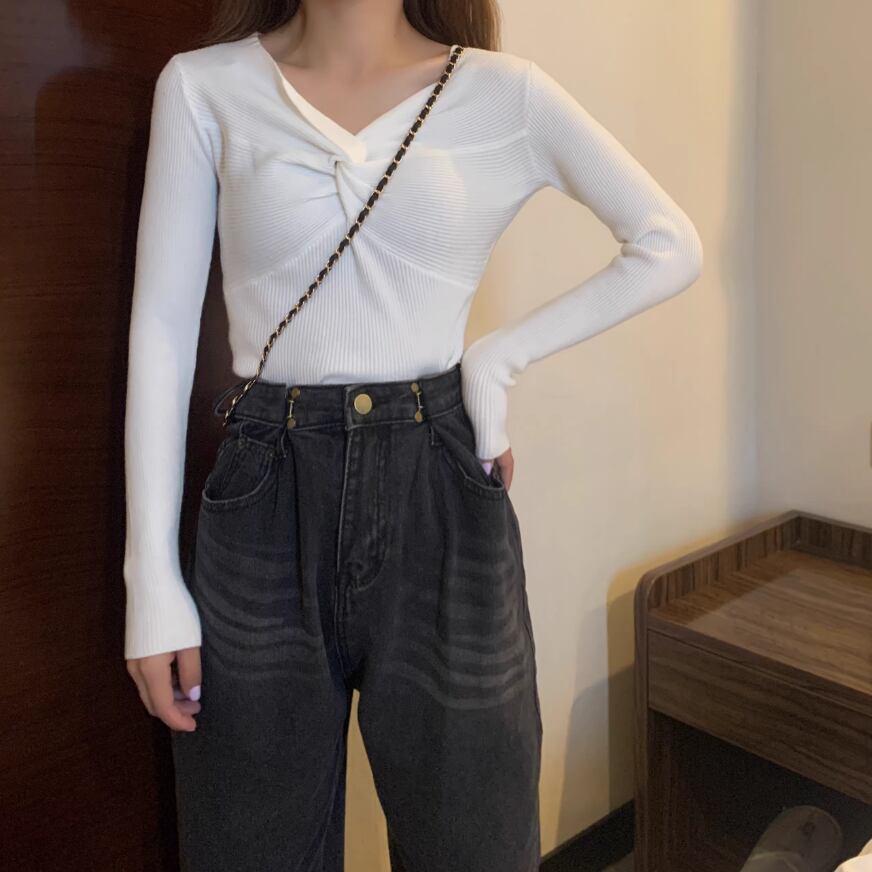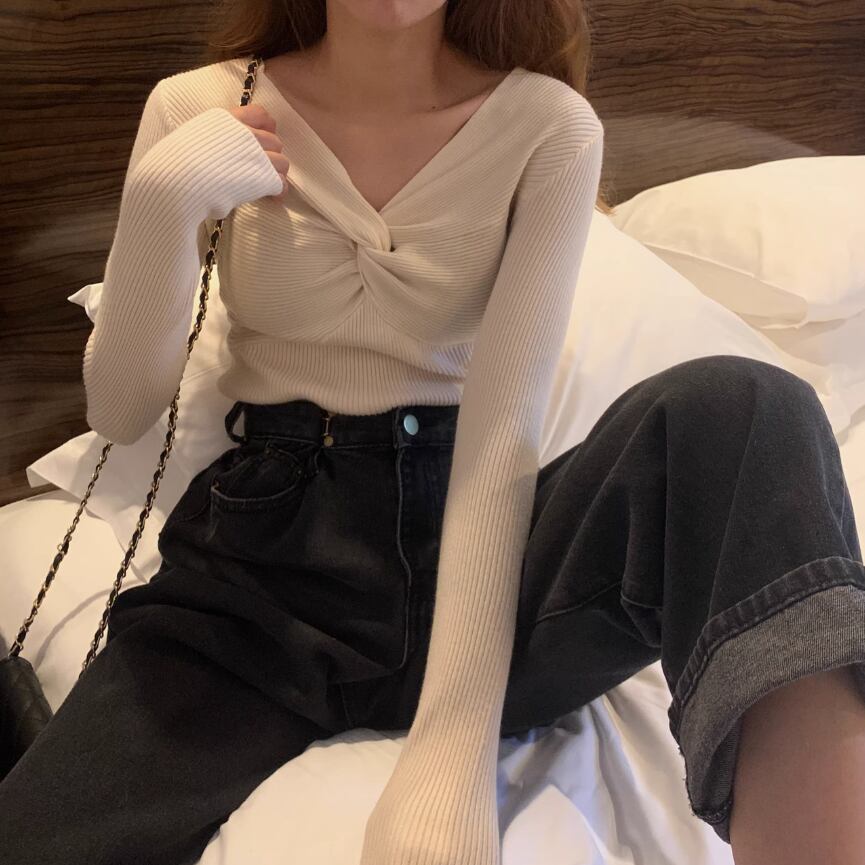 【2点セット】5色/ロングスリーブクロップドTシャツ+ホルターネックトップス ・75516