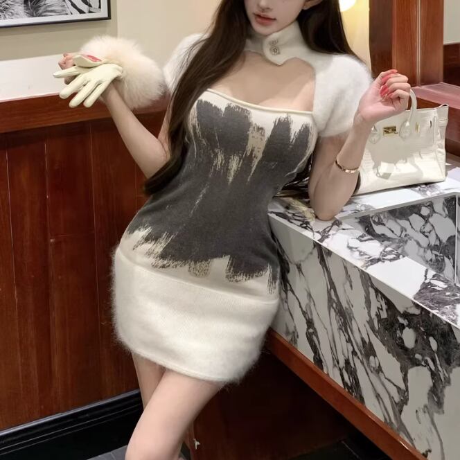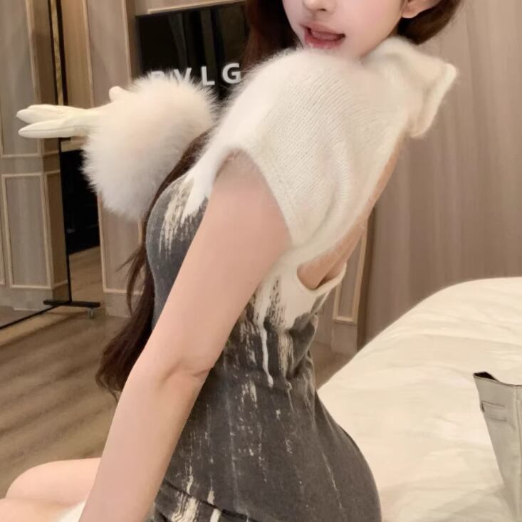 【2点セット】レーストリムニットカーデ+リボンキャミ ・75493