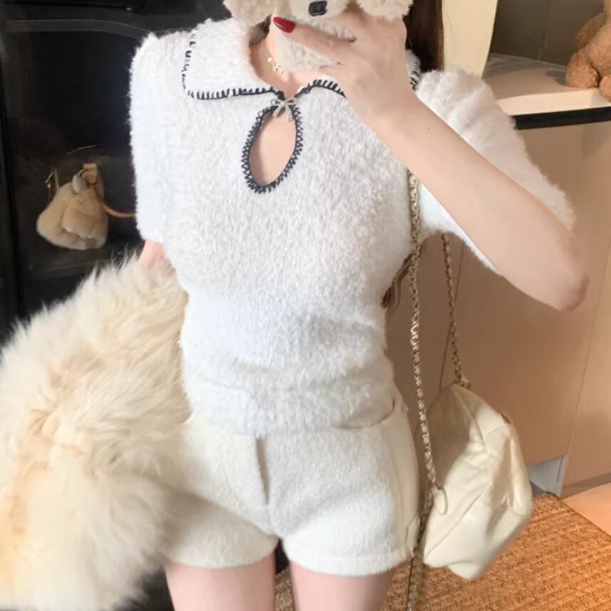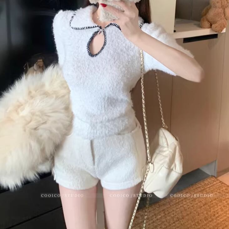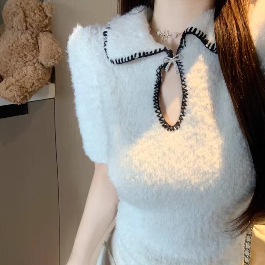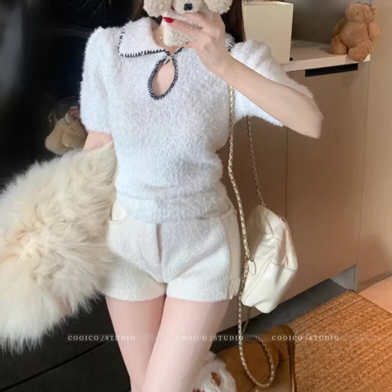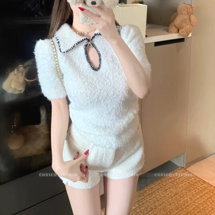 【2点セット】3色/フロントフリルリボンニット+ティアードチュールミニスカート ・75415