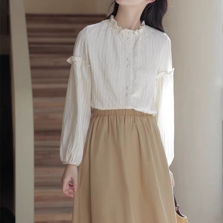 3色/チュールカラーフリルブラウス ・75875