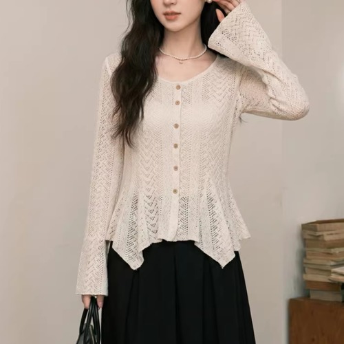 レースカラーアシメボタンドッキングトップス ・71106