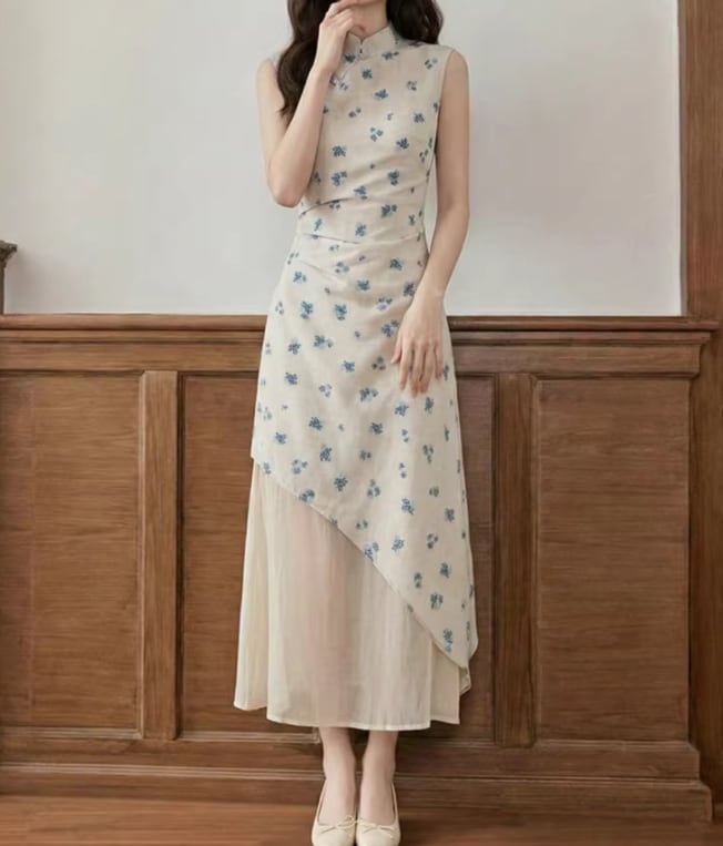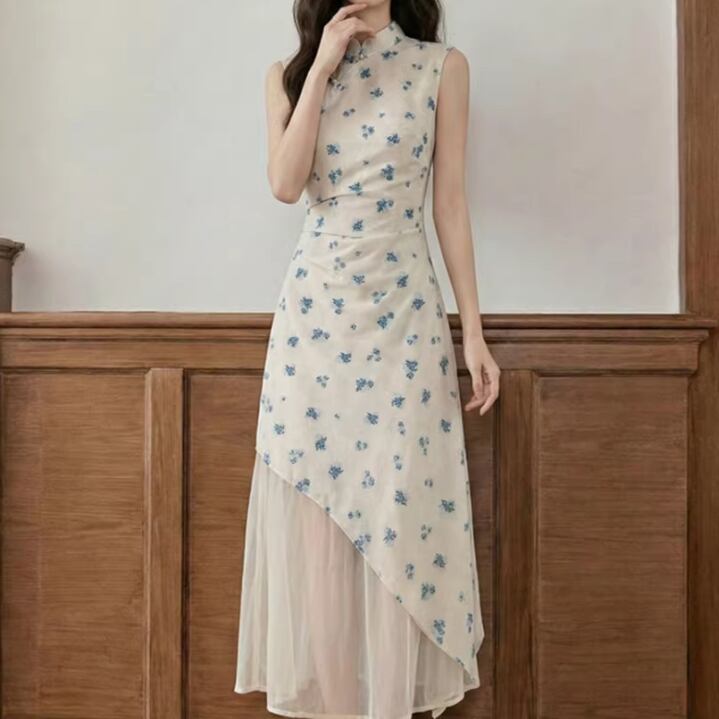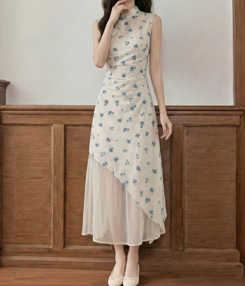 2色/チュールフラワーフリルネックボウタイワンピ ・54889