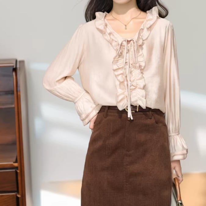 3色/チュールカラーフリルブラウス ・75875