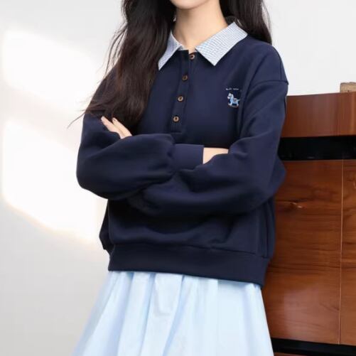 デニムカラーハーフジップスウェットトップス ・75765