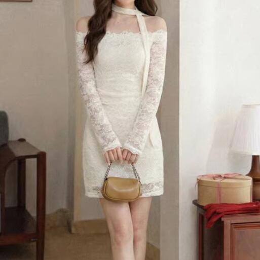2色/チュールフラワーフリルネックボウタイワンピ ・54889