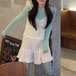 【2点セット】3色/パールデコフリルオフショルセーター+ニットミニスカート ・73703