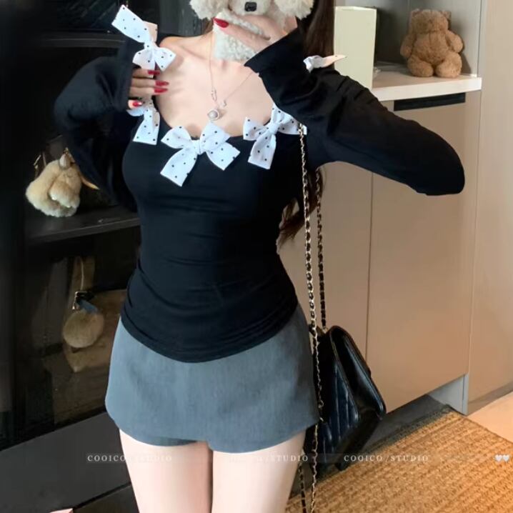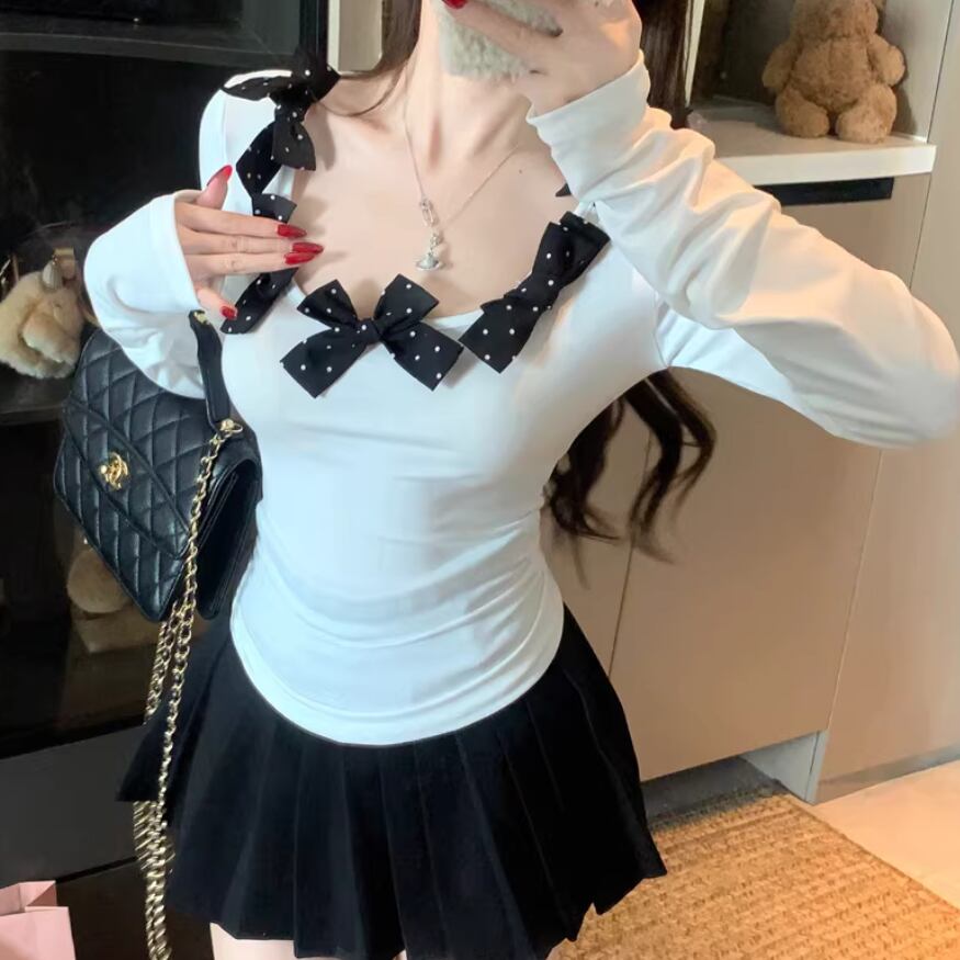 3色/レースアップVネックドッキングトップス ・73992
