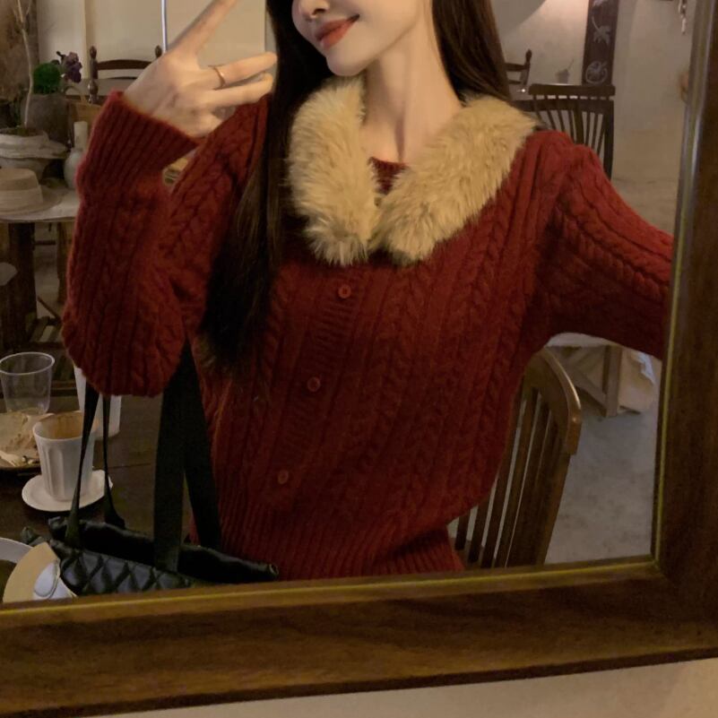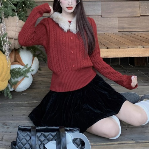 【2点セット】ポイントチェッククルーネックニットカーデ+チェックプリーツスカート ・74241