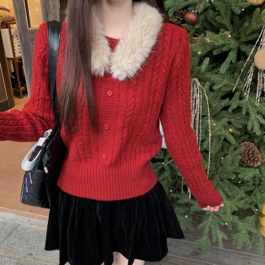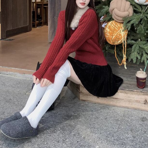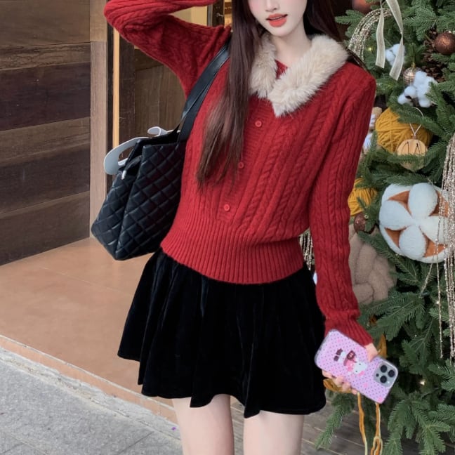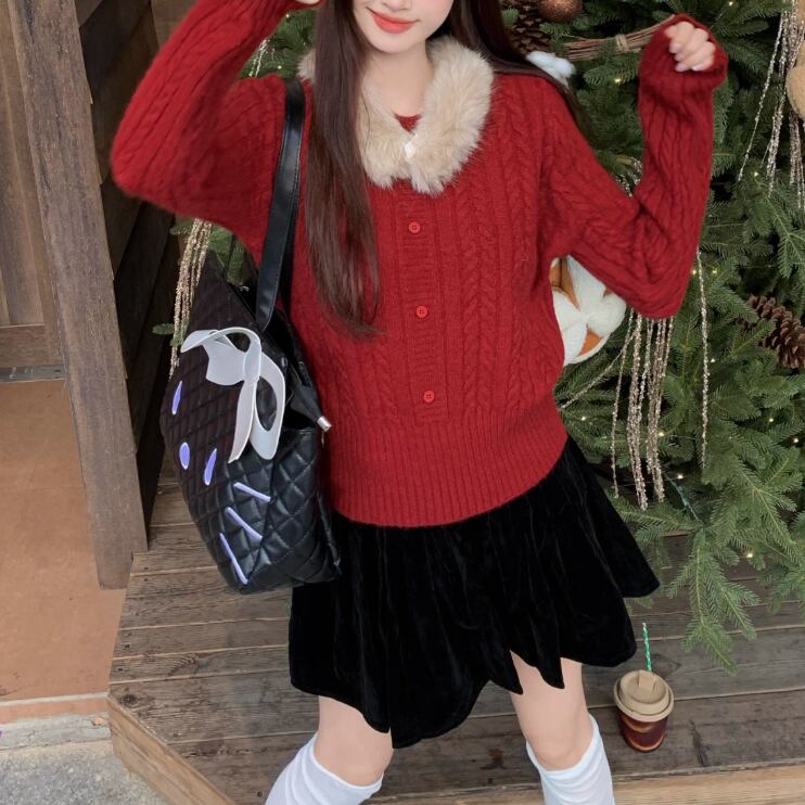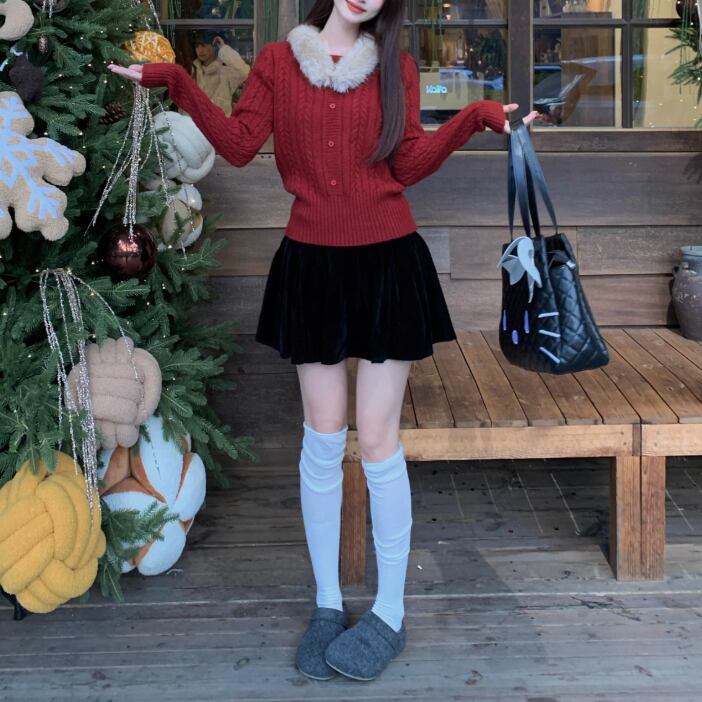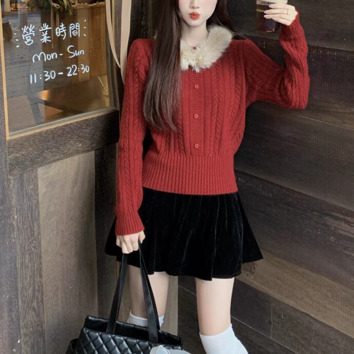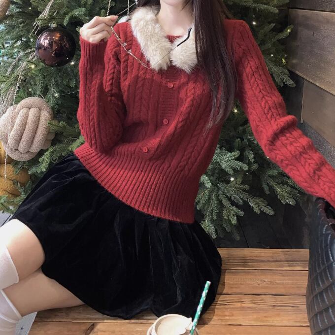 【2点セット】3色/パールデコフリルオフショルセーター+ニットミニスカート ・73703