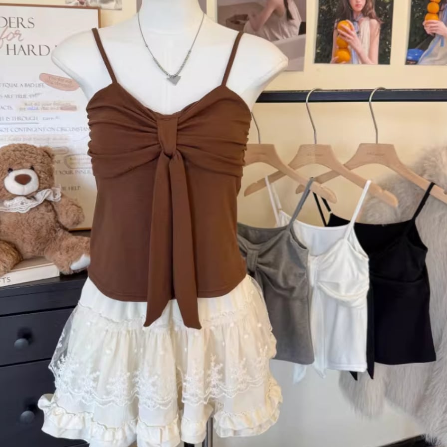 5色/レースフリルストラップビスチェ風キャミ ・75666