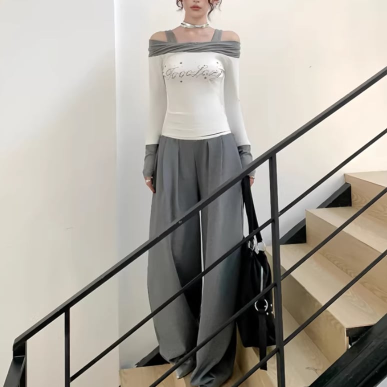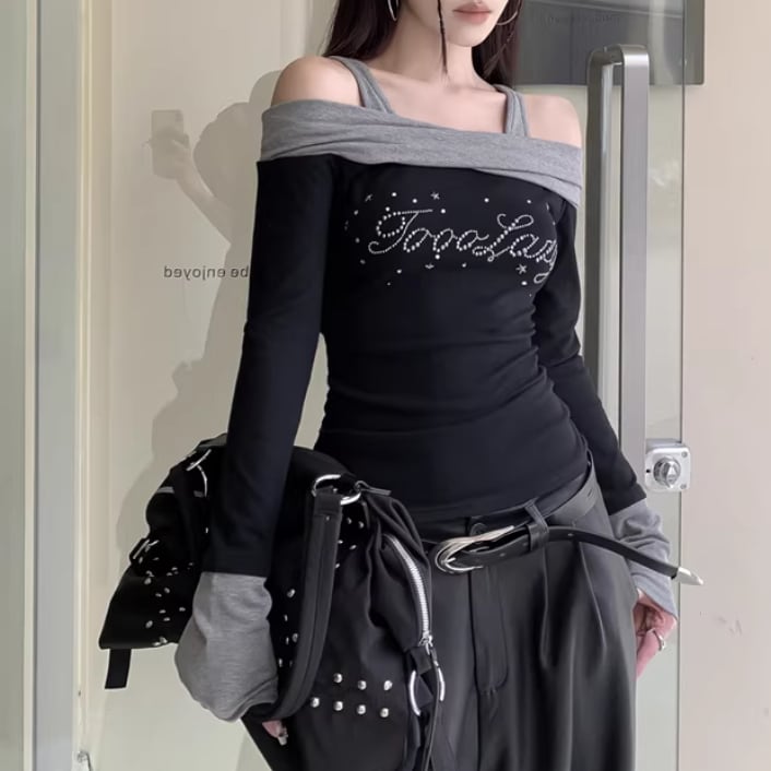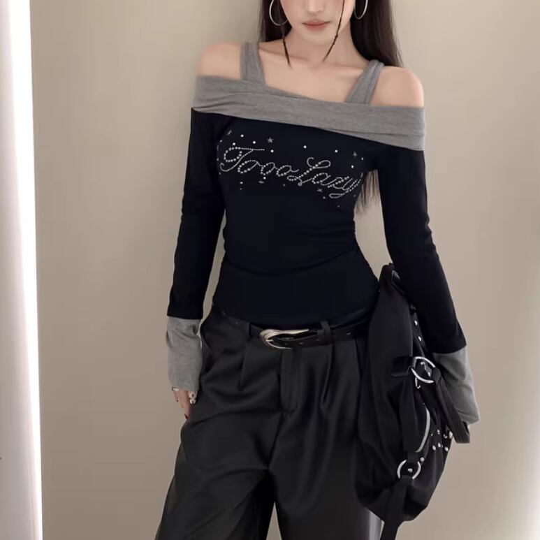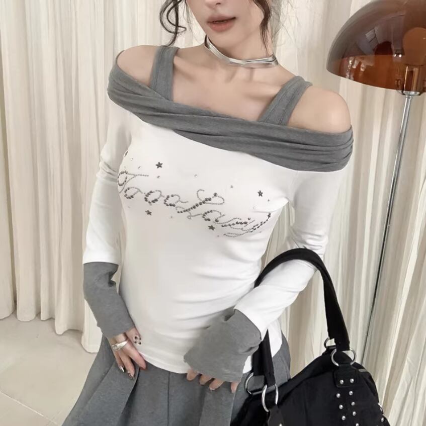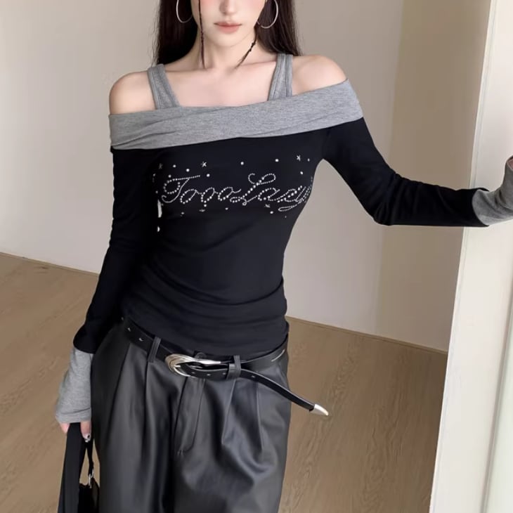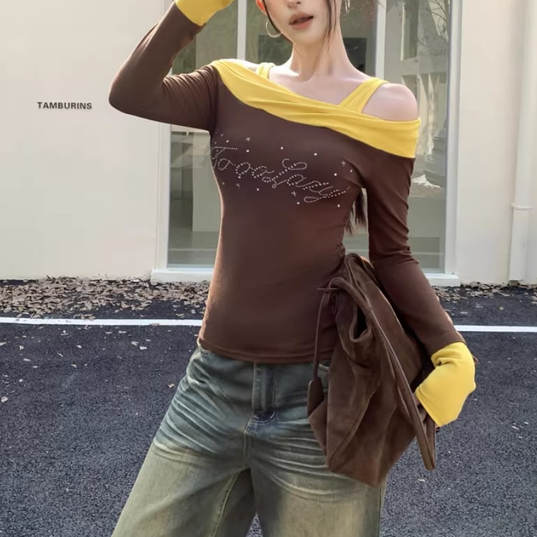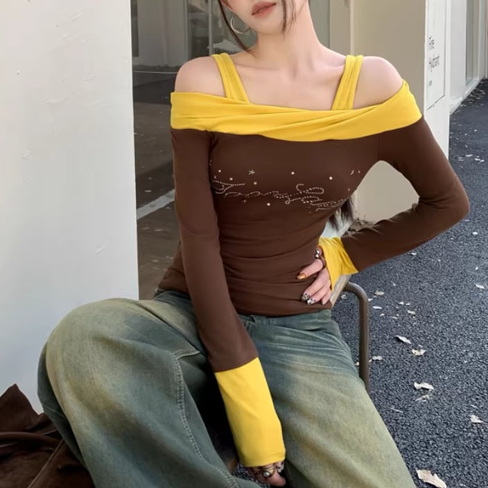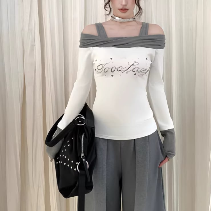 オープンショルダードレープデザイントップス ・75862