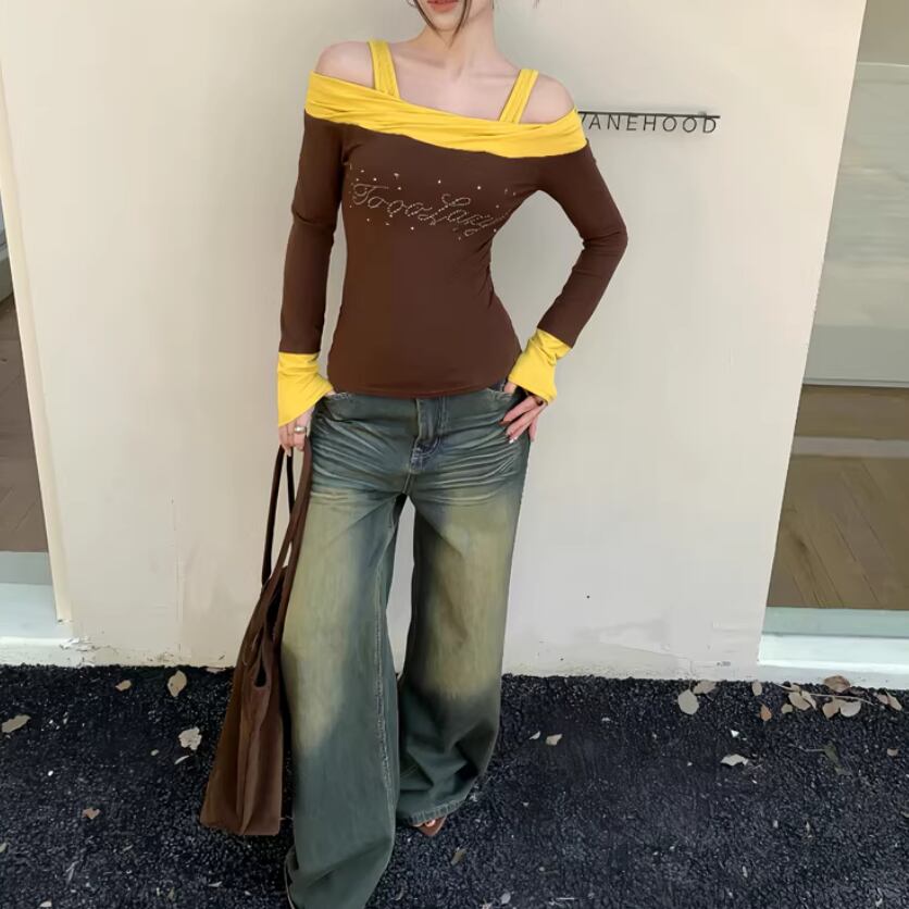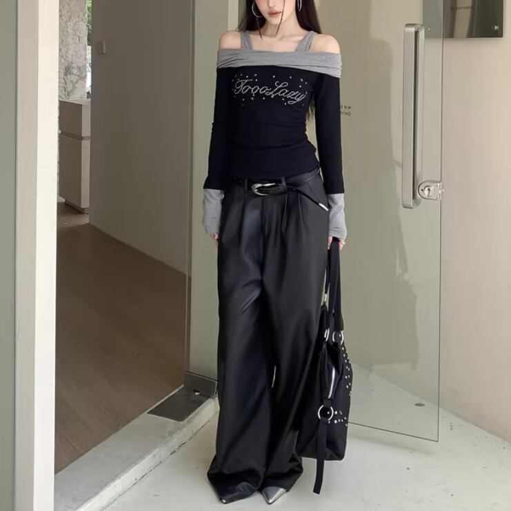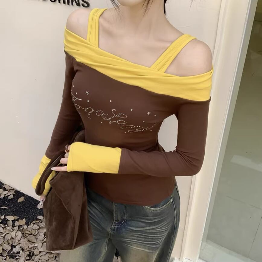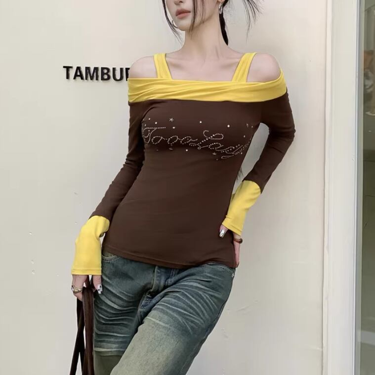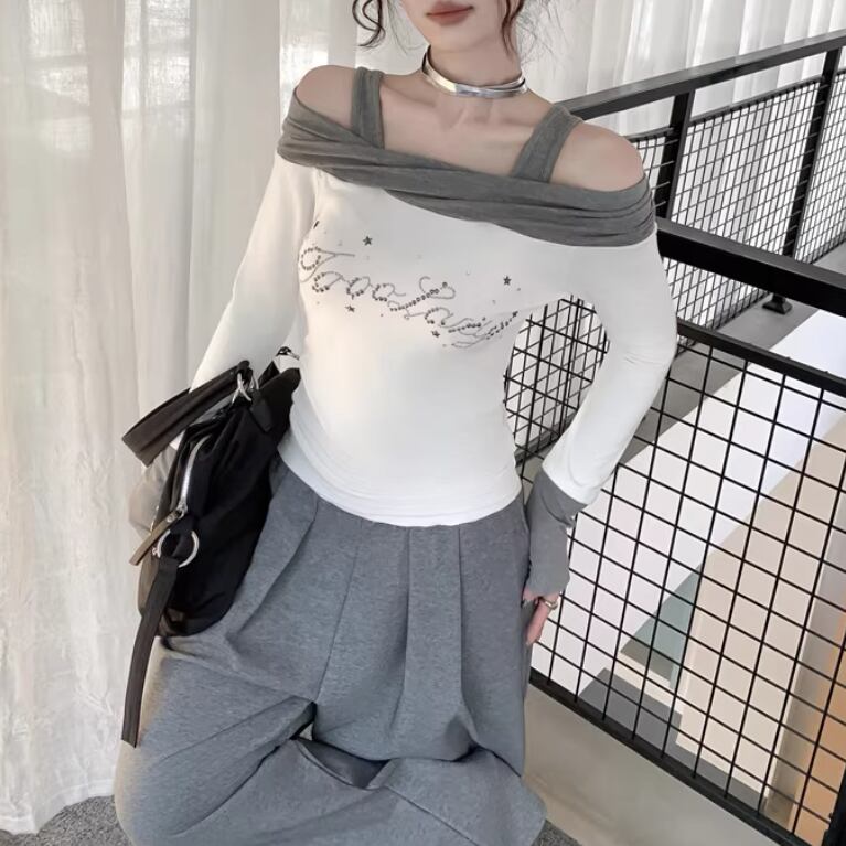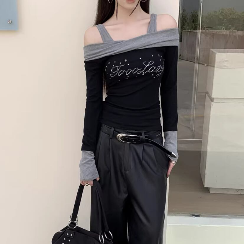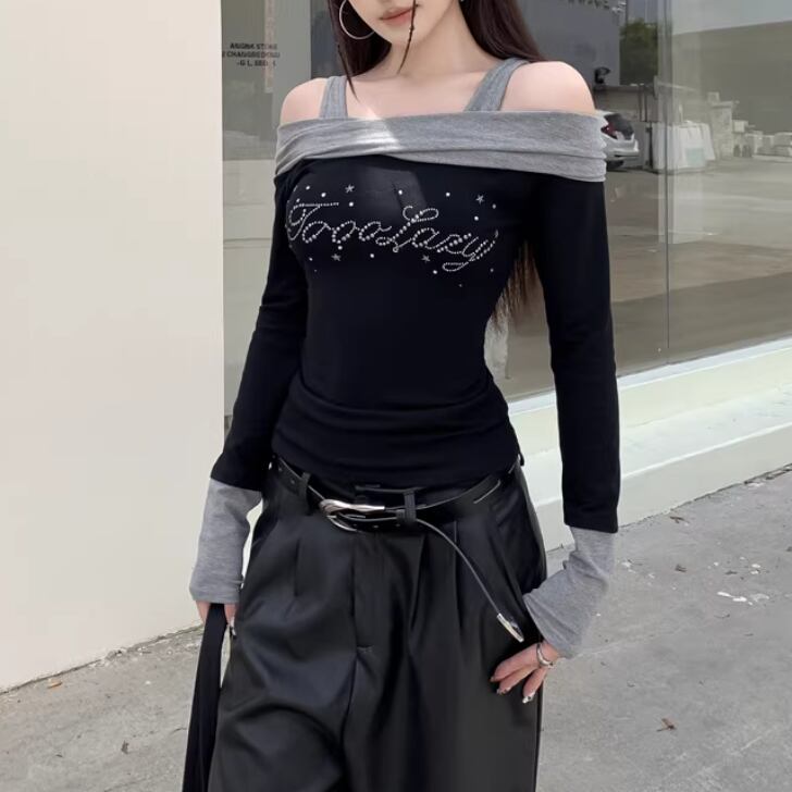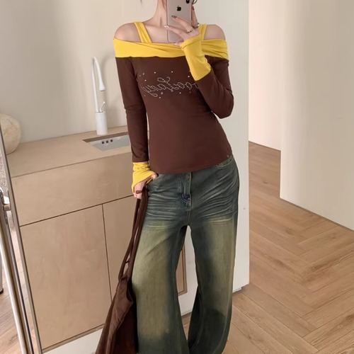 オープンショルダードレープデザイントップス ・75862