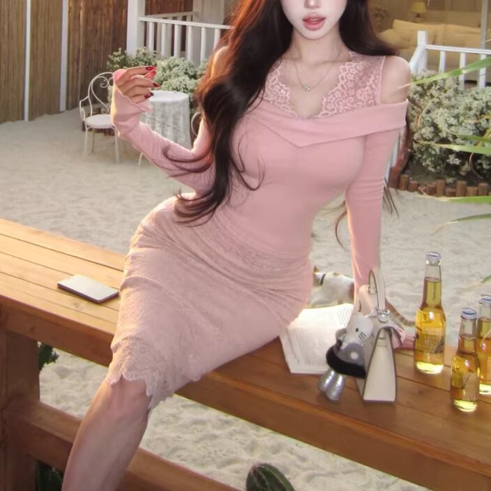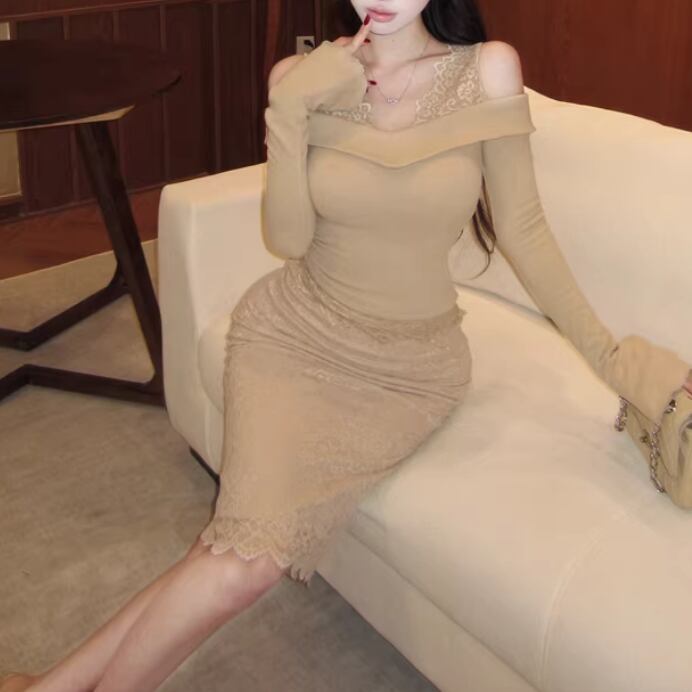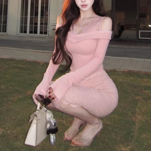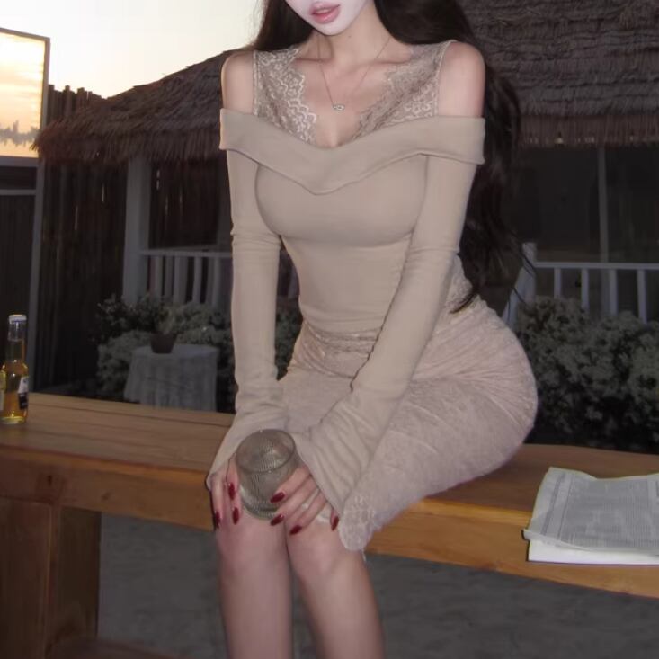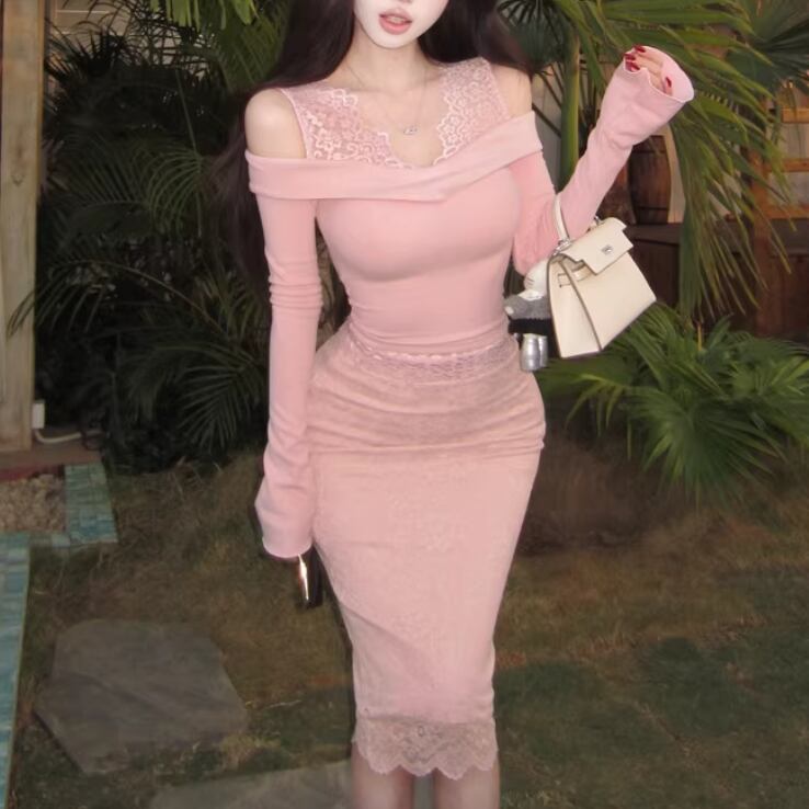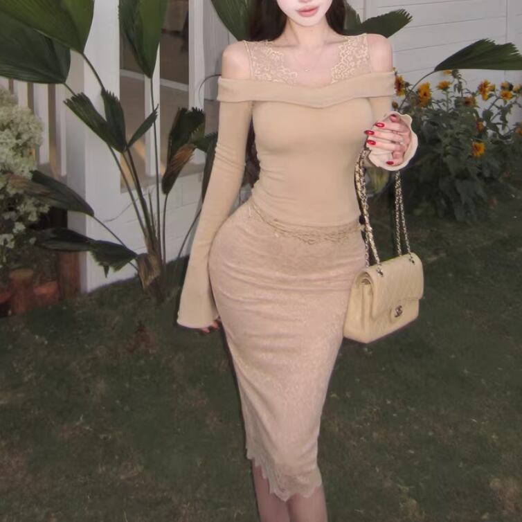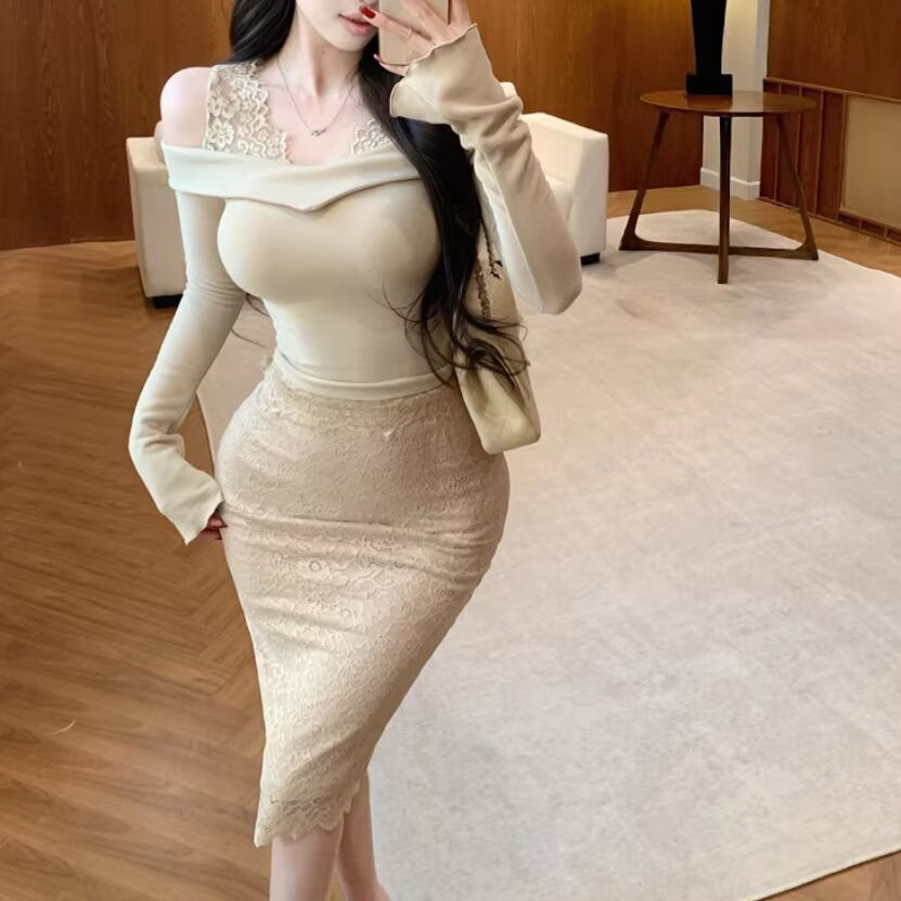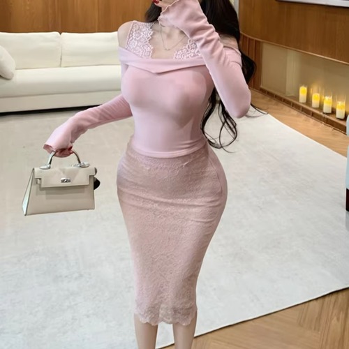 【2点セット】3色/パールデコフリルオフショルセーター+ニットミニスカート ・73703